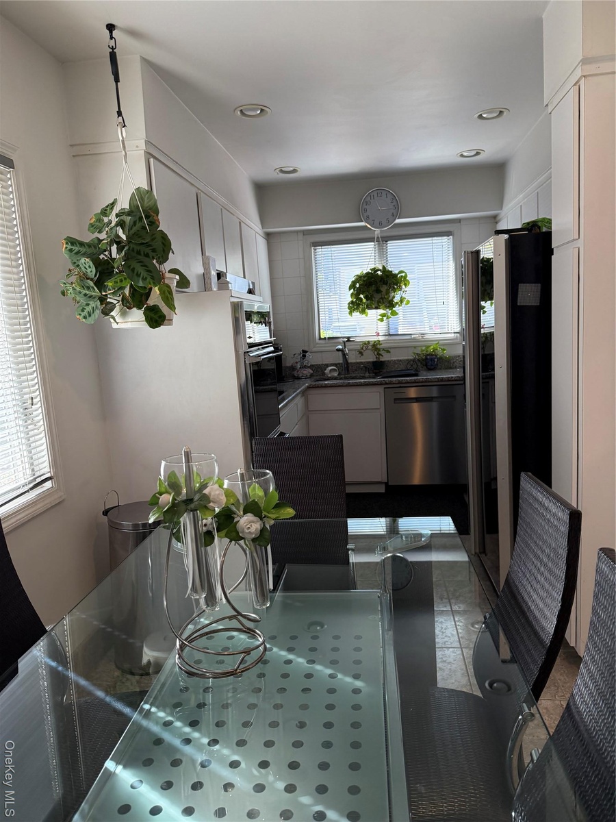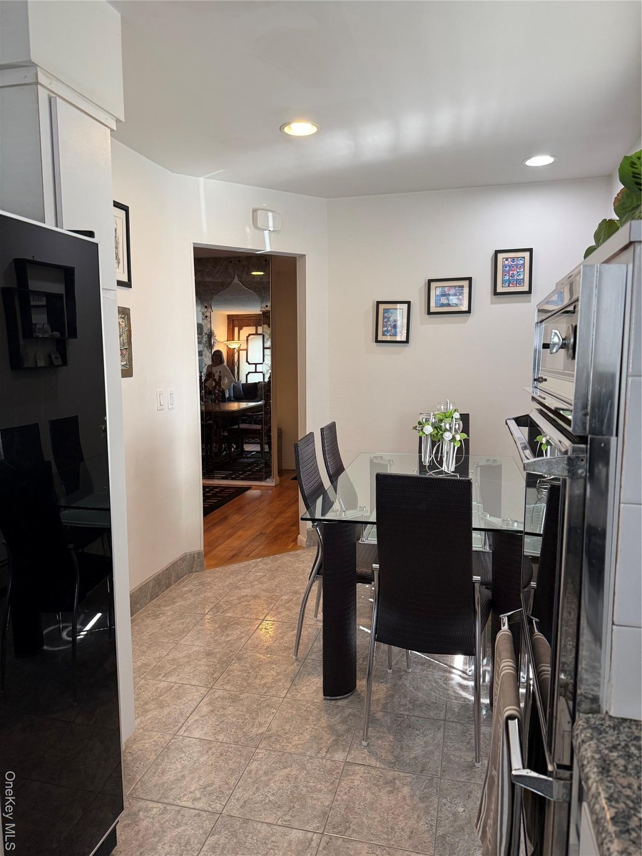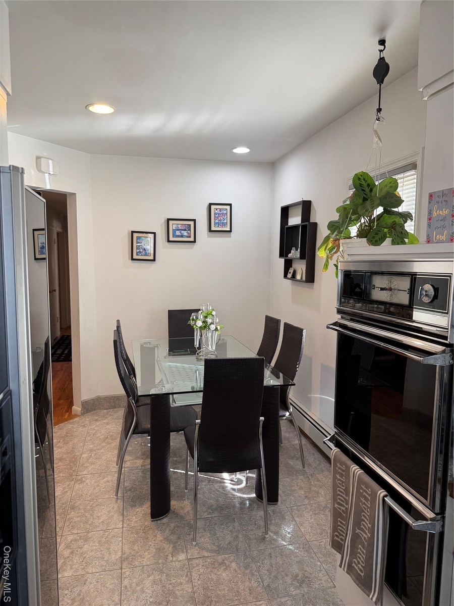 - Dining space featuring recessed lighting, a baseboard heating unit, and light tile patterned floors