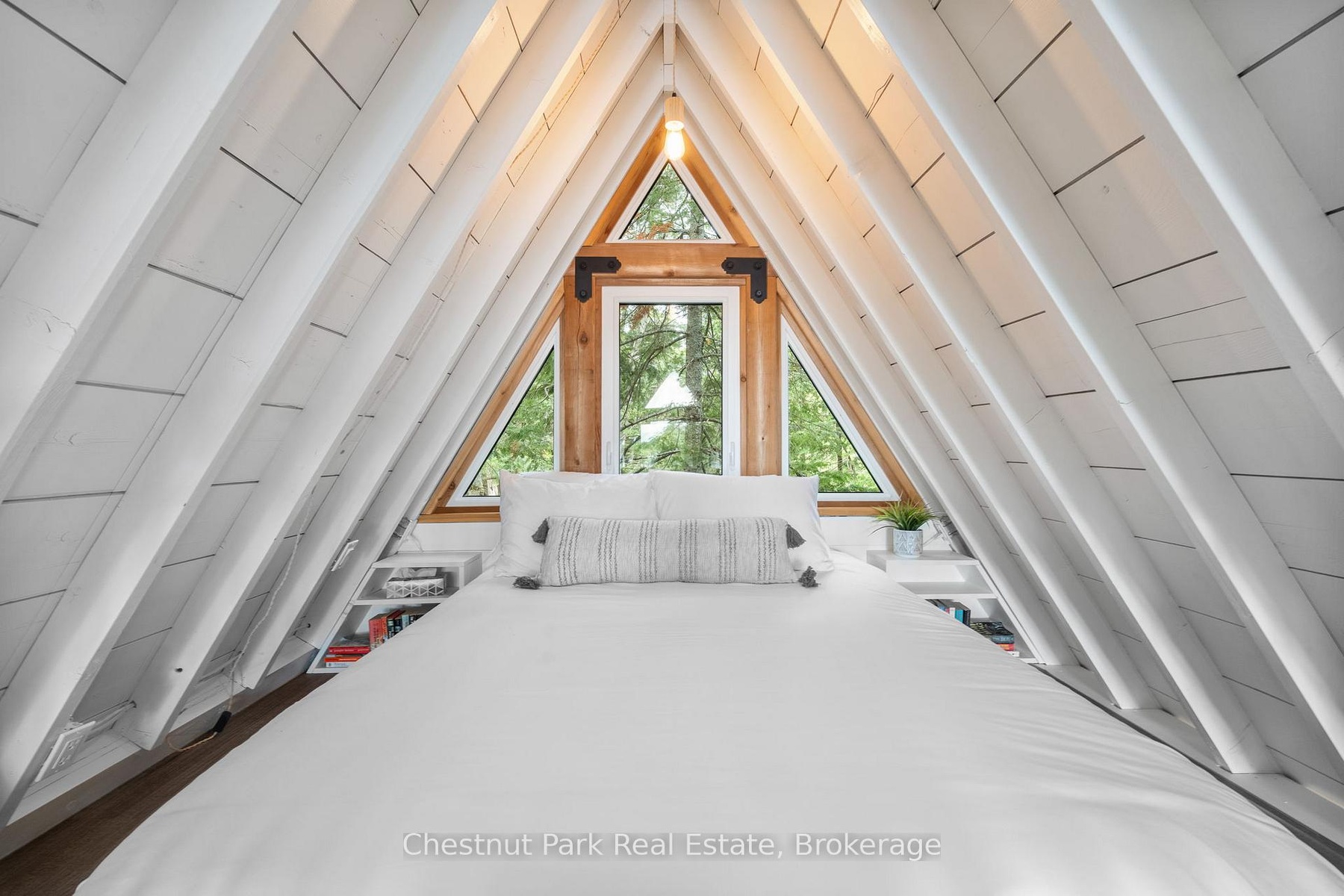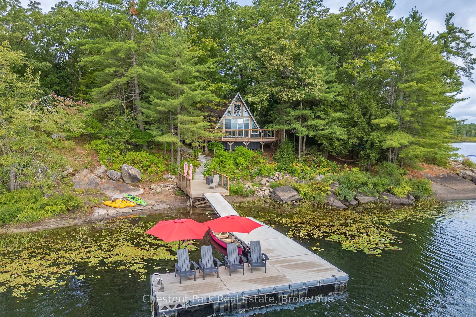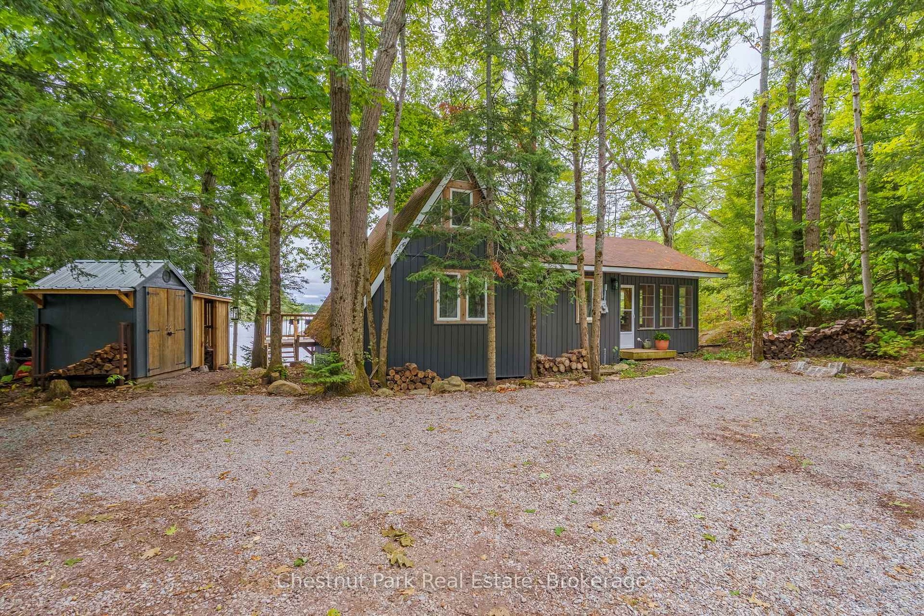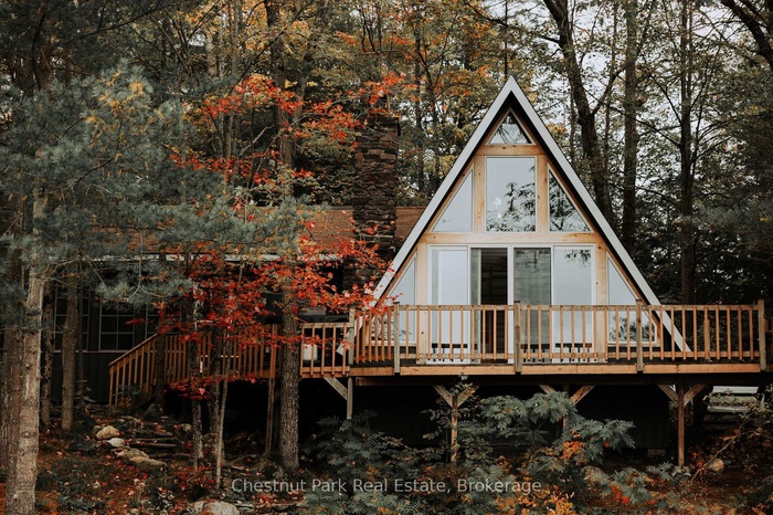 DescriptionOnce and while something very special comes along and you need to grab it - don't wait! "Cedar Point Aframe" on Gibson Lake is available for immediate closing and comes fully turnkey with all furniture, inside and out, along with the water toys. Move right in and enjoy Autumn at this 3 season, 760 sq ft, Aframe cabin perched right at the waters edge. Park at your brand new, private, cleared area, off the lane way and meander down to the cottage. Inside you are greeted by a screened in Muskoka room for dining off the kitchen. Into the living space, the stunning views of Gibson Lake are framed by the A and take your breath away. Both bedrooms are quietly tucked away, and a third queen bed is up the ladder to the loft. This sweet little place has been fully renovated with plenty of upgrades throughout which includes new paint, kitchen, flooring, and fixtures. This cottage is conveniently located right off HWY 400 and is 15 minutes to Port Severn, Mactier and Bala.Amenities- Bay