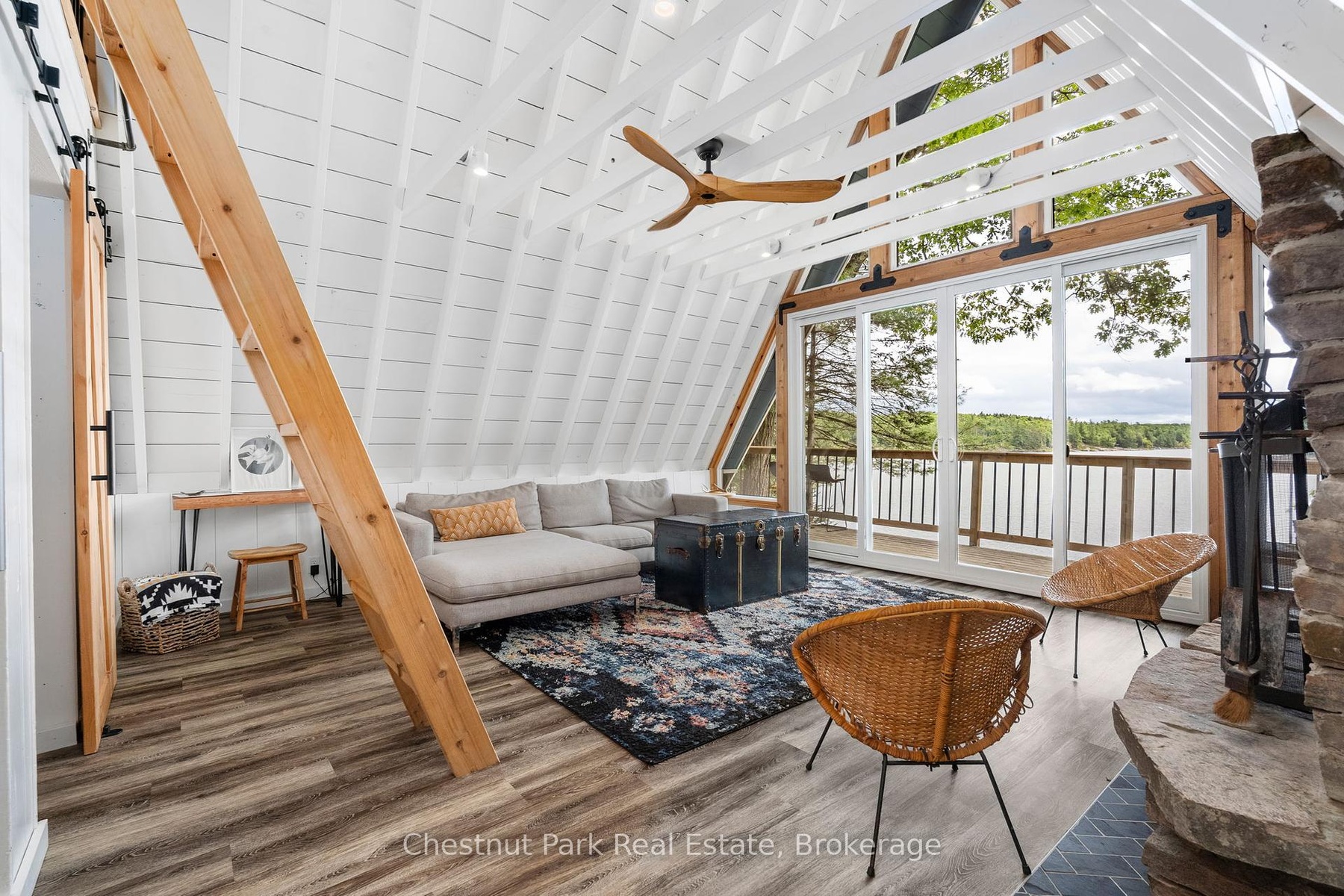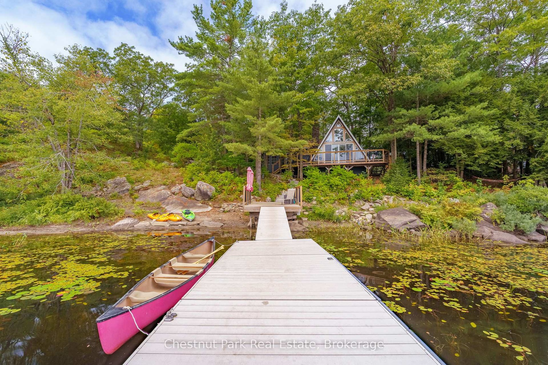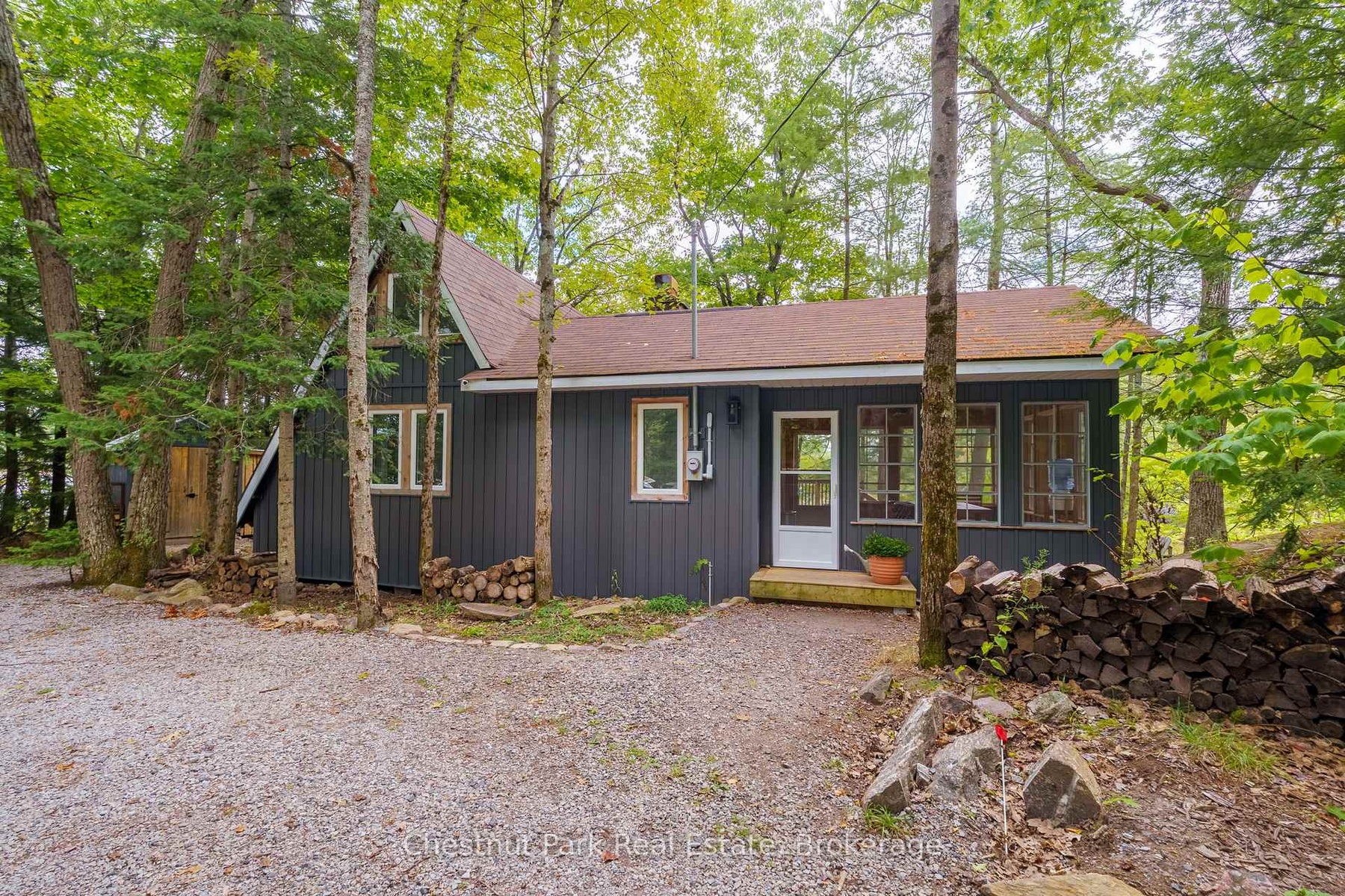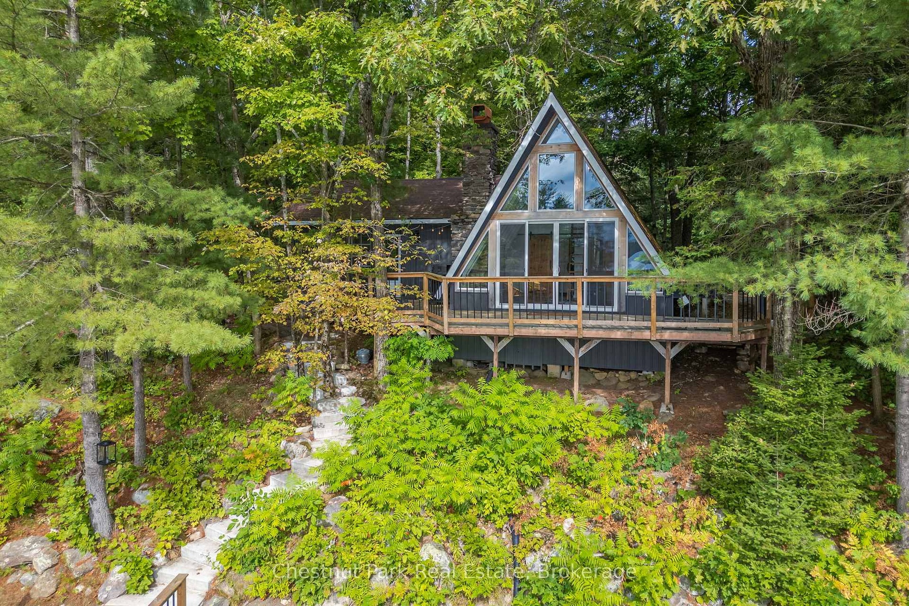 DescriptionOnce and while something very special comes along and you need to grab it - don't wait! "Cedar Point Aframe" on Gibson Lake is available for immediate closing and comes fully turnkey with all furniture, inside and out, along with the water toys. Move right in and enjoy Autumn at this 3 season, 760 sq ft, Aframe cabin perched right at the waters edge. Park at your brand new, private, cleared area, off the lane way and meander down to the cottage. Inside you are greeted by a screened in Muskoka room for dining off the kitchen. Into the living space, the stunning views of Gibson Lake are framed by the A and take your breath away. Both bedrooms are quietly tucked away, and a third queen bed is up the ladder to the loft. This sweet little place has been fully renovated with plenty of upgrades throughout which includes new paint, kitchen, flooring, and fixtures. This cottage is conveniently located right off HWY 400 and is 15 minutes to Port Severn, Mactier and Bala.Amenities- Bay