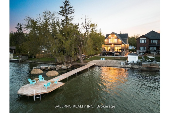 Rarely Offered 50 Ft Of Prime Lake Simcoe Waterfront! This Custom-Built Estate-Style Bungaloft Features 4 Spacious Bedrooms, 5 Bathrooms, And Breathtaking Lake Views In One Of Innisfil's Most Prestigious Waterfront Communities. With Soaring Ceilings And A Modern Open-Concept Layout, The Great Room Impresses With A Gas Fireplace And Loft Overlook. Every Bedroom Has Its Own Ensuite. The Gourmet Kitchen Is A Showstopper-Quartz Counters, Custom Cabinetry, Built-In Appliances, Wine Cooler, And An Oversized Island Ideal For Entertaining-All With Stunning Lake Views. Enjoy Seamless Indoor-Outdoor Living With An Expansive Deck And Privacy Blinds Throughout. High-End Finishes Include SPC Waterproof Vinyl Flooring And Thoughtful Upgrades At Every Turn. Nestled On A Private, Quiet Street Close To Trails And Parks. The Finished Basement Offers 3 Additional Bedrooms, Rough-In Kitchen, Full 3-Piece Bath, And A Large Rec Room. This Is Your Luxury Lakeside Retreat-Move In And Enjoy!
