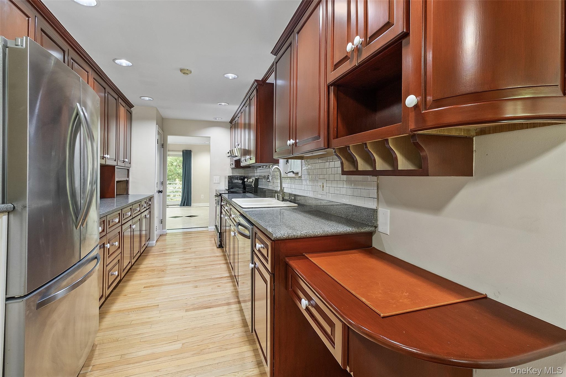 Spacious 4 Bedroom 3.5 bathroom plus office bright open and modern home located in the wonderful Talcott Woods Community. This sunlit home has big windows, oversized rooms and high ceilings. Close to the train, highways, shopping, dining, playgrounds, and bussed to Blind Brook Schools; this is an ideal location. This home has an updated eat in chef's kitchen with granite countertops and newer stainless steel appliances. Enjoy hardwood floors throughout, living room with high ceilings and a wood burning fireplace with sliders to a large private deck, a formal dining room, first floor bedroom or office, powder room and 2 car garage. Upstairs you will find 3 additional bedrooms with 2 full updated bathrooms. The walk out finished lower level has a rec room, bedroom, full bathroom, storage and a laundry room. Talcott Woods has a community pool and includes landscaping and snow removal. Close to Crawford and Pine Ridge Park, this well cared for modern rental is what you have been waiting for and is available for immediate occupancy.