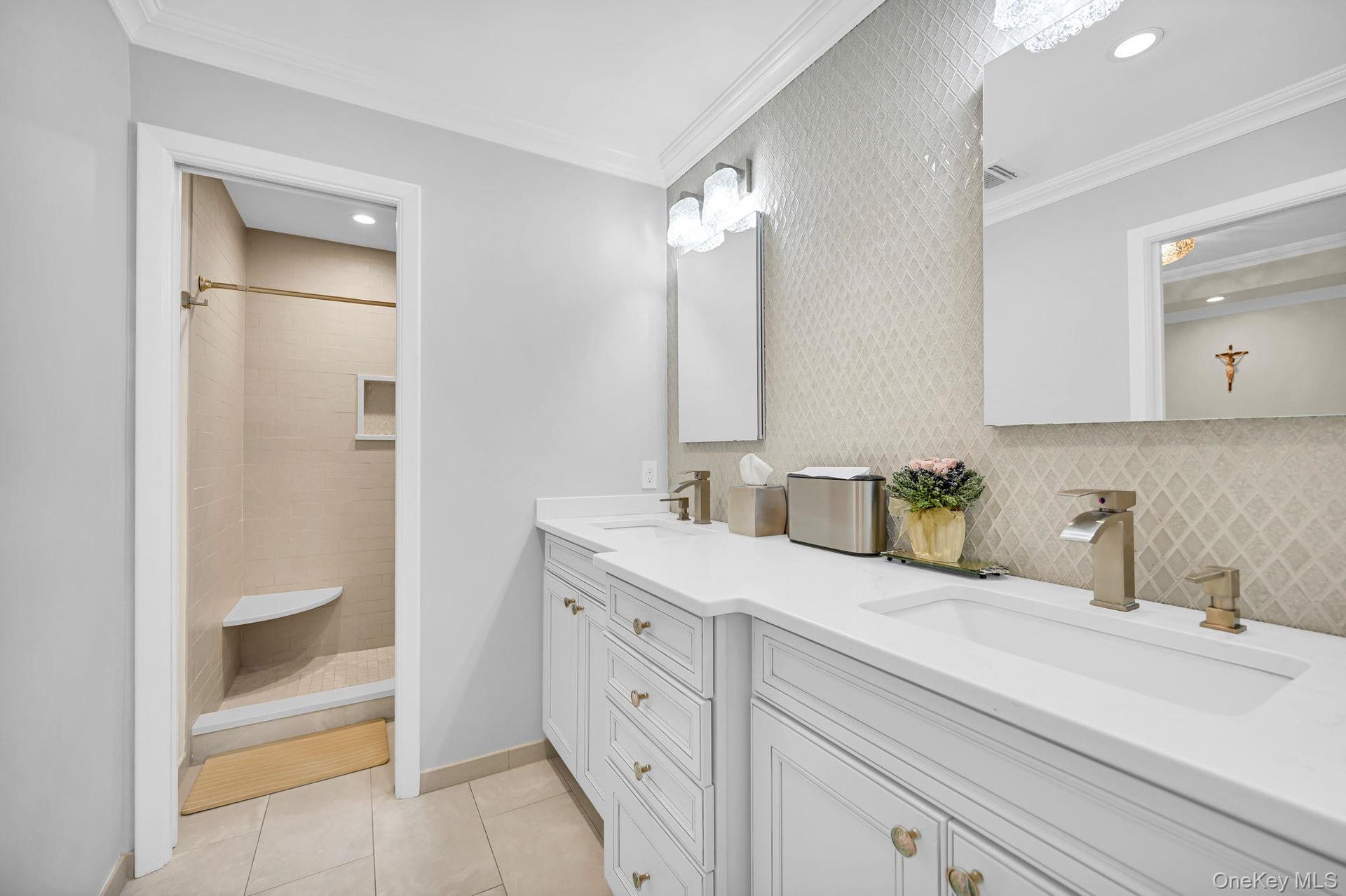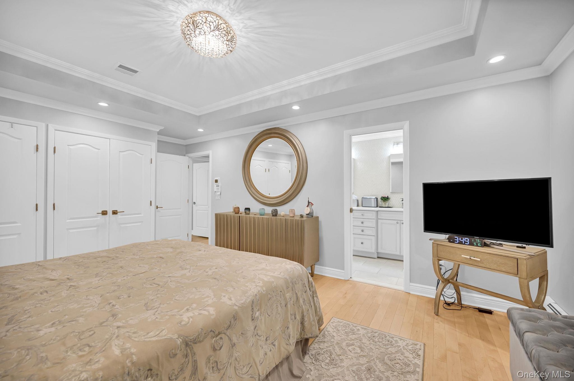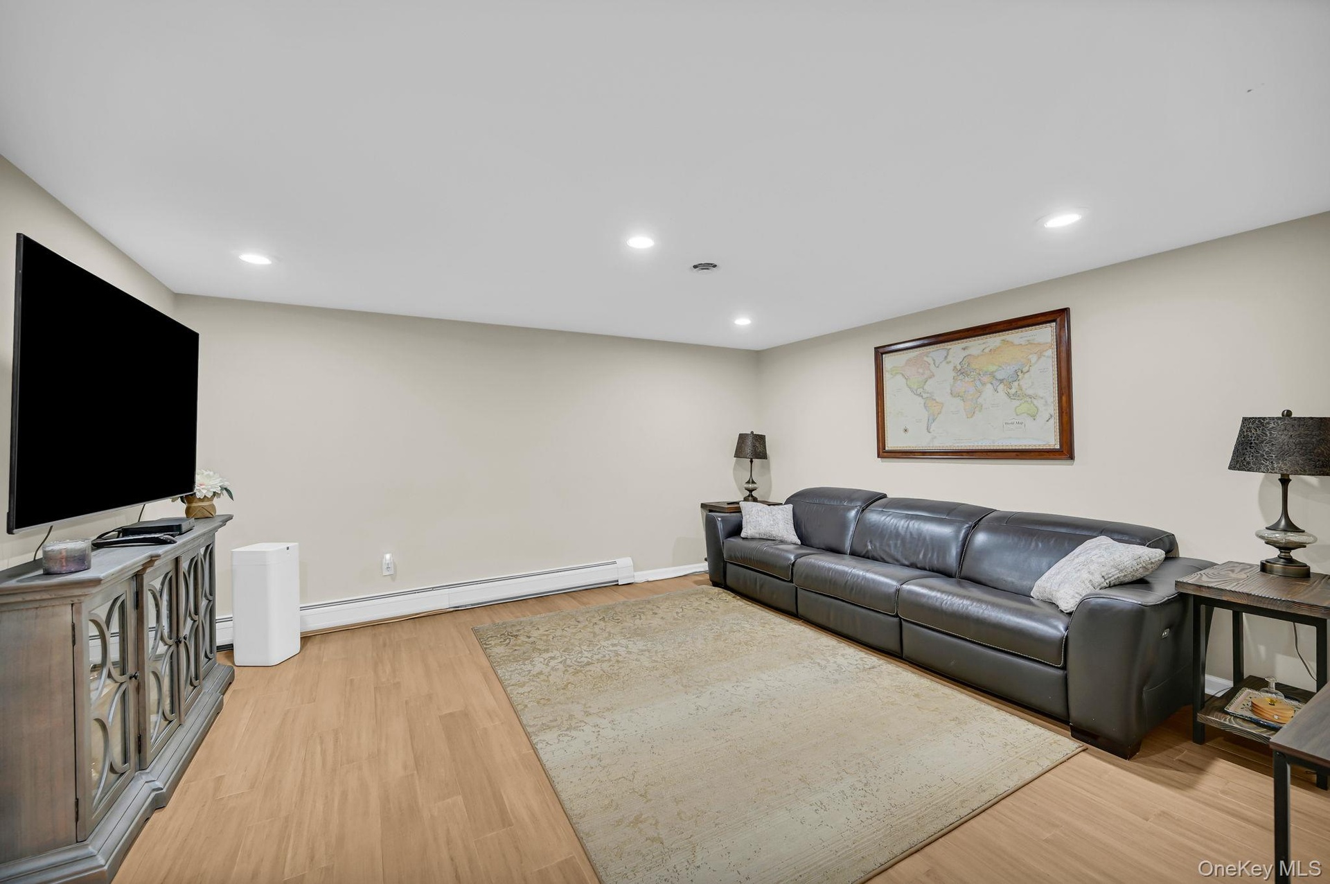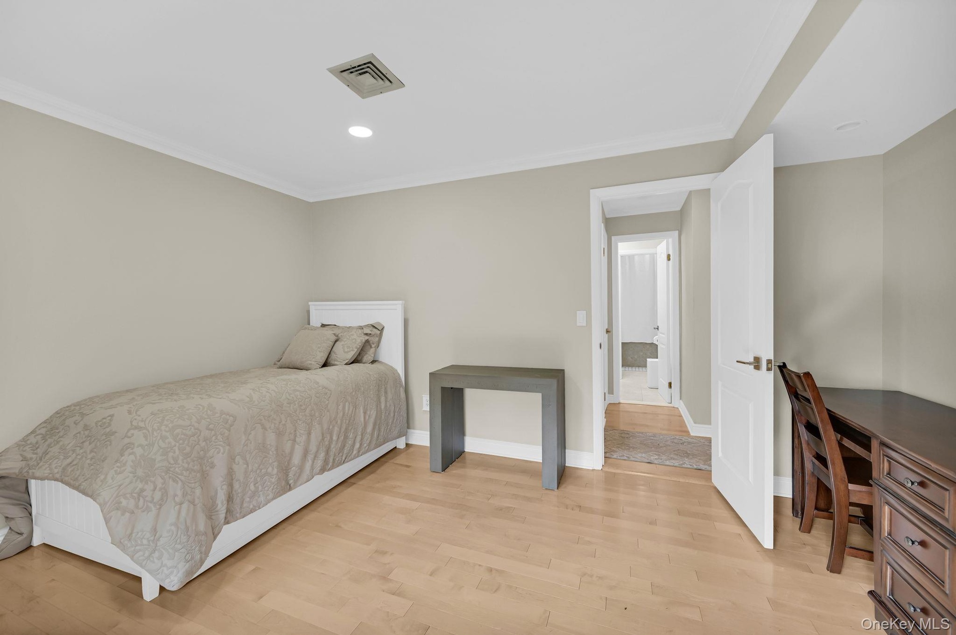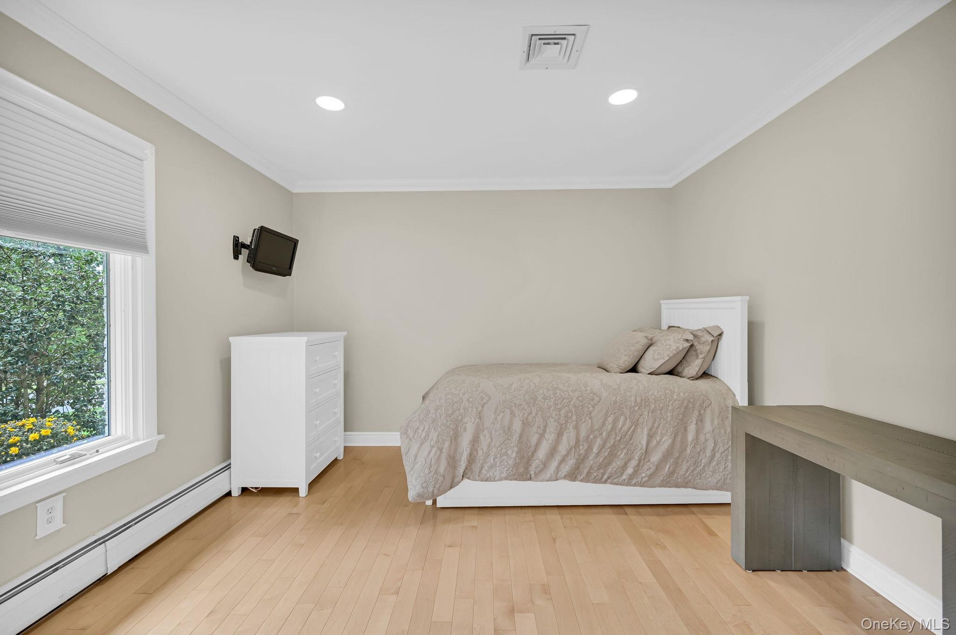 Stunning Ranch on picturesque 3/4 acre property on quiet cul-de-sac. Welcome to this immaculate 3-bedroom, 3-bathroom ranch, a perfect blend of classic style and modern comfort. Step into the entry foyer which leads to a bright, sun-drenched Living Room and an elegant Dining Room, both featuring gleaming hardwood floors. The heart of the home is the expansive Vaulted Family Room, distinguished by a dramatic floor-to-ceiling brick fireplace and beautiful beamed wood ceilings, creating a warm, inviting atmosphere perfect for gathering. Glass sliders lead directly to the serene backyard oasis. The adjacent gourmet Kitchen boasts custom cabinetry, granite countertops, stainless steel appliances, and a charming dining area, all under another striking vaulted, beamed ceiling.