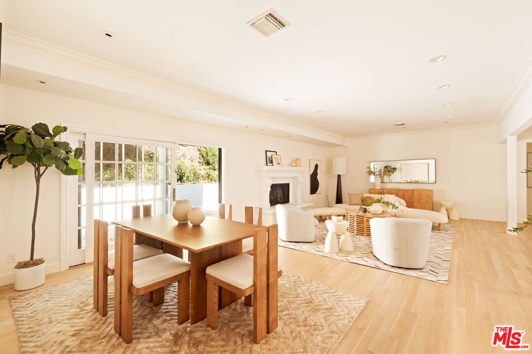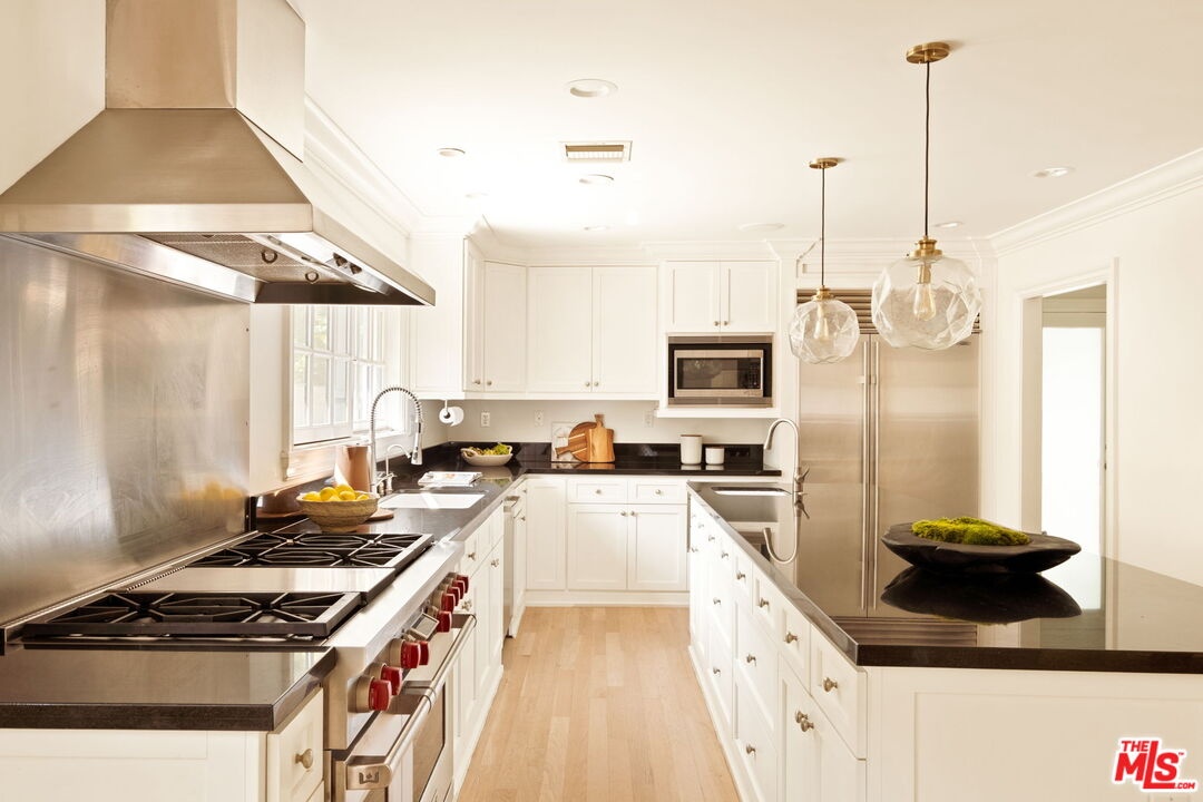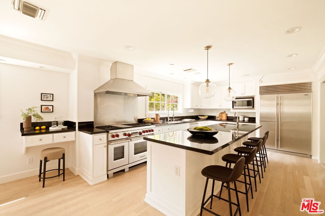 DescriptionNestled in a lush canyon in lower Bel Air, and one of the most charming homes on the street, 1132 Chantilly Rd is a single-level, turnkey home featuring three bedrooms and three bathrooms. Set above the street with striking black double front doors, wrought iron lanterns, a brick stairway leads to a covered entry framed in white stone. A wood-burning fireplace anchors the living room, which connects to a dining area that opens to the outdoor terrace through French doors. The kitchen includes Wolf appliances, stone countertops, generous storage, a breakfast nook, and a window-lined area ideally suited for a coffee corner. The primary suite includes its own fireplace, walk-in closet, seating area, and direct access to a private backyard. The en-suite bath features limestone finishes, dual vanities, a soaking tub, and a steam shower with dual heads. Two additional en-suite bedrooms are positioned to bring in natural light through well-placed windows. Surrounded by mature greenery, the outdoor areas offer multiple spaces for lounging and alfresco dining. A compelling offering in lower Bel Air, where location, size, and quality rarely align at this price point.Amenities- Breakfast Nook