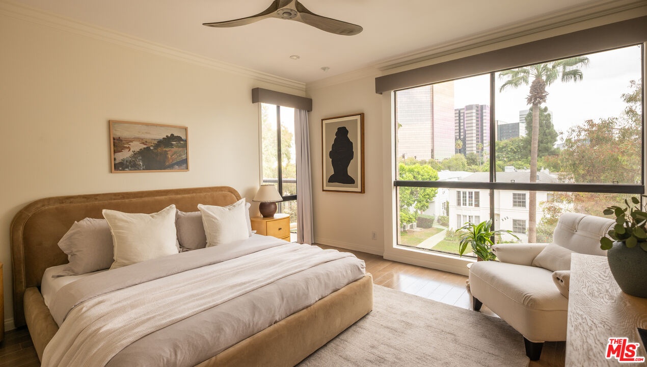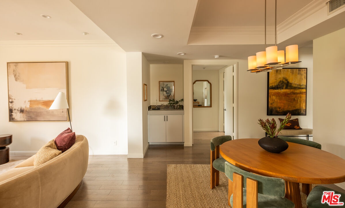This refined condo in a boutique Beverly Hills building offers abundant natural light and an airy, open feel. Ideally located, it's just steps from a serene park, tennis courts, and exceptional dining. A rare blend of tranquility and urban convenience in an iconic location.