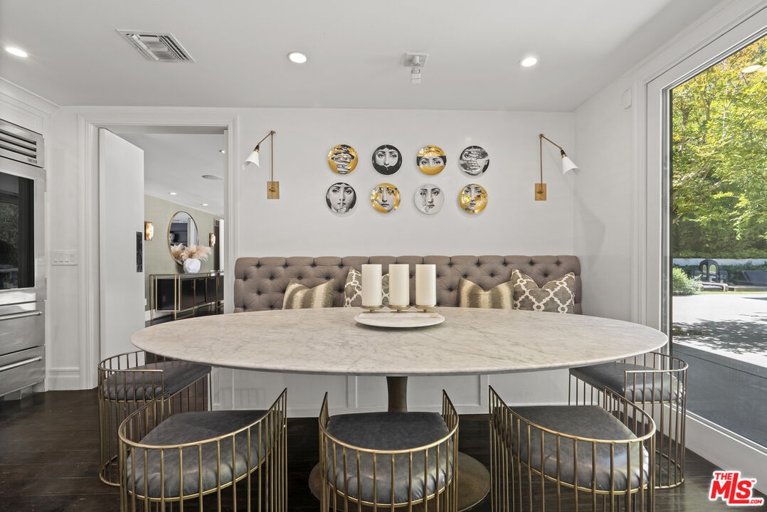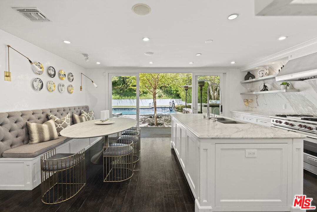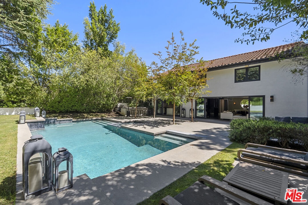 DescriptionMove in ready, designer family home in one of the most sought after neighborhoods in the hills just north of the Beverly Hills Hotel. Set on a coveted flat street lined with sidewalks, this residence offers access to private tennis courts and 24 hour security patrol in a young and vibrant family community. This modernized traditional home features an open layout where the eat-in chef's kitchen with Calcutta marble, steel shelving, and top-tier appliances flows seamlessly into the living and dining areas. Walls of glass slide open to the private backyard, creating effortless indoor outdoor living. The family room doubles as a full media lounge with piano and wet bar, while the outdoor kitchen, saltwater pool/spa, fire pit and multiple seating areas will have you entertaining every weekend. Upstairs, the luxurious primary suite includes a fireplace, sitting area, balcony, steam shower, sauna, and a large walk-in closet. Three additional en suite bedrooms complete the upper level, with a well positioned maids-suite downstairs plus an additional 400 square foot game/playroom. Surrounded by manicured landscaping and finally prune trees, this home offers both elegance and ease of living in the top rated and highly coveted, Warner Avenue school district.NeighborhoodMore listings: