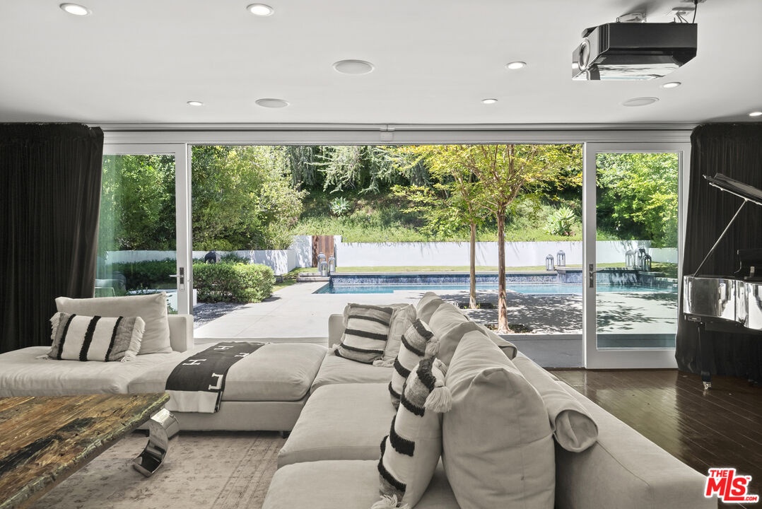 Move in ready, designer family home in one of the most sought after neighborhoods in the hills just north of the Beverly Hills Hotel. Set on a coveted flat street lined with sidewalks, this residence offers access to private tennis courts and 24 hour security patrol in a young and vibrant family community. This modernized traditional home features an open layout where the eat-in chef's kitchen with Calcutta marble, steel shelving, and top-tier appliances flows seamlessly into the living and dining areas. Walls of glass slide open to the private backyard, creating effortless indoor outdoor living. The family room doubles as a full media lounge with piano and wet bar, while the outdoor kitchen, saltwater pool/spa, fire pit and multiple seating areas will have you entertaining every weekend. Upstairs, the luxurious primary suite includes a fireplace, sitting area, balcony, steam shower, sauna, and a large walk-in closet. Three additional en suite bedrooms complete the upper level, with a well positioned maids-suite downstairs plus an additional 400 square foot game/playroom. Surrounded by manicured landscaping and finally prune trees, this home offers both elegance and ease of living in the top rated and highly coveted, Warner Avenue school district.