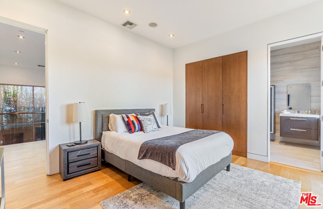 Fully furnished! This fully equipped 5-bed, 6-bath home boasts a curated modern design. The open floor plan, warm oak floors, and folding doors seamlessly connects indoor and outdoor spaces. A stunning primary bedroom offers a walk-in closet, balcony, and spa-like bathroom. The chef's kitchen features Miele appliances, contemporary cabinetry, and a large center island. Enjoy the sunlit pool and spa in the private backyard! Prime Beverly Grove location, moments from The Grove, Beverly Center, and more.