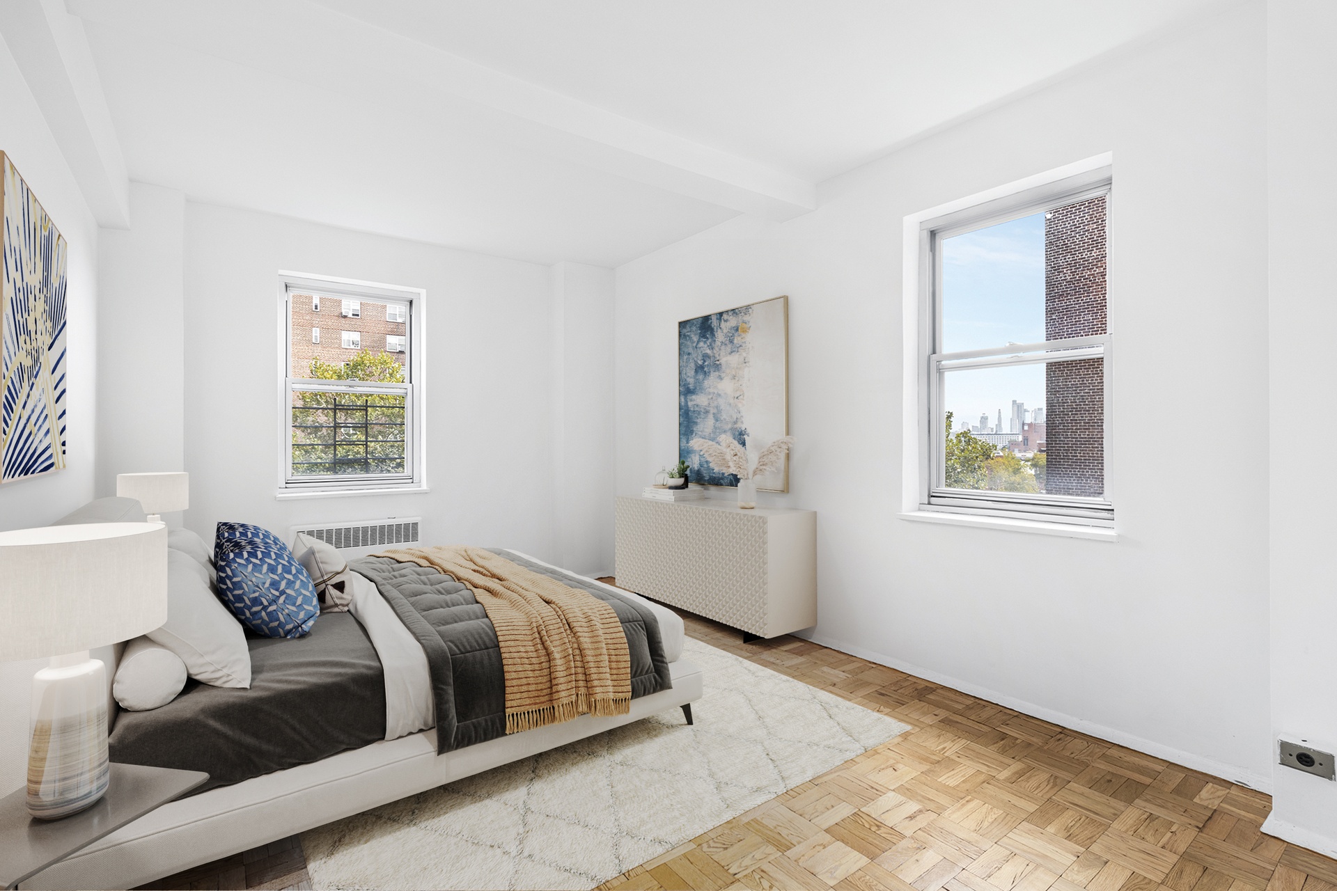 Hurry before its gone. Check out the spacious 1-bedroom apartment on the 8th floor of the Hillman Co-op! This sun-lit home features a windowed eat-in kitchen & windowed bath, a large living room with western exposure, and a large bedroom with double exposures (south and west). The flexible layout offers potential to open the kitchen/living room for a loft-like feel or convert to a 2-bedroom. This unit features 4 large closets, updated moldings, hardwood floors in the entry/hallway, original parquet in the living/bedroom, and classic Hillman beamed ceilings over 8 feet high.