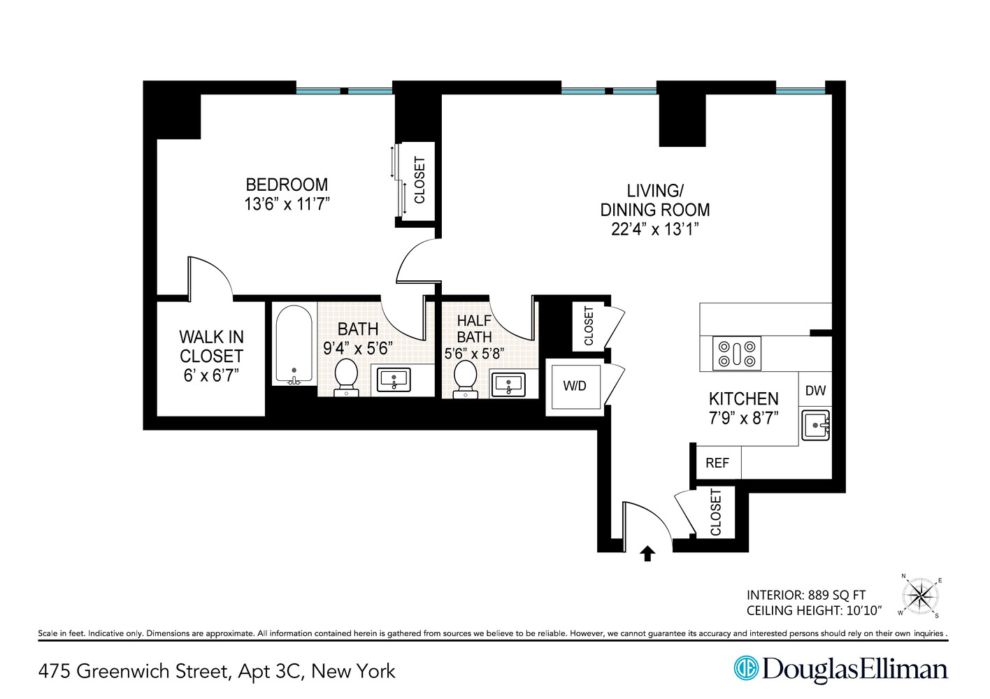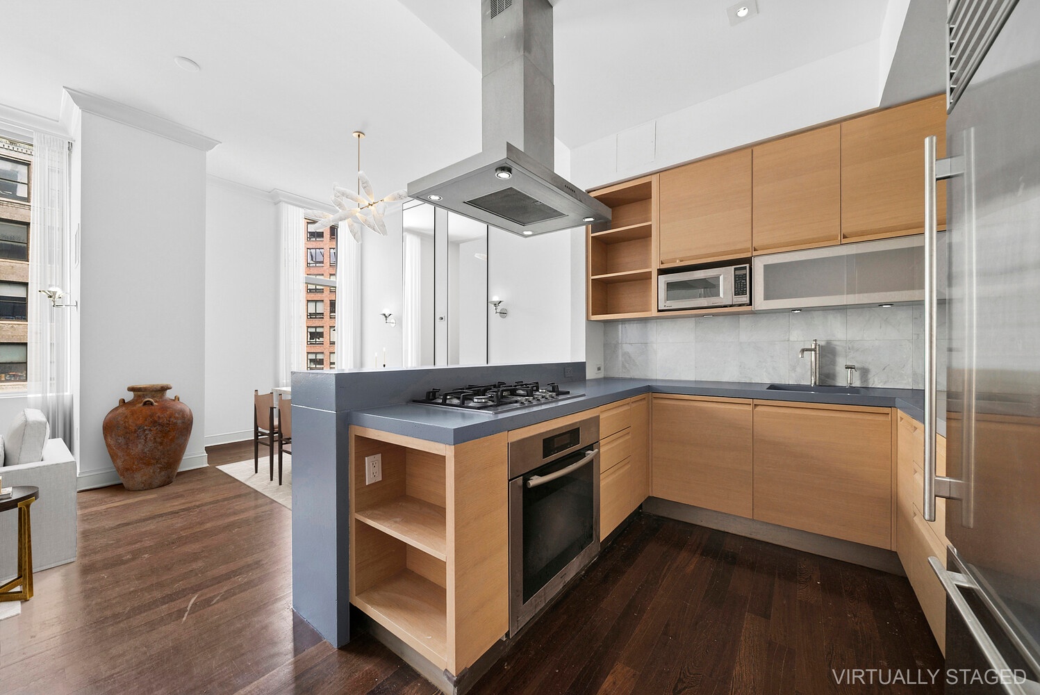 Apartment 3C is a large 1Bed / 1.5 Baths with high ceilings and a loft like feel. Incredible layout with chef's designed kitchen open to the generously appointed dining / living room area. Light abounds through the oversized windows both in the living area as well as the bedroom. Washer and Dryer in unit. Lots of closet space.