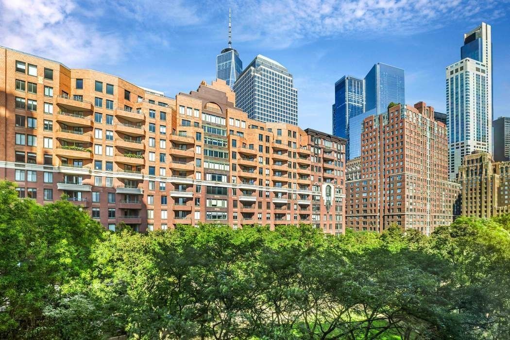 - Oversized windows frame lush treetop views of Rector Park, the iconic WTC skyline, and a partial glimpse of the Hudson River.