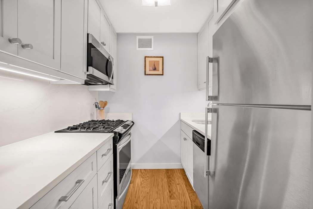 - Galley-style kitchen features a gas range, refrigerator, microwave, and dishwasher—perfect for everyday cooking and entertaining.