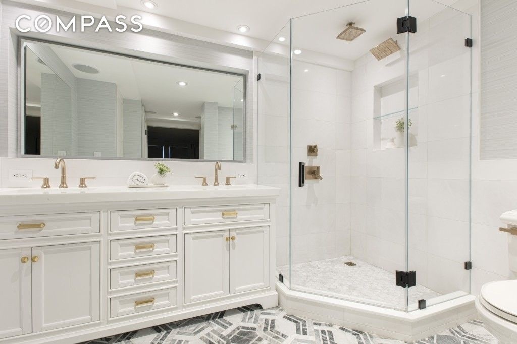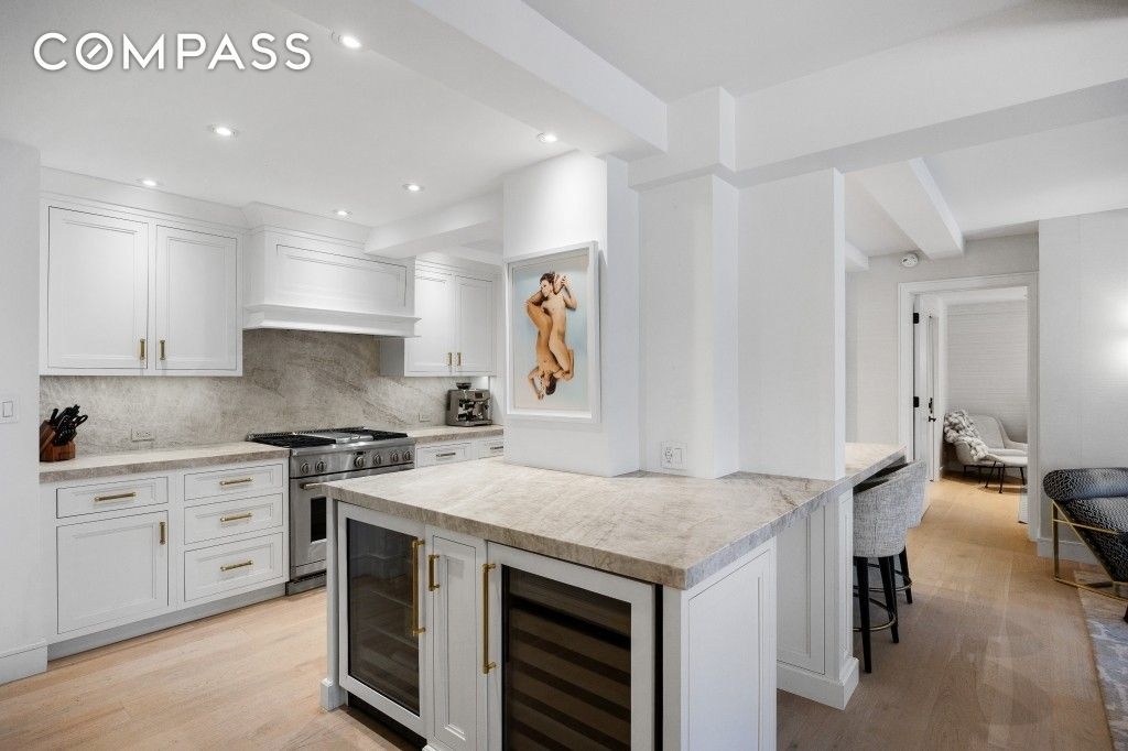 Luxurious newly Renovated Co-op in the recently developed Hudson Yards Neighborhood. Turn key unit and move-in ready! Enter timeless elegance reimagined for modern living. This meticulously renovated co-op blends classic New York charm with cutting-edge sophistication, offering a sanctuary of style and comfort in one of the city's most coveted neighborhoods. State-of-the-Art Chef's Kitchen: Custom cabinetry, Leathered Taj Mahol natural quartz countertops and backsplash, top-of-the-line appliances from Miele and Monogram, additional built-in wine fridge and also a soda fridge, and brass fixtures and hardware throughout. Spa-Inspired Bathrooms: Featuring marble floors and walls, brass Brizo fixtures, oversized rain showers enclosed in frameless glass and a deep soaking bathtub. Designer Finishes: Wide-plank white oak flooring, recessed LED lighting and sconces, motorized window treatments throughout as well as wallpaper throughout. This co-op isn't just a home, it's a statement.