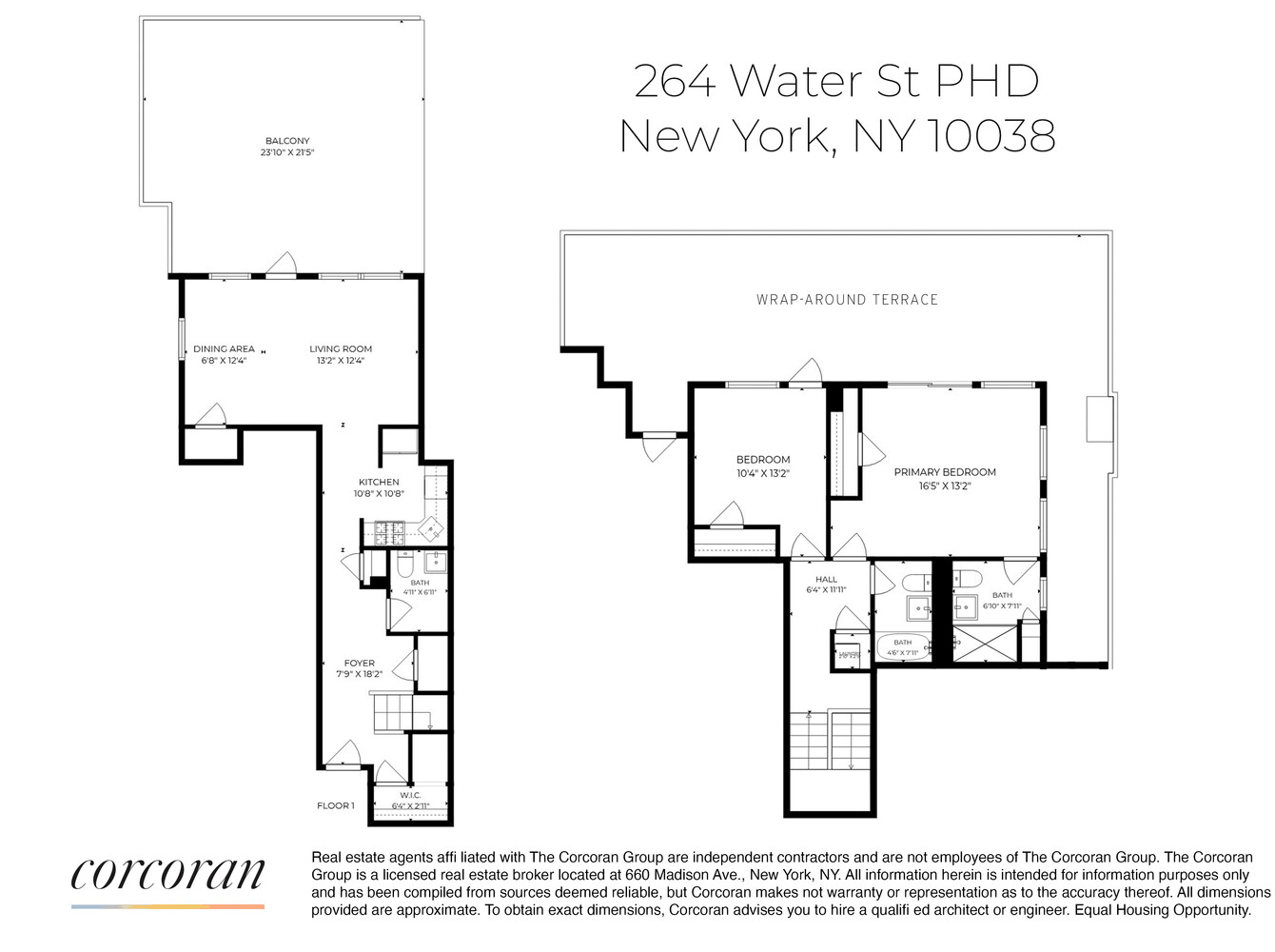This unique penthouse residence offers 1,300 sq. ft. of interiors paired with an additional 1,000 sq. ft. of private wraparound terrace space across two levels (approximate).