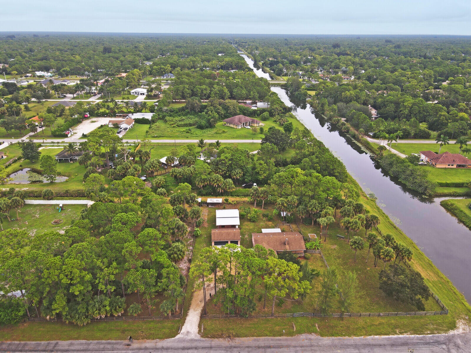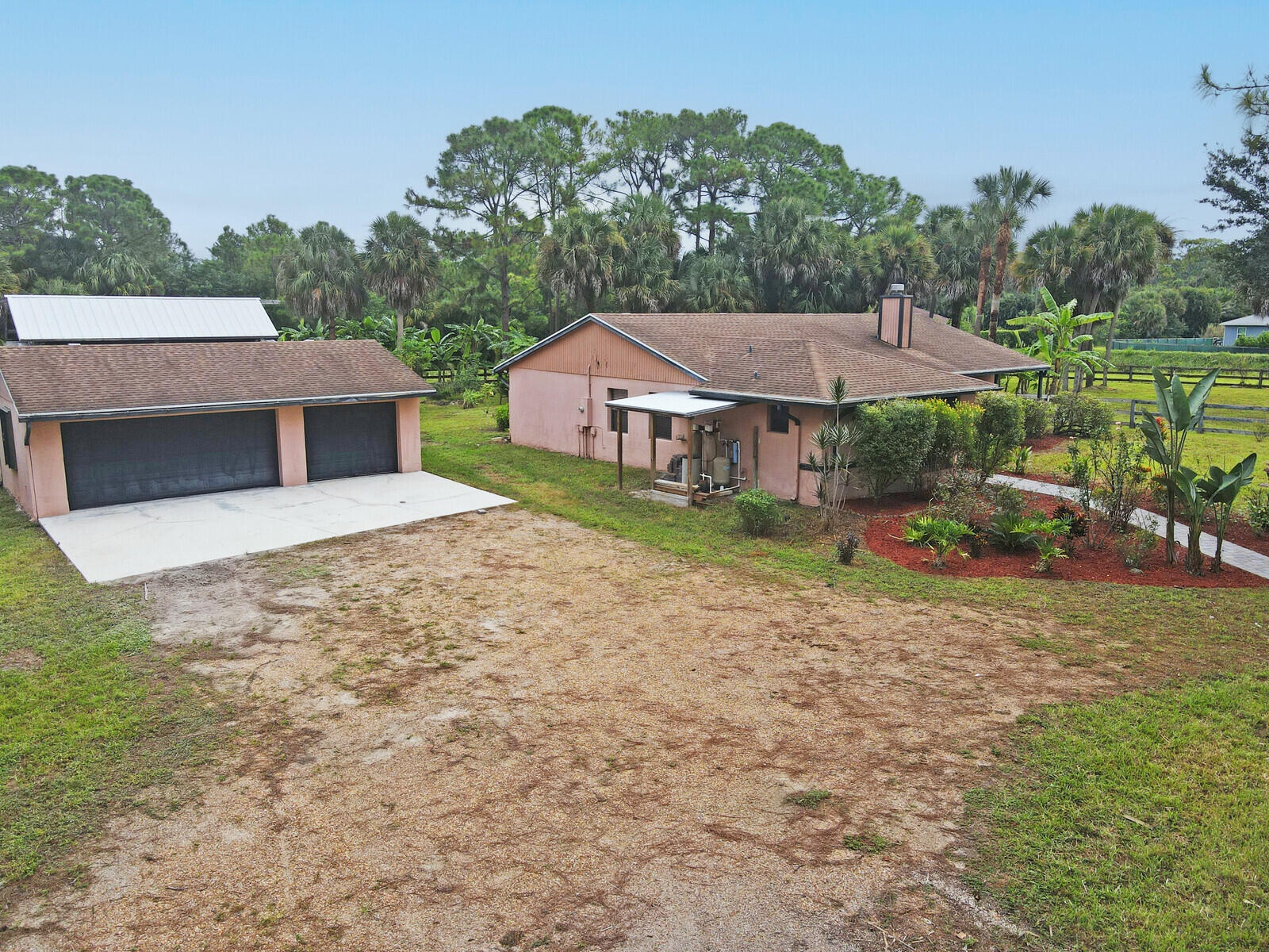 Welcome to your dream home in the heart of Loxahatchee! This spacious 4-bedroom, 3-bathroom ranch-style single-family home offers 1,803 sq ft of comfortable living space on a sprawling 2.82-acre fully fenced corner lot bordering a large canal--perfect for privacy, space, and serene views. The property features a versatile in-law suite complete with its own kitchenette and separate entrance, ideal for guest, family or even rental potential. A large 3 car DETACHED GARAGE/WORKSHOP provides ample space for hobbies, vehicles, or a home business. Equestrians and hobby farmers will love the large 4-STALL BARN and tack room, while the lush yard is enhanced with old-growth landscaping and mature fruit trees, creating a peaceful, park-like setting.