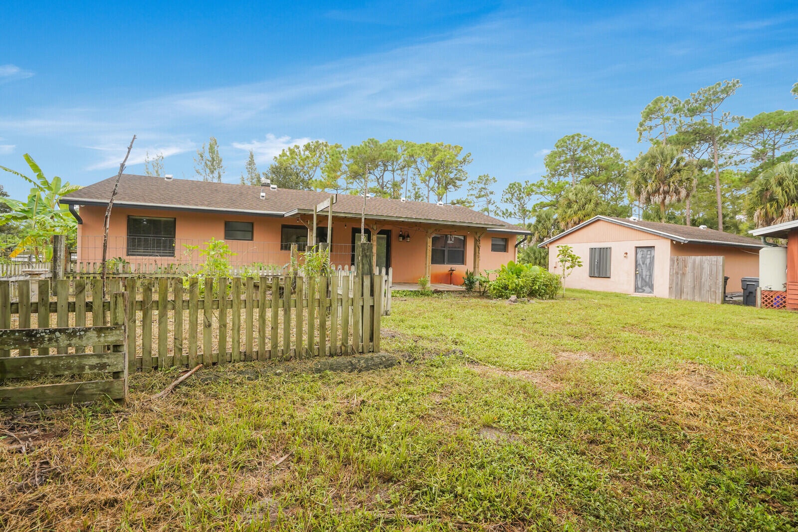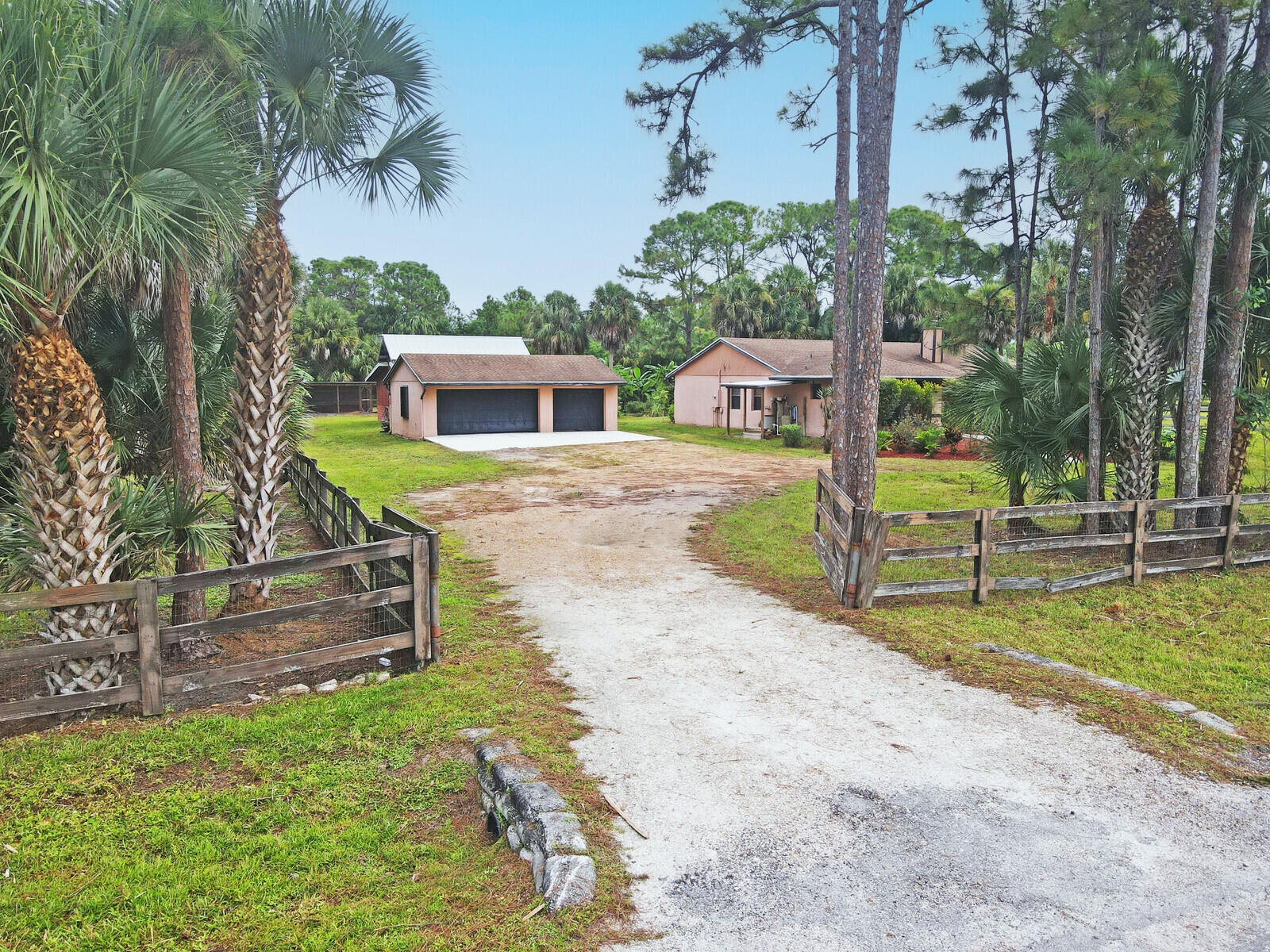 DescriptionWelcome to your dream home in the heart of Loxahatchee! This spacious 4-bedroom, 3-bathroom ranch-style single-family home offers 1,803 sq ft of comfortable living space on a sprawling 2.82-acre fully fenced corner lot bordering a large canal--perfect for privacy, space, and serene views. The property features a versatile in-law suite complete with its own kitchenette and separate entrance, ideal for guest, family or even rental potential. A large 3 car DETACHED GARAGE/WORKSHOP provides ample space for hobbies, vehicles, or a home business. Equestrians and hobby farmers will love the large 4-STALL BARN and tack room, while the lush yard is enhanced with old-growth landscaping and mature fruit trees, creating a peaceful, park-like setting.