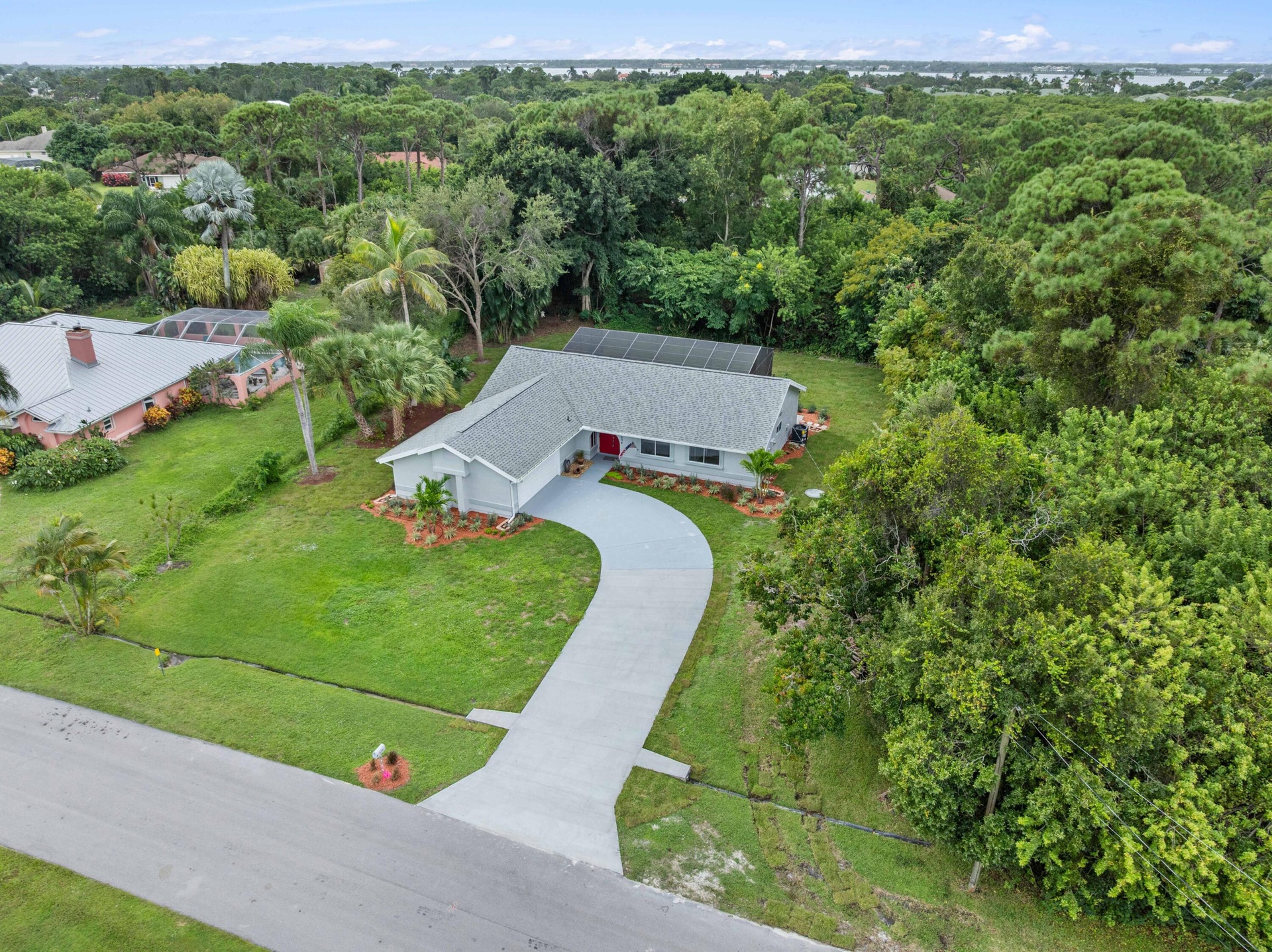 Beautifully updated 3 bed, 2 bath, 2-car garage home boasts countless upgrades and sits on a very private .44 acres! Enjoy peace of mind with a 2021 roof and fresh paint inside and out. Step into a stunning new kitchen featuring quartz countertops, soft-close cabinets, and stainless steel appliances. The open main living area boasts new luxury vinyl plank flooring, while both bathrooms are fully remodeled with new tile, cabinetry, and countertops--master bath includes a frameless glass shower. Relax in your resurfaced pool with diamond brite finish, new tile, and a pavered deck--perfect for entertaining. New fans and fixtures throughout. Move-in ready with modern finishes and timeless style!