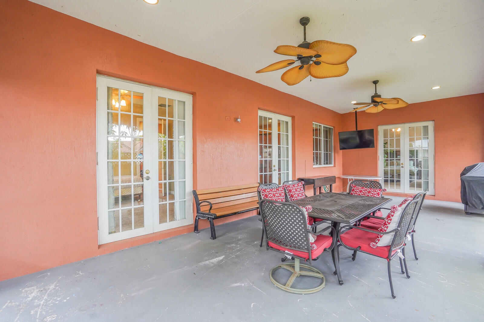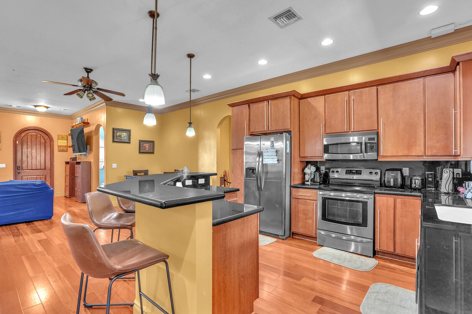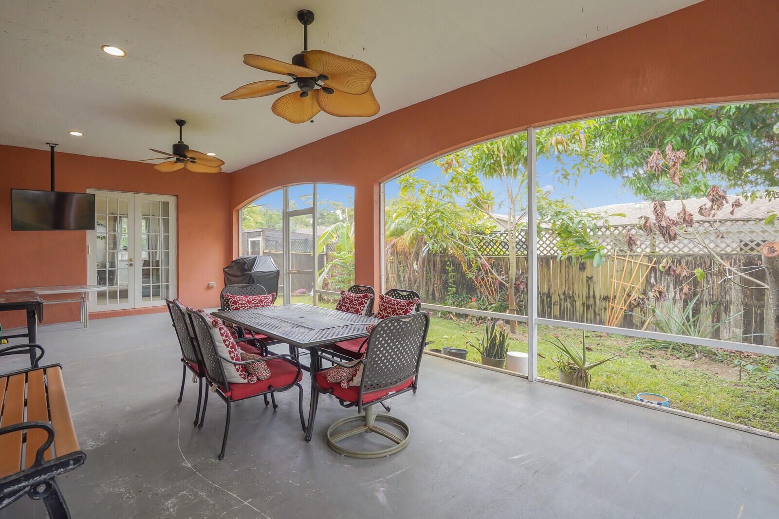 DescriptionThis charming 3-bedroom, 2.5-bath single-family home with a dedicated office space was built in 2007 and offers over 2,200 square feet of comfortable living. It features a desirable split floorplan, eco-friendly solar panels, impact windows, and no HOA. AC 2024 Inside, the home showcases 10-foot ceilings, granite countertops, stainless steel appliances, elegant crown molding, and tile flooring throughout. The spacious primary suite (22x20 ft) includes two walk-in closets and a luxurious en-suite bathroom with dual sinks, a separate tub, and a separate shower. An additional half bath and a dedicated office add convenience and flexibility for working from home or hosting guests. Outside, you'll find a large yard with fruit trees, a screened-in back porch perfect for relaxing,