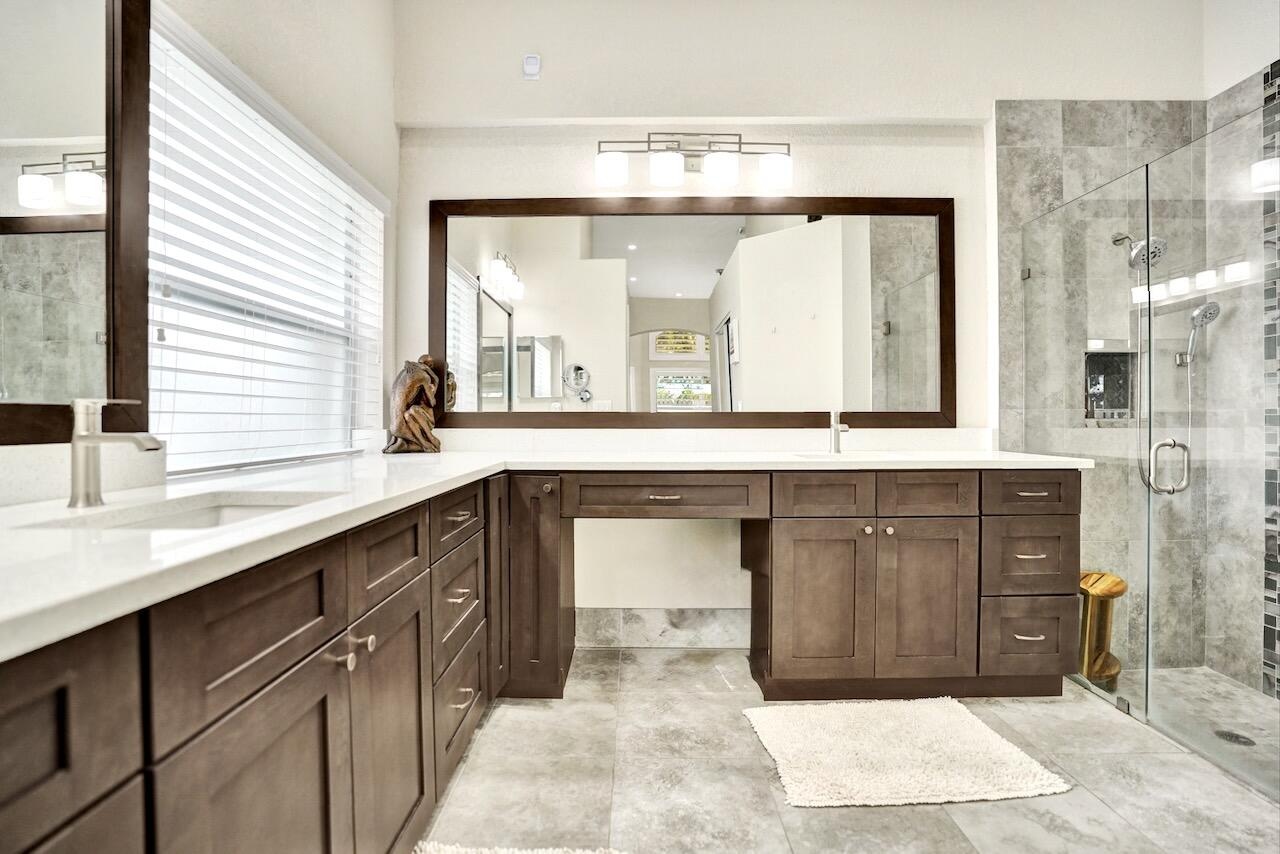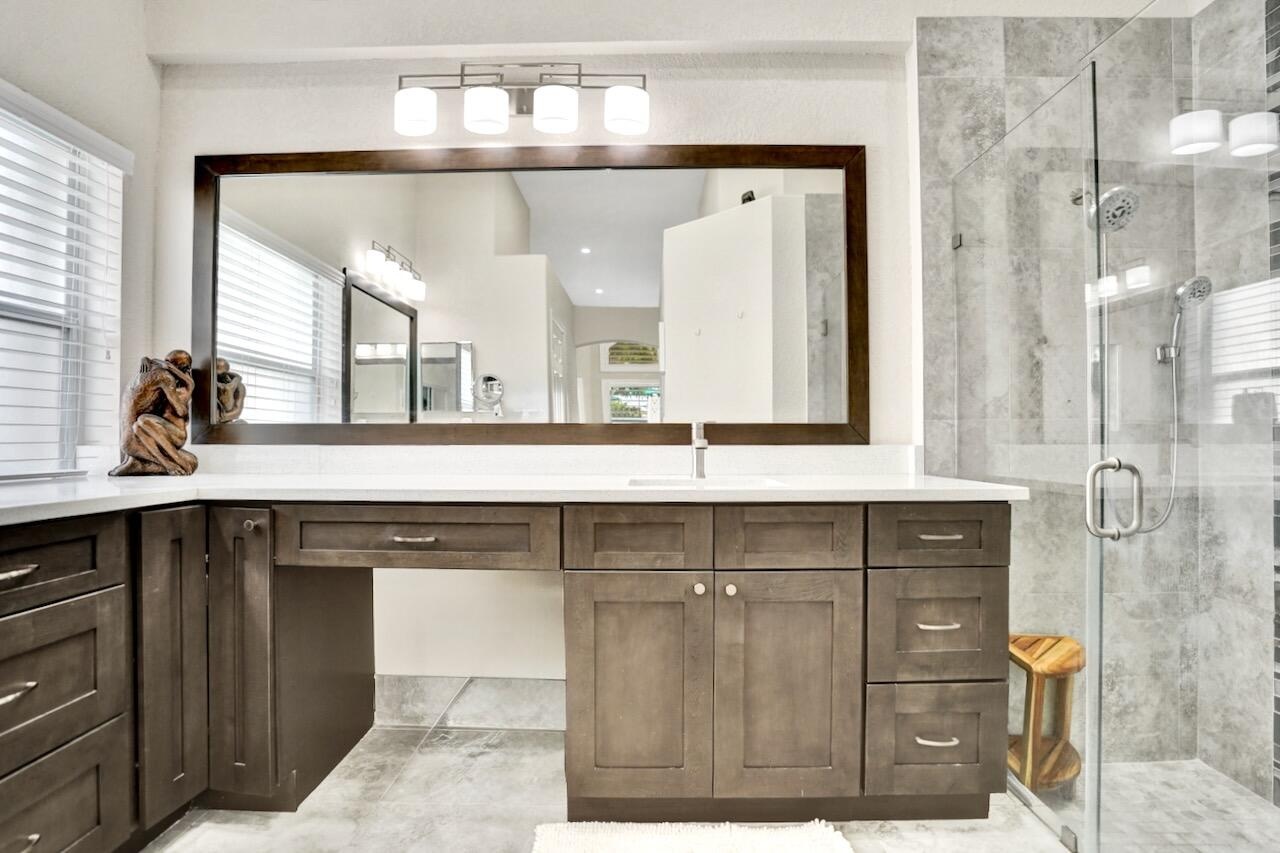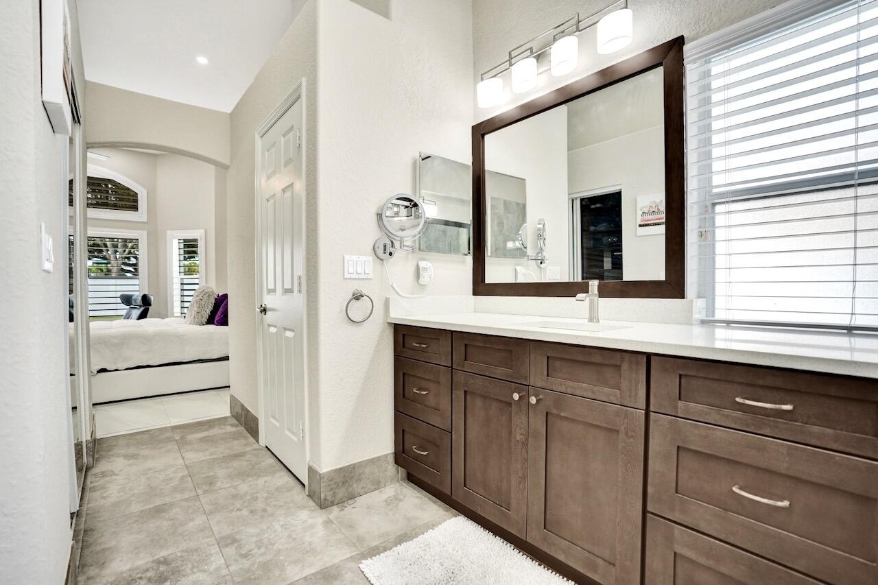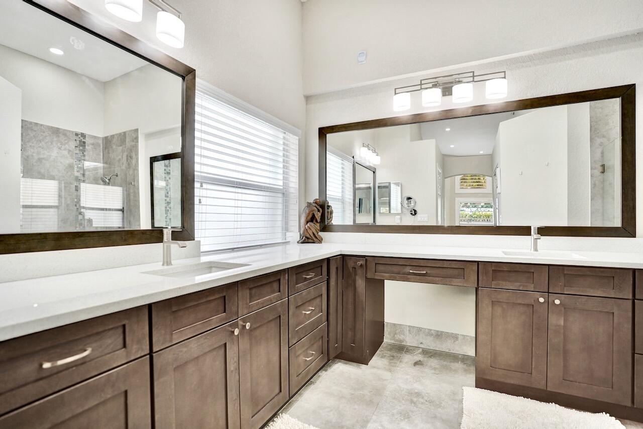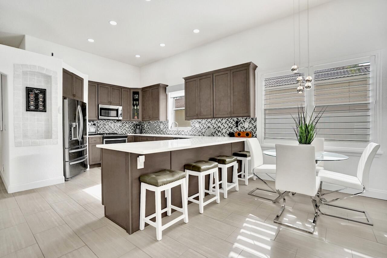 Welcome home to your dream home in the desired, gated community of Winston Trails! Located in the Indianwood Village subdivision, this beautifully updated Casablanca model will not disappoint! This gorgeous home is over 2100 sq ft, has 3 spacious bedrooms, 2.5 baths and sits on almost a 1/4 acre fenced in lot! If you are searching for a home with tons of natural light, this is the house for you! Every room is bright and beautiful with custom LED hi hat lighting throughout! The entire home features neutral tile floors and fresh paint, in addition to plantation shutters throughout- the sliders even feature electric shades! The updated kitchen features two toned cabinets, quartz countertops, stainless steel appliances and has been extended for more kitchen space AND there a custom dry bar