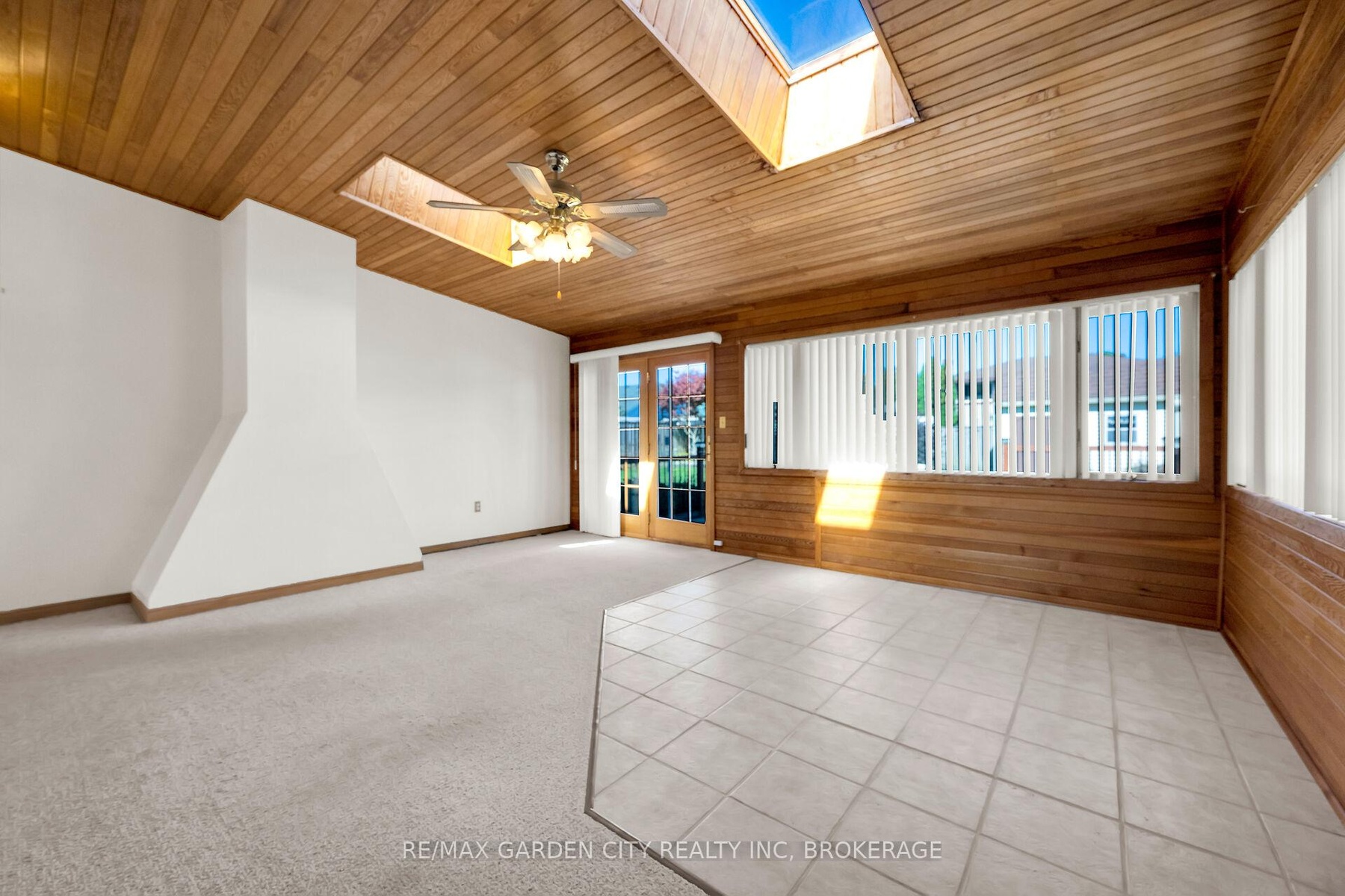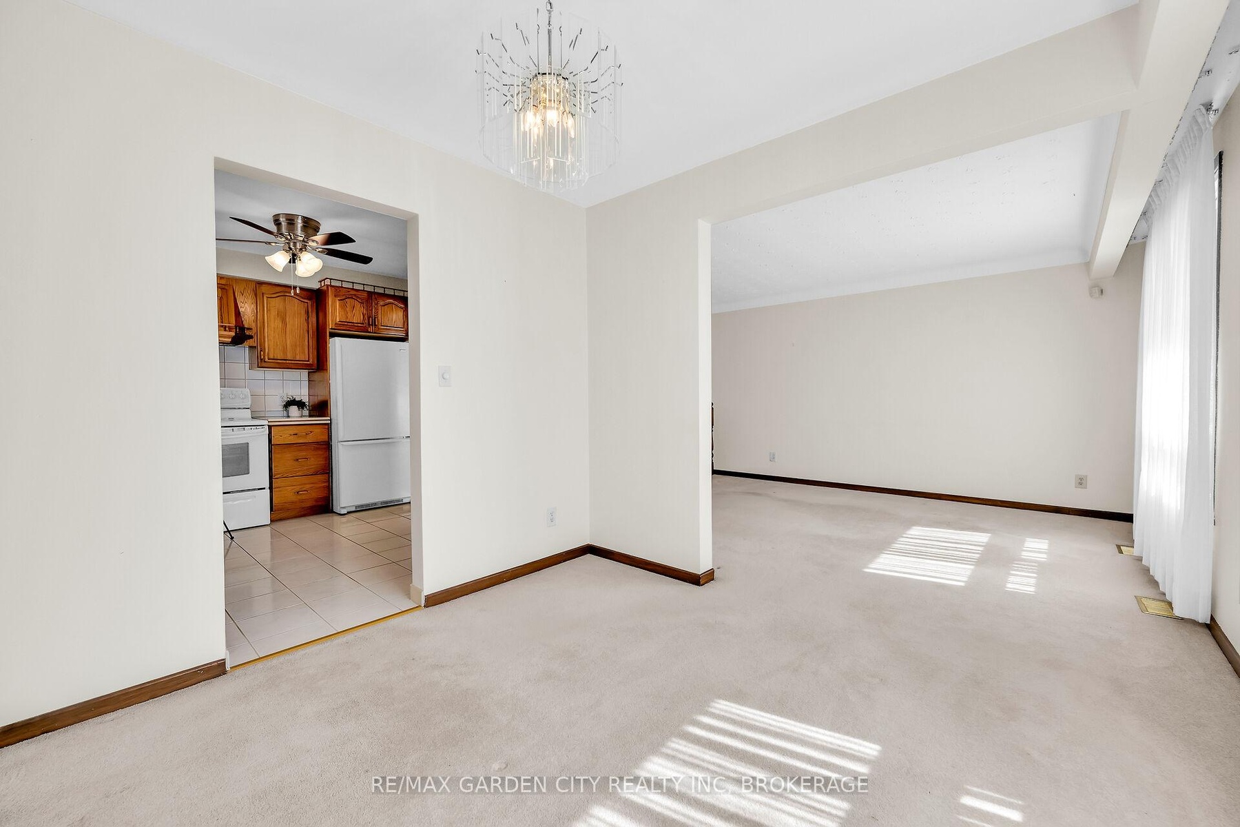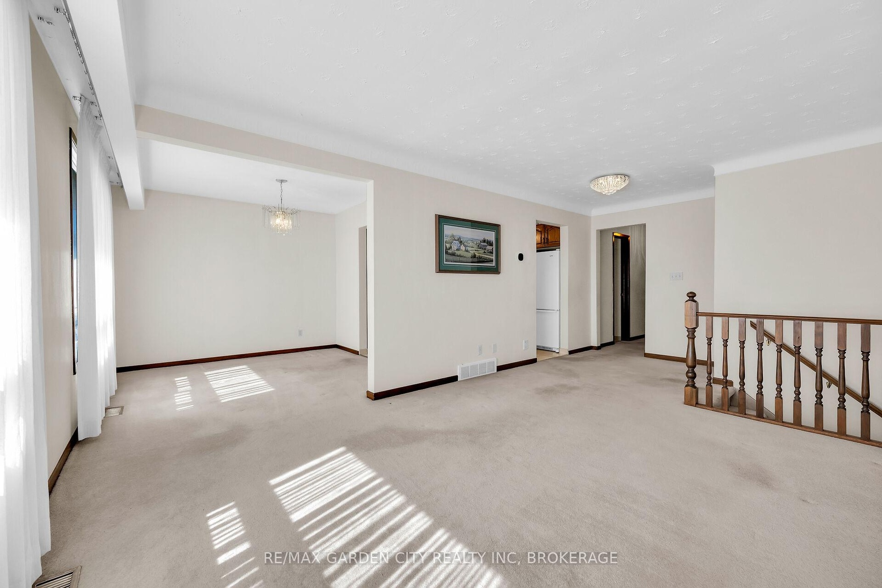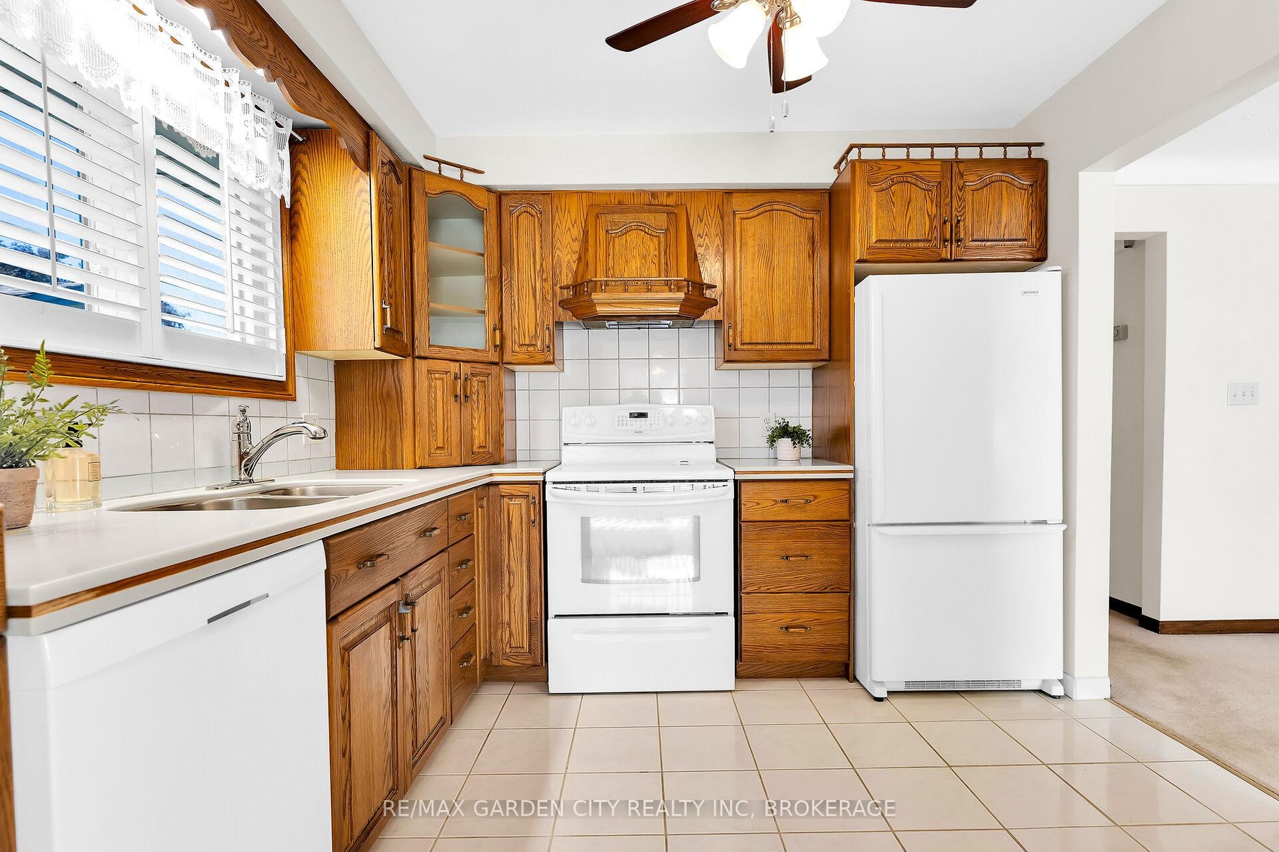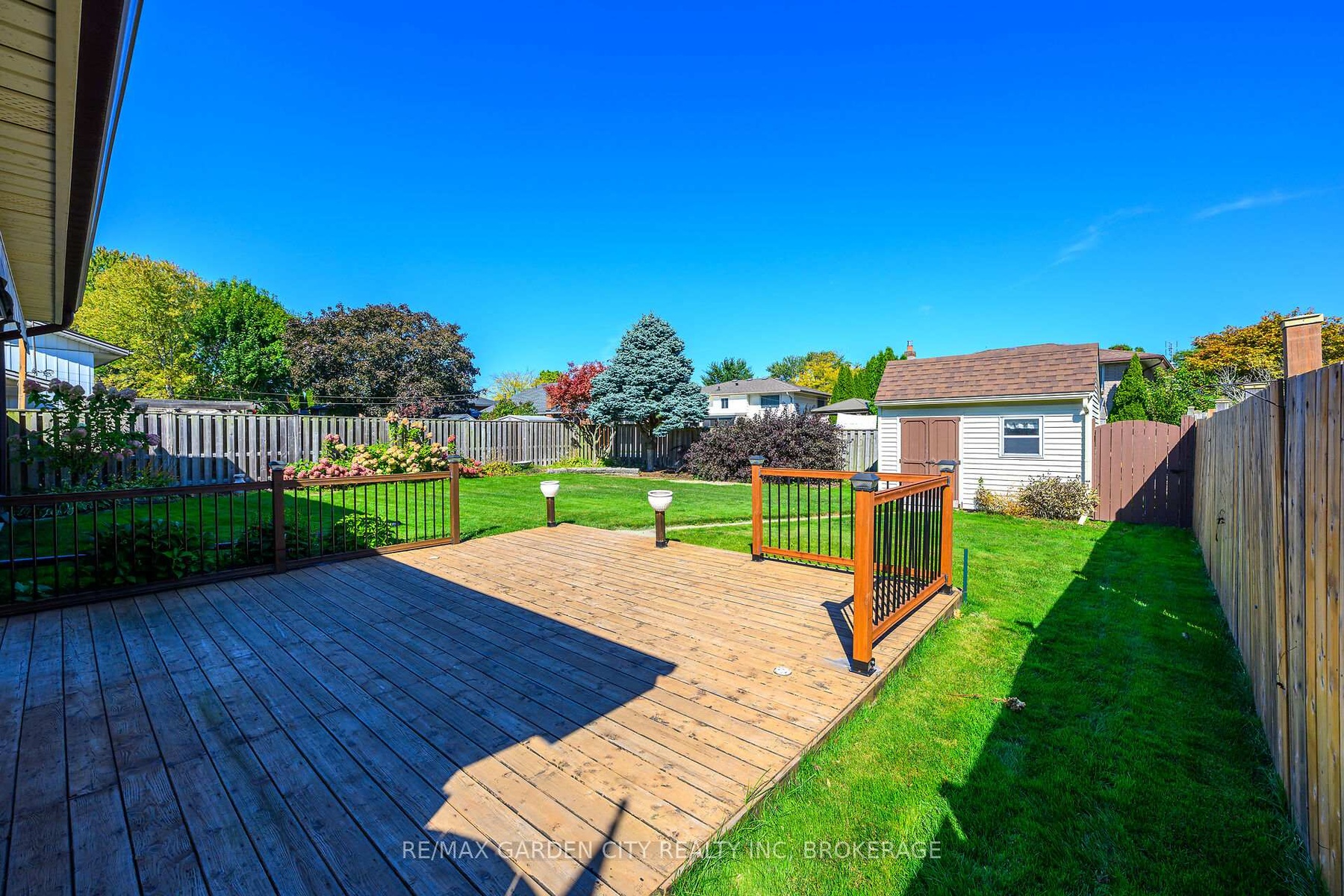 This lovely raised Bungalow is located in a desirable North-End Neighbourhood. The main floor features a bright and spacious layout, including an Elmwood oak kitchen with Corian countertops, a Bosch dishwasher, and a garburator. The large living and dining room are filled with natural light, creating a warm and inviting atmosphere.This level also offers a full bathroom, two bedrooms, and a versatile den or office. The fully finished basement provides even more living space, with a cozy family room highlighted by a brick accent wall and gas fireplace, a third bedroom, a 3-piece bathroom, laundry room, and plenty of storage. A standout feature of this home is the huge, heated bonus room perfect for year-round enjoyment with patio doors leading to a 20' x 19' deck complete with an awning, you'll enjoy views of the spacious, fully fenced 50' x 122' backyard ideal for entertaining or relaxing in private. Updates include:Roof (approx. 7-10 years old) Furnace (2025)Driveway (2024)Windows. Flexible closing available. Walking distance to Niagara College, the YMCA, close to all amenities and easy access to the 406 Don't miss your opportunity to own this wonderful home.