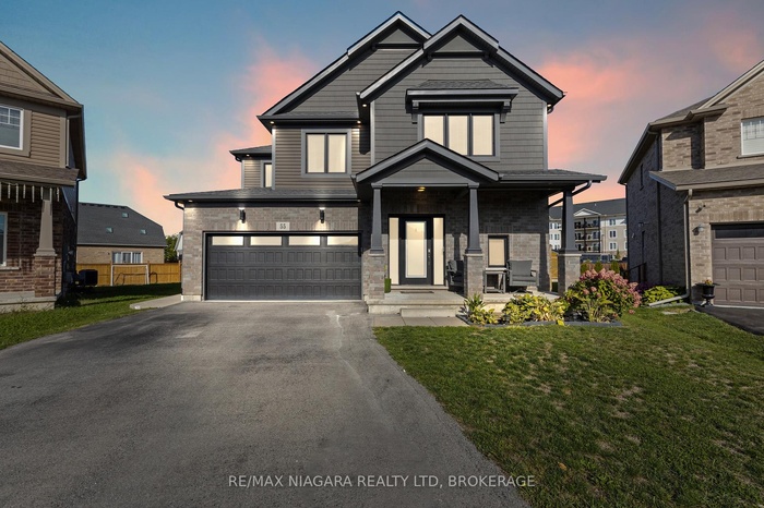DescriptionCustom built in 2017 and upgraded throughout! Welcome to 55 Spruce Crescent, a stunning 4-bedroom, 3-bathroom home set on a pie-shaped lot with an attached double-car garagechecking all the boxes on your wish list. From the moment you arrive, youll be impressed by the curb appeal. Step onto the covered front porch and through the front door, where a large, bright foyer welcomes you inside. The main floor offers an open-concept dining room and kitchen filled with natural light. Elegant details like wainscoting and a feature wall in the dining area set the tone for this thoughtfully designed home. The kitchen is an entertainers dream, featuring an oversized island, quartz countertops, built-in double ovens, a separate cooktop. The kitchen flows seamlessly into the living room, complete with a cozy gas fireplace built in shelves and large patio doors that lead out to your expansive pie-shaped backyard, ideal for family play and entertaining. Also on the main floor: a stylish 2-piece bath, a dedicated office, and a convenient coffee bar. Upstairs, a versatile loft space offers endless possibilities. The primary retreat is a true sanctuary, featuring two walk-in closets and a spa-like 5-piece ensuite with a freestanding tub. Three additional generously sized bedrooms ensure comfort for the whole family, while the second-floor laundry adds everyday convenience. The finished basement expands your living space with a large rec room, storage areas, and a rough-in for either a bar or a 4th bathroom. With a bonus walkout, the basement could easily be transformed into an in-law suite or private living space. Outdoors, the fully fenced backyard has been beautifully landscaped with concrete patios and walkways, creating the perfect setting for gatherings. An oversized shed with its own hydro panel and gas hookup is ready to be transformed into the ultimate workshop or man cave. Located close to parks, schools and a golf course, a true family-friendly neighborhood lifestyle.Amenities- In-Law Capability