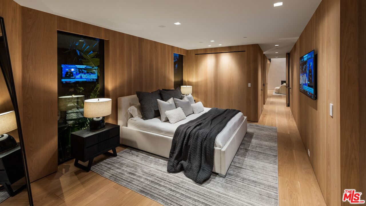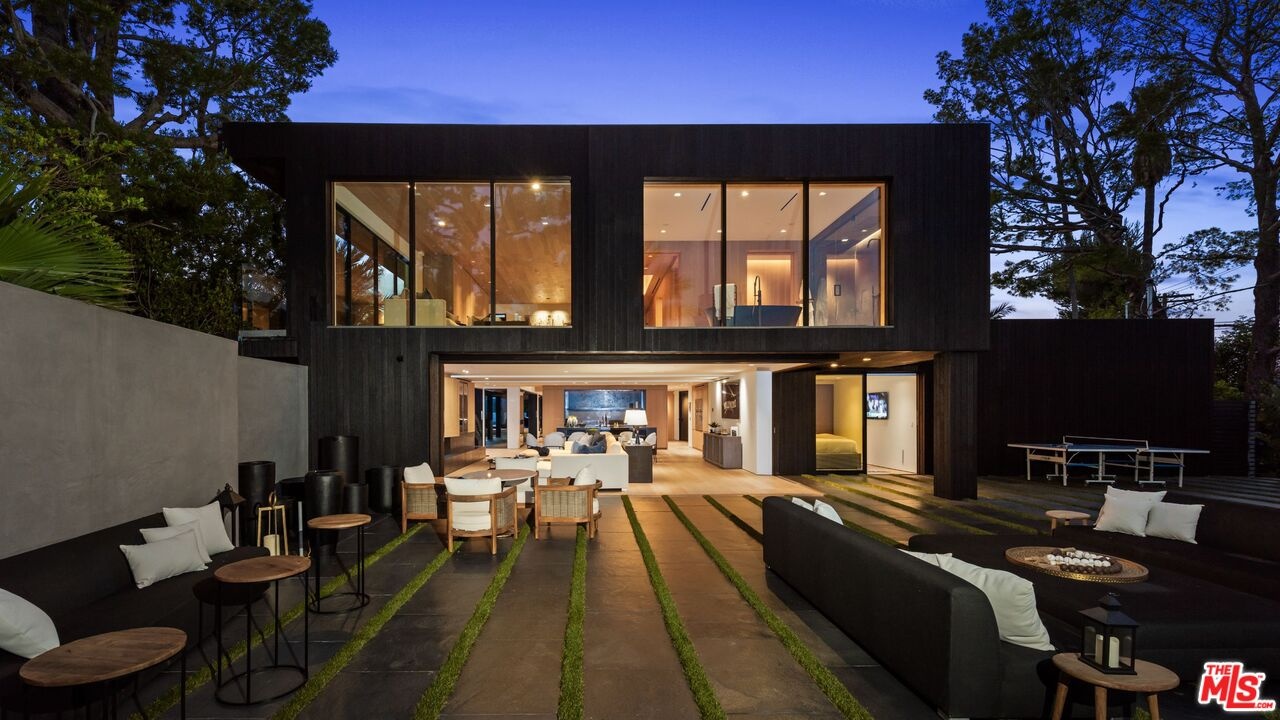 Set on a quiet hillside in Beverly Hills, this Colab House residence captures sweeping views that stretch from the city skyline to the surrounding hills. Gated and surrounded by mature landscaping, the home blends modern design with complete privacy. The main level features soaring ceilings, an open floor plan, and walls of glass that create a seamless connection to the outdoors. The chef's kitchen with high-end appliances opens to the family room, dining area, and bar, making the space ideal for both everyday living and entertaining. Upstairs, the primary suite includes a sitting area, walk-in closet, and spa-like bath with uninterrupted views. A gym, office, and guest suite complete the second floor. The backyard is designed as a private retreat, with a spacious lawn, infinity-edge pool, spa, and sunken fire pitall perfectly positioned to take in stunning sunsets. Fully automated with Savant technology, this home combines modern comfort and striking architecture in one of Beverly Hills' most desirable locations.