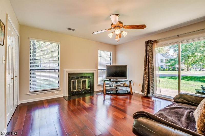 Beautiful NE facing End Unit featuring spacious living room and dining room, EIK opening up to family room with fireplace and sliders leading to patio and garden.