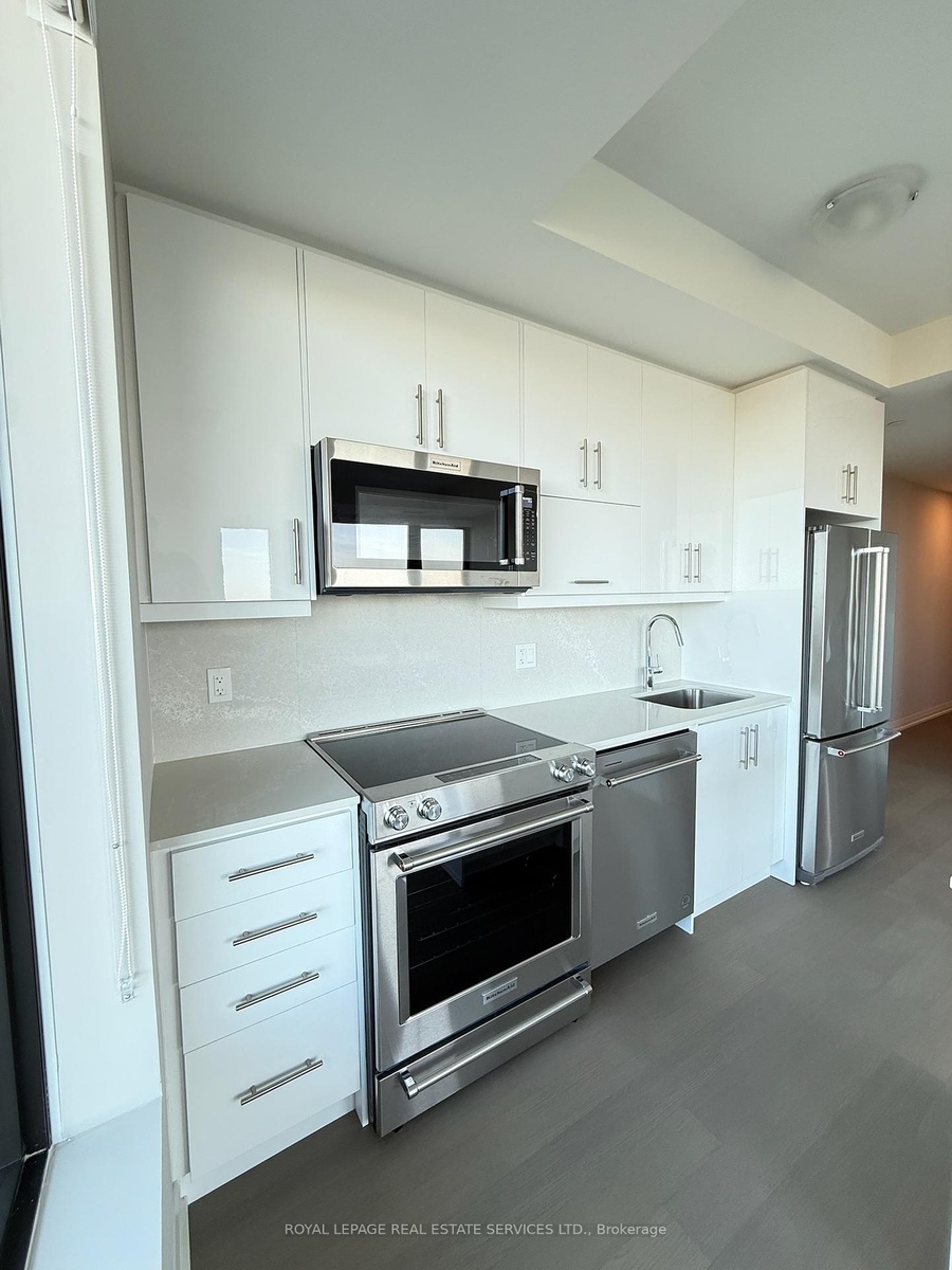 DescriptionSleek Urban Living Meets Oakville Charm. The perfect balance of luxury, lifestyle & location in this brand-new, never-lived-in one-bedroom, one-bathroom suite. 655sqft of interior space + 319sqft wraparound terrace, the ultimate indoor-outdoor flow ideal for relaxing, entertaining, or simply soaking in the beautiful southeast exposure. The open-concept layout is for today's modern homeowner. The Soho Collection kitchen combines style & function with a contemporary island, luxury cabinetry, Caesar stone countertops, a solid-surface backsplash, and a full suite of stainless-steel appliances including a French door refrigerator with ice maker, slide-in range, dishwasher, and micro-hood. The living and dining space is bright and flexible, enhanced by a custom media wall with built-in conduit and TV-ready framing for seamless entertaining. Retreat to your spa-inspired bathroom, featuring a frameless glass super shower with upgraded tile, a Caesar stone vanity, comfort-height cabinetry & premium Moen fixtures. Throughout the home, wide-plank Oak hardwood flooring & upgraded designer finishes reflect quality craftsmanship, while custom window coverings add a final layer of comfort and privacy. Practical touches include your own dedicated EV parking station, ensuring your home is as future-ready as it is stylish. The wraparound terrace becomes an extension of your living room - a place to sip coffee at sunrise, host friends, or enjoy quiet evenings under the open sky. Set in a boutique building with excellent amenities, this home also offers unbeatable access to highways, GO transit, shopping, dining, parks, trails, and top-rated schools. Whether you are a young professional looking for a sleek home base, or a down sizer ready for a lifestyle upgrade, this suite checks all the boxes. Be the first to lease this stunning home - book your private showing today.Amenities- Carpet Free
