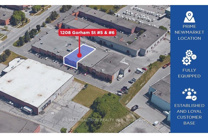 DescriptionExceptional opportunity to acquire a well-established and profitable automotive franchise business (without property) located in the heart of Newmarket's premier industrial corridor. Operating continuously since 2014, the business features a strong brand presence, exclusive referral relationships with two major insurance providers, and a loyal, growing customer base. The 5,594 sq. ft. combined industrial condo (Units 5 & 6) offers 18' clear height, two grade-level drive-in doors, office space, and a partial sprinkler system. The operation benefits from a stable long-term lease with favourable terms. Zoned EG-12, supporting a wide range of permitted uses, and ideally situated with excellent access to Hwy 404, GO Transit, and major arterials. A rare, turn-key investment offering solid operational income, secure tenancy, and long-term growth potential.Amenities- Irregular Lot