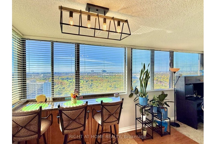DescriptionA "Bungalow in the Sky"! Welcome to this sun-filled 3+1 bedroom, 2 bath corner suite offering 1,300 sq.ft. of living space with spectacular unobstructed south, west and north views, including breathtaking sunsets and the downtown skyline. Comes with (2) Two parking spots! This spacious unit features a smart and functional floor plan with an expansive open-concept living/dining/solarium, granite kitchen counters/backsplash and breakfast area with panoramic windows. Large primary bedroom with walk-in closet and 3-pc ensuite. Ensuite laundry and ample storage. Maintenance fees include all utilities and cable TV. Building amenities: gym, outdoor pool, concierge, party/meeting rooms, games room and sauna. Steps to G. Ross Lord Park, trails, sports fields and TTC at your doorstep with direct access to Finch Station.Virtual Tour: https://www.winsold.com/tour/429196Amenities- Bike Storage