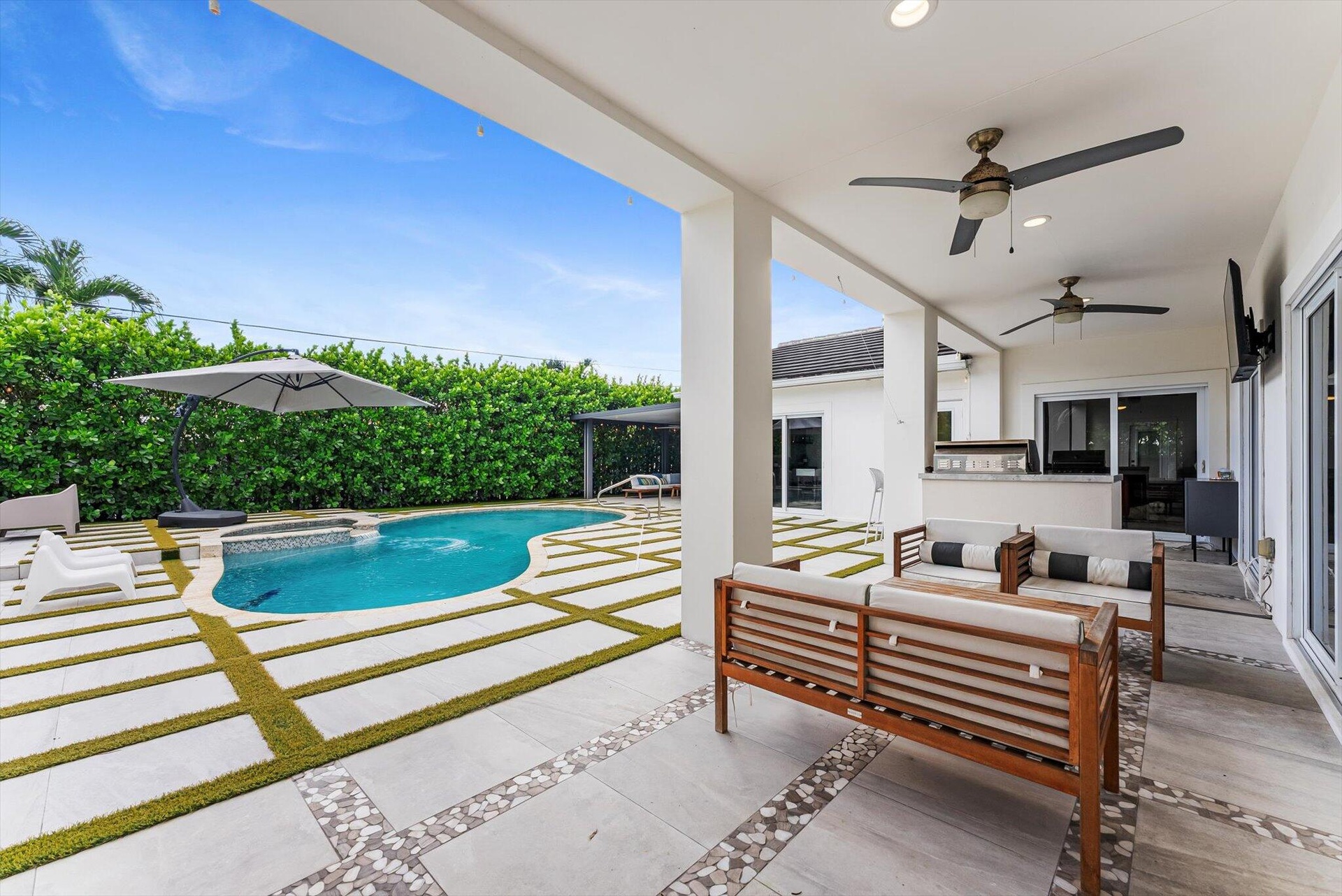 DescriptionStunning 2 Story 5 Bed 5 Bath Luxury Home . This custom-built modern residence showcases the indoor/outdoor Florida lifestyle with a sleek open-concept design and upscale designer finishes throughout. The chef's kitchen features Thermador appliances, an oversized waterfall island, and custom cabinetry. Every space is filled with character and attention to detail. With a total of 4,326 square feet, the home offers spacious living throughout. Outdoor living is elevated with a private front yard sanctuary and a resort-style backyard oasis featuring pool, dining, and lounge areas. Located on a quiet street, this is a rare opportunity to own a modern luxury home in one of Boca Raton's most desirable neighborhoods