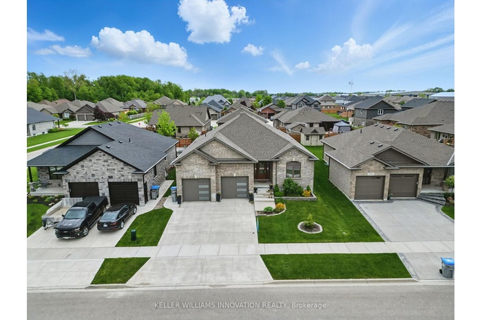 WALK-UP BASEMENT & IN-LAW SUITE POTENTIAL! Welcome to 107 Forbes Crescent, a beautifully maintained 5-bedroom, 3-bathroom brick bungalow offering 1,956 square feet on the main level. This home combines thoughtful design, quality finishes, and flexible living potential ideal for families or multigenerational households. The main floor features a bright, open layout with 12-foot ceilings in the living room, creating an airy and spacious feel and a gas fireplace adds warmth and charm, perfect for relaxing evenings. The kitchen is designed for both style and function, with granite countertops, an oversized eat-in island, and ample cabinetry for storage. The primary bedroom overlooks the backyard and features a stunning tray ceiling, along with a private ensuite that includes double sinks and a walk-in glass shower. Two additional bedrooms, a full bathroom, and a convenient laundry/mudroom complete the main level. The basement, newly finished in 2025, adds over 1,600+ square feet of additional living space. It includes two generously sized bedrooms, a full bathroom, and a large recreation room with walk-up access to the garage. Rough-ins for a kitchen are already in place, providing excellent potential for a future in-law suite or secondary living space. The fully insulated garage has oversized doors and a man door for easy exterior access. The home offers great curb appeal with a landscaped front yard and a double car driveway. Enjoy your morning coffee on the back deck as the sun rises, creating a peaceful start to the day. Located in Listowel, this home offers a strong sense of community, with nearby parks, schools, and trails. Don't miss your opportunity to own this spacious, well-appointed home with in-law suite potential.