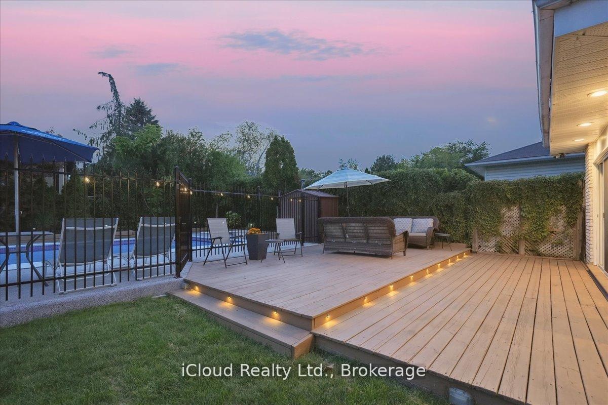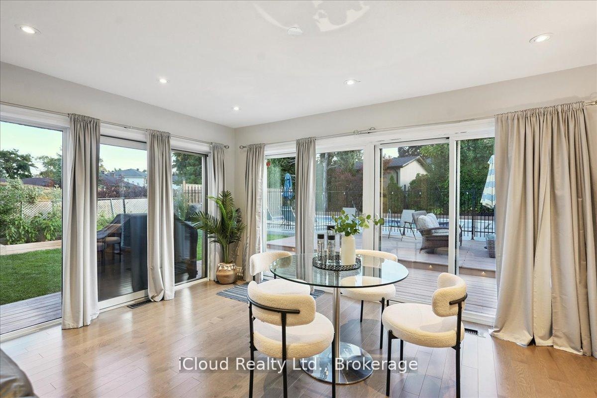 You will love to call this house your home. Detached 1871sq ft above-grade plus a 336 sq ft addition to the family room. Total 2207 sq ft above grade, as per attached floor plans. Located in a quiet, family-friendly neighborhood of Sheridan Homelands, the surroundings include trails, parks, schools, and a community outdoor pool. Short drive to redesigned Sheridan Centre Mall, Erin Mills Auto Centre with every major Dealership, "Churchill Crossing" Shopping complex bordering Oakville, Queen Elizabeth Expressway (QEW). This beautiful, fully renovated house has 4 spacious bedrooms, a 2-car garage, and a grand family room with floor-to-ceiling glass sliding doors on two sides overlooking the spectacular backyard. The fully fenced private resort-like backyard features a 20' x 40' concrete inground pool with a metal-spindle fence facing the house and a large two-tiered deck with built-in lights for entertaining. Built-in entertainment unit in the family room above an elegant electric fireplace. Oak stairs to the second floor with wrought iron spindles, a bay window with a view of the backyard from the dining room. Plenty of pot lights in the living room and dining room, accented by crown molding. A functional kitchen with quartz countertop, ceramic/metallic backsplash, wine rack, soft-close cabinet doors, gas stove, built-in microwave, dishwasher, and a large pantry for extra storage. Entrance to the garage from within. Monitored home security alarm system. Offers to be reviewed any time.