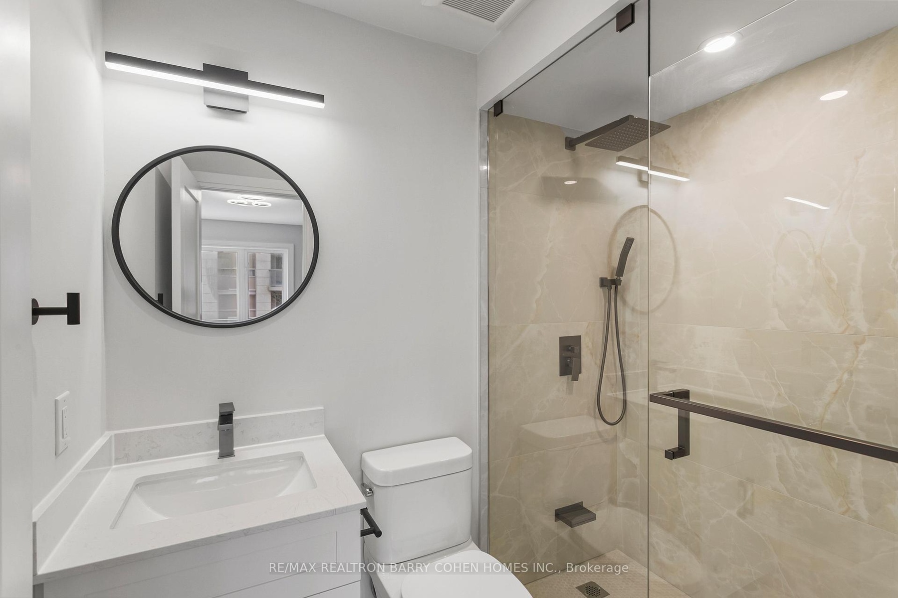Just Completed!! Tastefully Renovated 4-Bedroom Townhome in Sought-After Commerce Valley! This Rare, Functional Layout Is Ideal for Modern and Multi-Generational Living. Never Lived In Since Full Top-to-Bottom Renovation. Bright, Airy Interior with 9' Ceilings, Oversized Windows, and Wide-Plank Water-Resistant Flooring Throughout. Sleek High-Gloss Kitchen Featuring 36x36 Porcelain Tiles, Tall Cabinets, Premium Caesarstone Counters & Backsplash, Gunmetal Double Sink, and Samsung S/S Appliances. Designer Bathrooms with 24x32 Porcelain Tiles, Custom Vanities, Gunmetal Fixtures, and High-End Finishes. Two Spacious Primary Suites on the Upper Level, Each with His & Hers Closets and 4-Pc Ensuites. Main Floor Features a Great Room and Additional Bedroom with 4-Pc Bath Access & Walk-Out. Finished Basement with Direct Access to Underground Garage. Additional Features Include Upgraded Central Vac, Remote-Controlled Lighting, New 1-Panel Doors with Black Hardware, and Modern Metal Stair Pickets. Low Monthly Maintenance Covers Water, Lawn Care, Snow Removal, Roof & Window Maintenance. Prime Location Near Hwy 404/407, GO Station, Parks, Shopping, Dining & Top-Ranked Schools. Move-In Ready A Must-See!