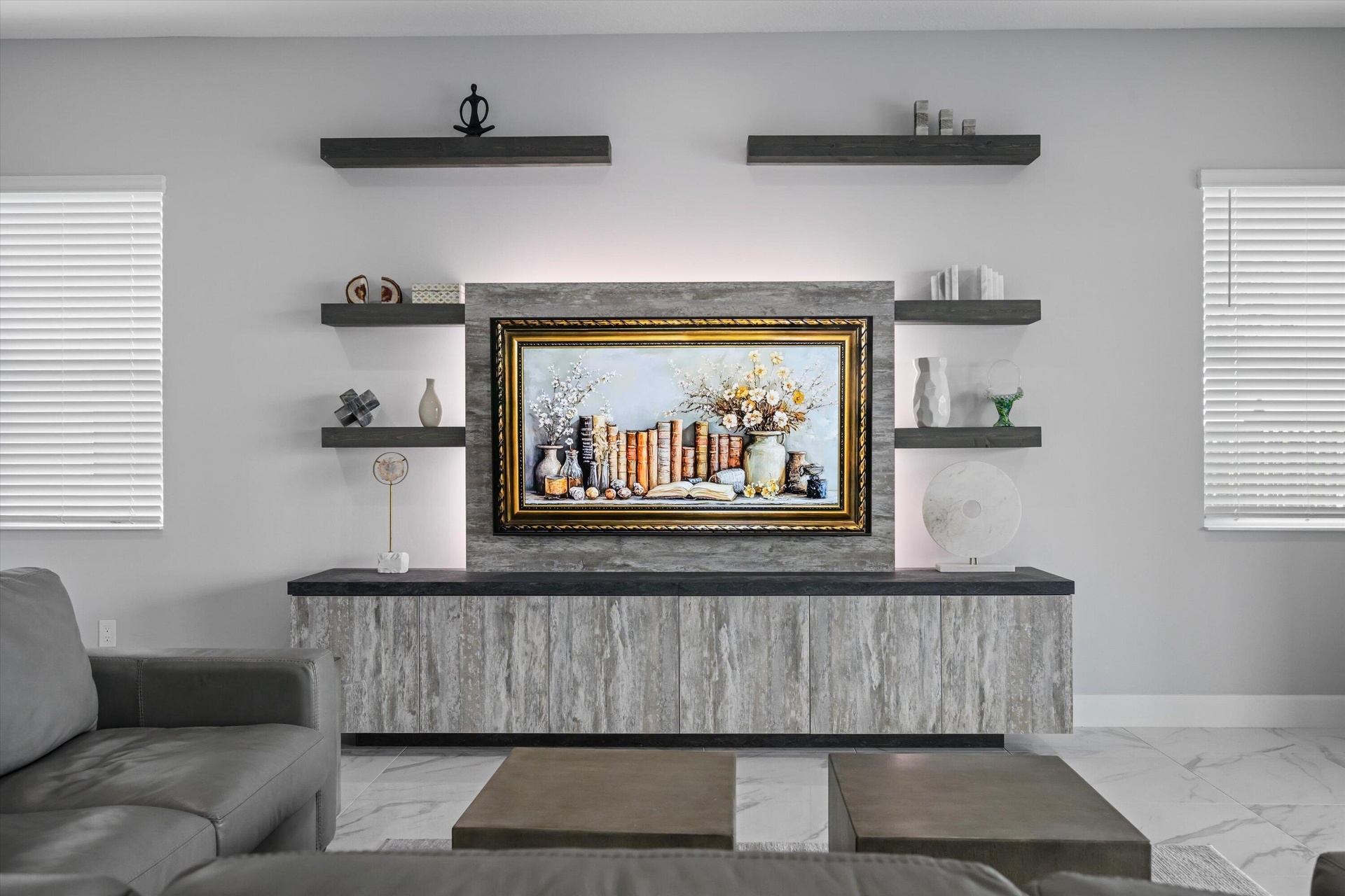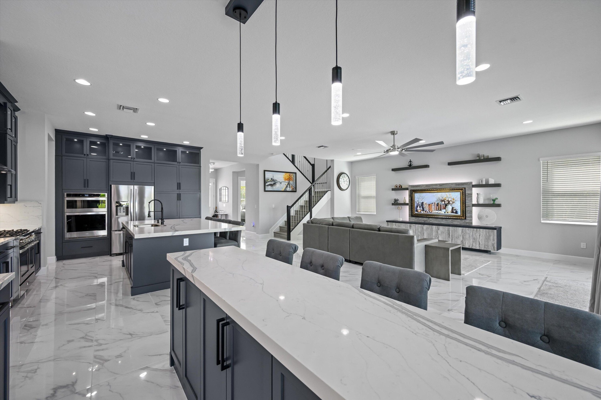 DescriptionExperience luxury living in this rare, fully furnished Tanager model located in the highly sought-after Orchards of Westlake. This expansive 6-bedroom, 4.5-bath, 4-car garage waterfront residence offers over 5,300 total sq. ft. and shows like a designer model--move-in ready and complete with curated furnishings, artwork, and decor.The gourmet kitchen impresses with a massive island, quartz backsplash, stacked cabinetry, under-cabinet lighting, and premium stainless-steel appliances, including a gas range with hood and three ovens. Spacious living areas include a formal dining room with raindrop chandelier, two dedicated offices, a custom bar with double wine fridge, a coffee station, an upstairs loft, game room, and fitness room.