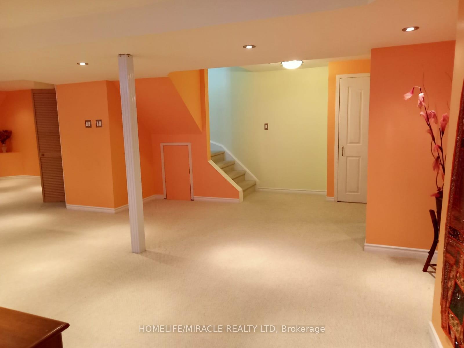 Welcome to your dream home! Luxurious full brick detached home in a high demand area, this beautifully maintained home sitting on a spacious 3 side open corner lot with eye catching curb appeal in one of Markham's most sought-after communities. All over Crown moldings on ground floor with 9ft. ceilings, Featuring gleaming hardwood floors, a bright family room with large windows allowing natural light to flood in and a cozy gas fireplace, open concept kitchen, perfect for year-round cooking and entertaining. Upstairs boasts 4 generous sized bedrooms with a Walk-in closet in the master, The finished basement offers a large rec room, area for a wet Bar, a full bath ideal for extended family or guests. Enjoy Approx. 2800 ft. of combined living space, stunning lush green backyard, ample parking space with eye catching Stonework done the long driveway fits in 2+4 car parking's & lots of storage space, huge cold room with Built in shelves. Recent Upgrades: Owned Furnace 2024 , Owned Hot Water Tank (2024), High Capacity Owned AC, New Fridge/ Stove & GDO & 2 Remote Openers & Pot Lights wrapped around the house . No rentals/contracts at all, An excellent lifestyle & location of this incredible property. Steps to Top Schools/Colleges, Aanin Library, TTC, Go Station. Shopping, Walmart, Costco, Places of Worship, Hwy 401/407 etc. A rare opportunity you don't want to miss!!.