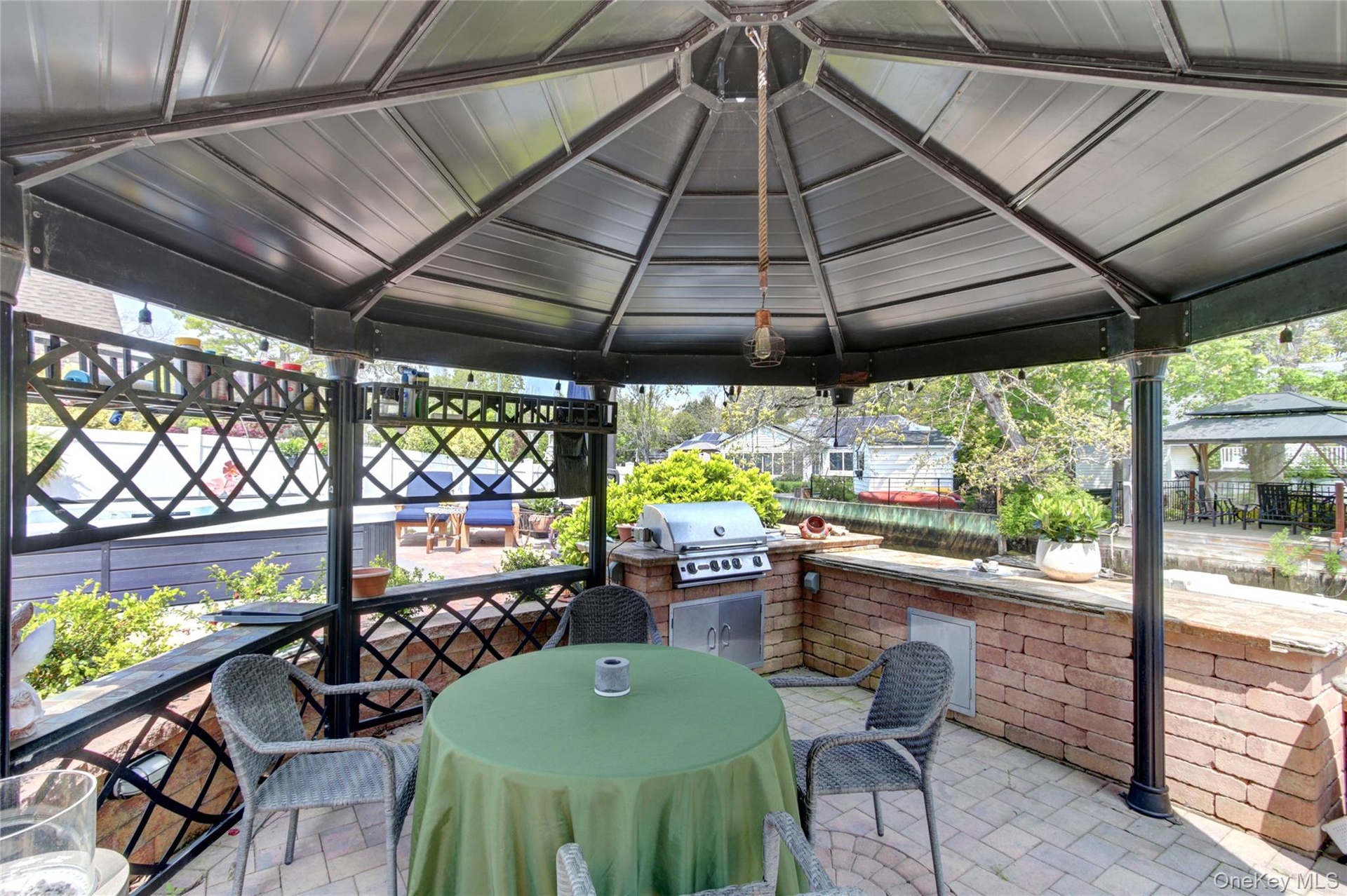The backyard is ideal for entertaining with multiple patios and decks, a jetted spa, and an outdoor kitchen. Solar panels help keep electric bills lower, and a Tesla charger adds modern convenience.