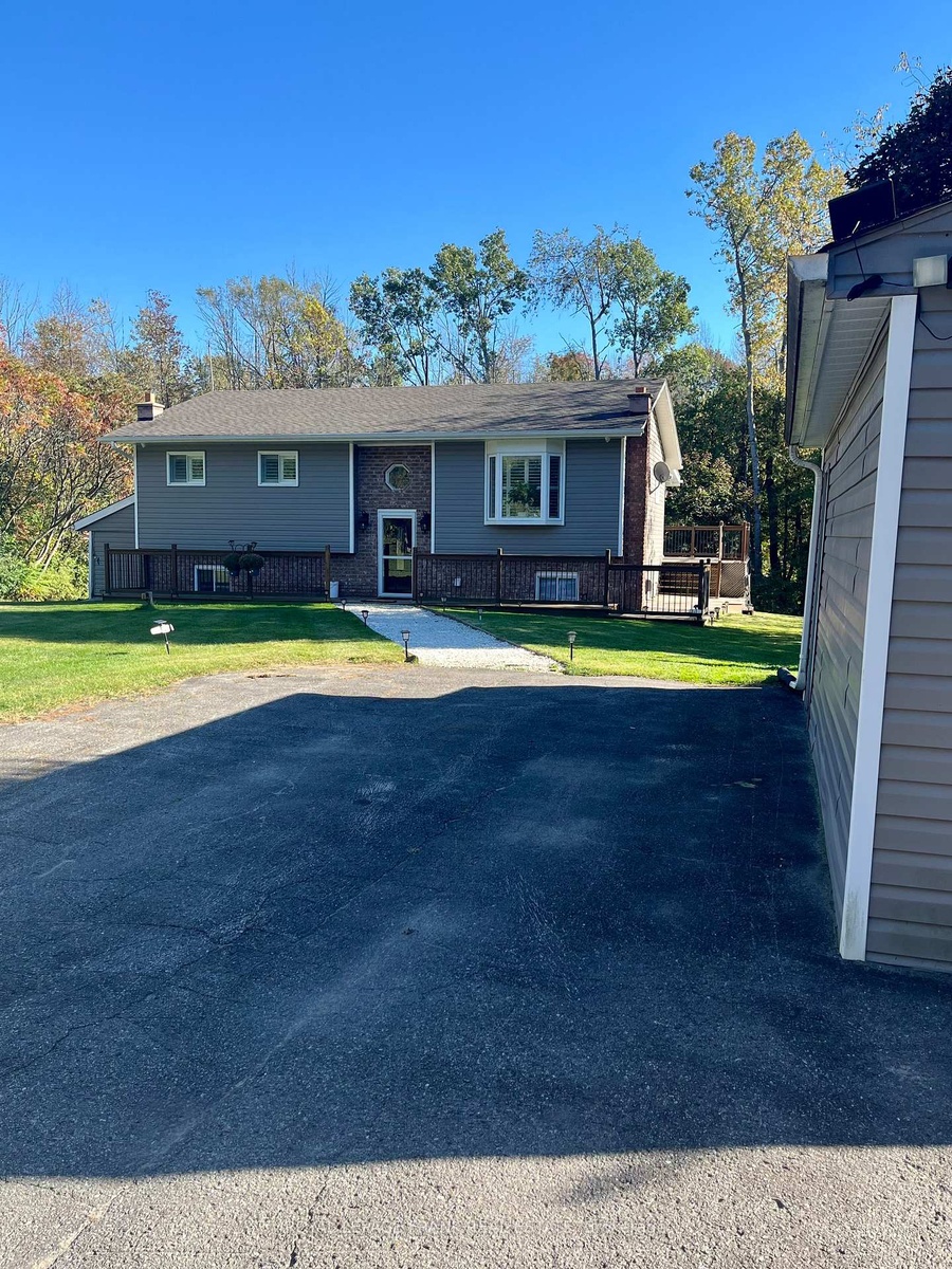 Newly renovated from top to bottom, this move in ready home offers modern finishes, energy efficiency, and flexible living space. The bright and open layout features an updated kitchen with modern fixtures, seamlessly connected to the dining and living areas. A four-season sunroom with a striking floor-to-ceiling propane fireplace and vaulted ceilings provides the perfect space for year-round enjoyment. The fully finished basement is ideal for in-law living, complete with its own kitchen, two bedrooms, a full bathroom, and private living space. Notable upgrades include a heat pump for efficient heating and cooling, hot water on demand, and a durable asphalt shingle roof (2021). The wired garage offers an excellent workspace, while additional side storage provides plenty of room for recreational equipment. Step outside to a large wrap around deck overlooking a backyard that backs onto a peaceful creek, an inviting retreat offering both privacy and natural setting. This property combines the appeal of a modern renovation with thoughtful design, making it well suited for multi-generational living or rental potential.