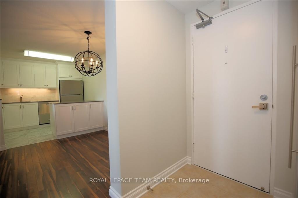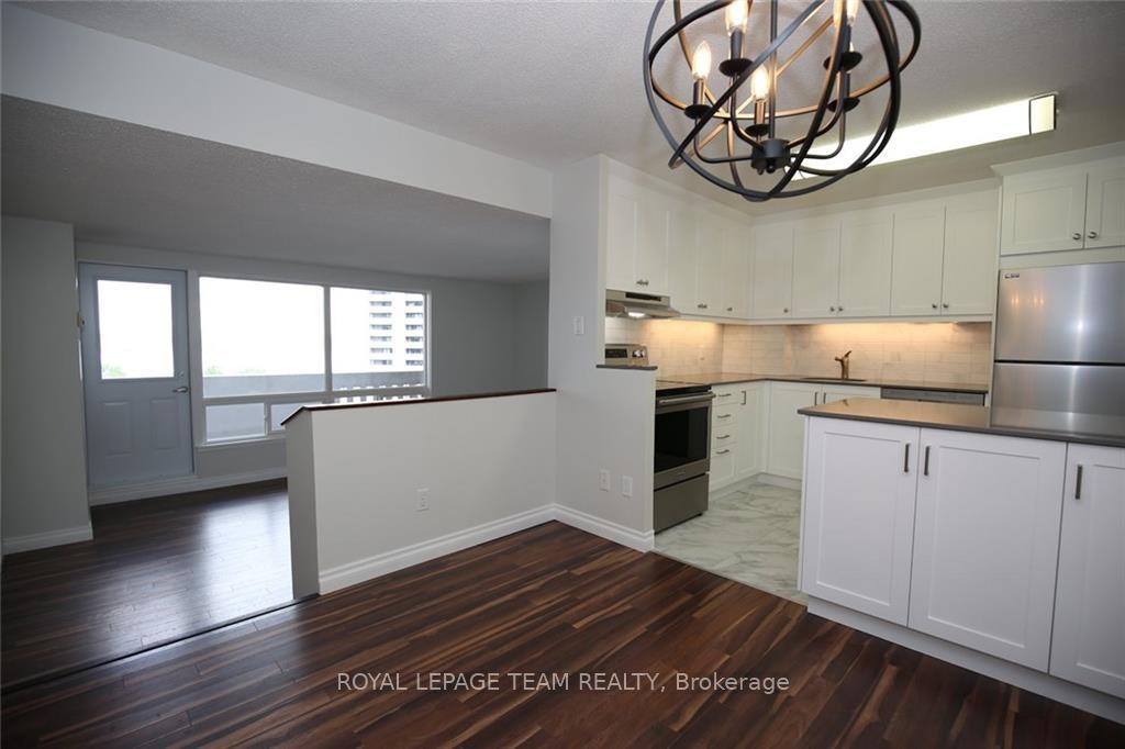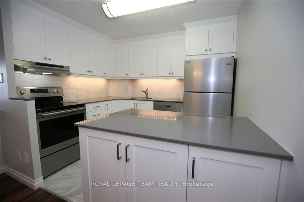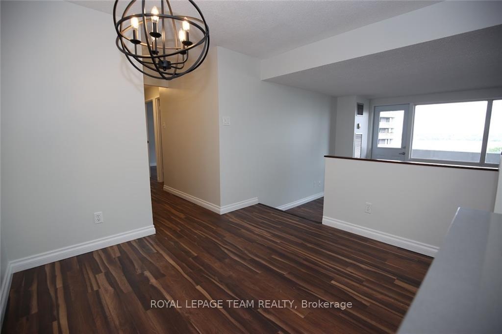 Fantastic move-in ready renovated 2 bedroom apartment with modern finishes & a private balcony with views of the Ottawa River & Gatineau Hills. Well maintained building, walking distance to shopping recreation & public transportation & a few steps to walking paths along the River. Updates include flooring, neutral paint, light fixtures. Upgraded kitchen features quartz countertops, ceramic backsplash, under cabinetry lighting, tile floors & updated stainless steel appliances. Open concept kitchen/dining area with island w/extra storage & views of living rm & Ottawa River. Living area has large windows & door to balcony with amazing views. Full bathroom with updated vanity w/granite counter, mirror, light fixture & tub/shower combination. Two spacious bedrooms with sizeable double closets & good sized windows. Handy deep storage closet. Parking space & locker included. Utilities included (heat, air conditioning, hydro, water) in rent (except for phone/internet/cable being paid by the tenant). Amenities include gym, outdoor pool, party room, sauna, guest suites, workshop, bicycle storage room. Note pictures from before tenant moved in.