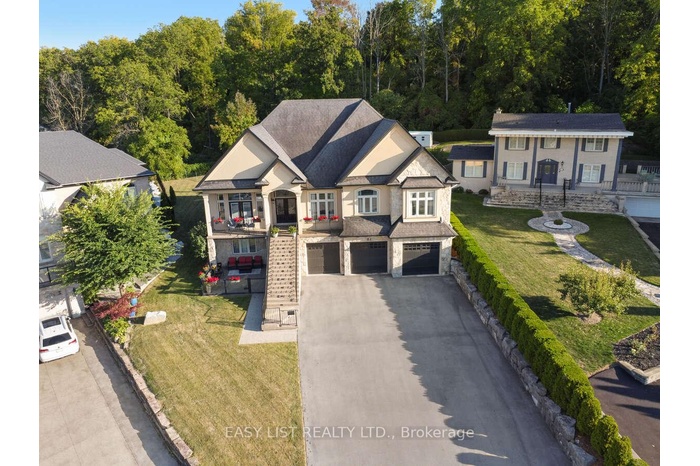 For more info on this property, please click the Brochure button. This custom-built multi-generational luxury home offers the perfect blend of city living and cottage-like tranquility, backing directly onto the escarpment for unparalleled privacy and natural beauty. With a spacious 3-car garage and room for up to 9 additional vehicles in the driveway, its ideal for large families or entertaining guests. The grade-level separate entrance leads to a beautifully finished lower level with in-law suite potential, a private terrace and radiant in-floor heating throughout. Upstairs, the home features coffered ceiling in the primary bedroom, dining room, and a versatile room that can serve as a fourth bedroom or home office. Designed with entertaining in mind, the open-concept luxury kitchen flows seamlessly into the vaulted-ceiling family room, filled with natural light from large windows. The kitchen boasts high-end appliances including a double oven, Dacor gas cooktop, Miele steam oven, garburator, dishwasher and wine cooler. A walk-in pantry with plumbing rough-in offers potential for a second sink. Outside, the premium -sized lot is a blank canvas, ready for your dream oasis to come to life. Located just 45 minutes from both Toronto and Niagara Falls, this exceptional property is close to a new GO Station, shopping, wineries, walking trails, a marina, beach, water park and vibrant waterfront dining. Families will appreciate nearby Catholic, Public, and French Immersion schools, along with two high schools and a college focused on skilled trades and apprenticeships. This home truly combines luxury, location, and lifestyle.