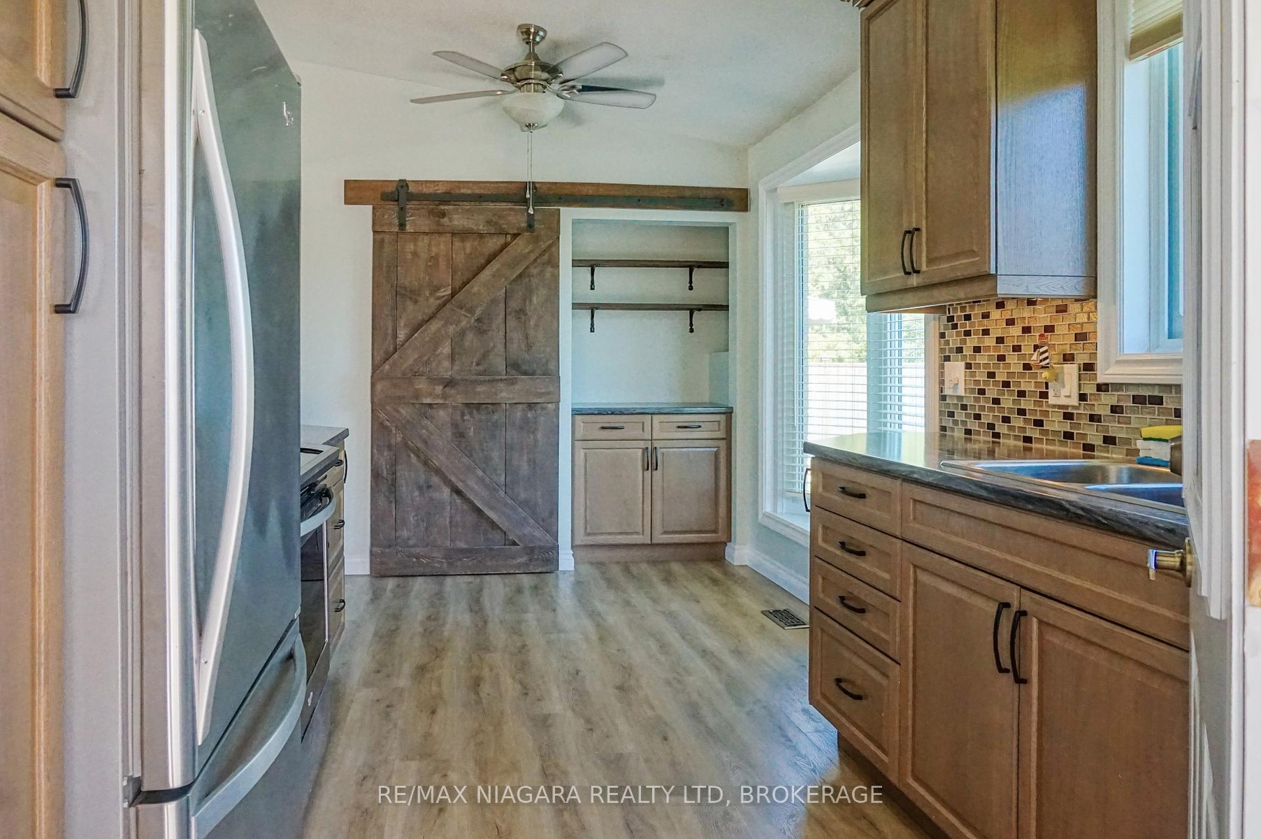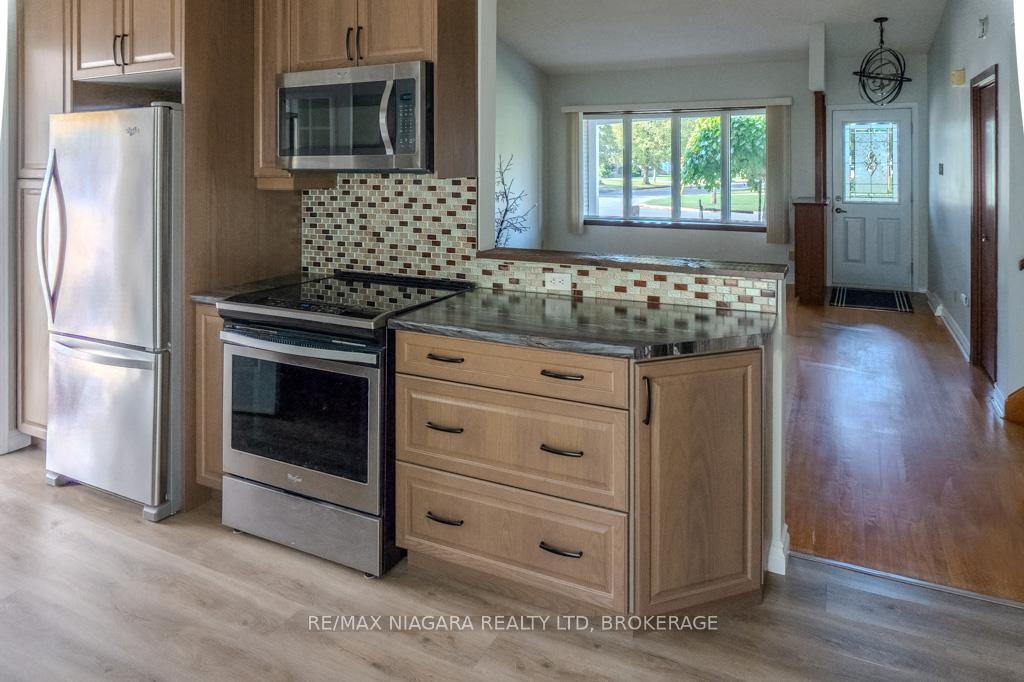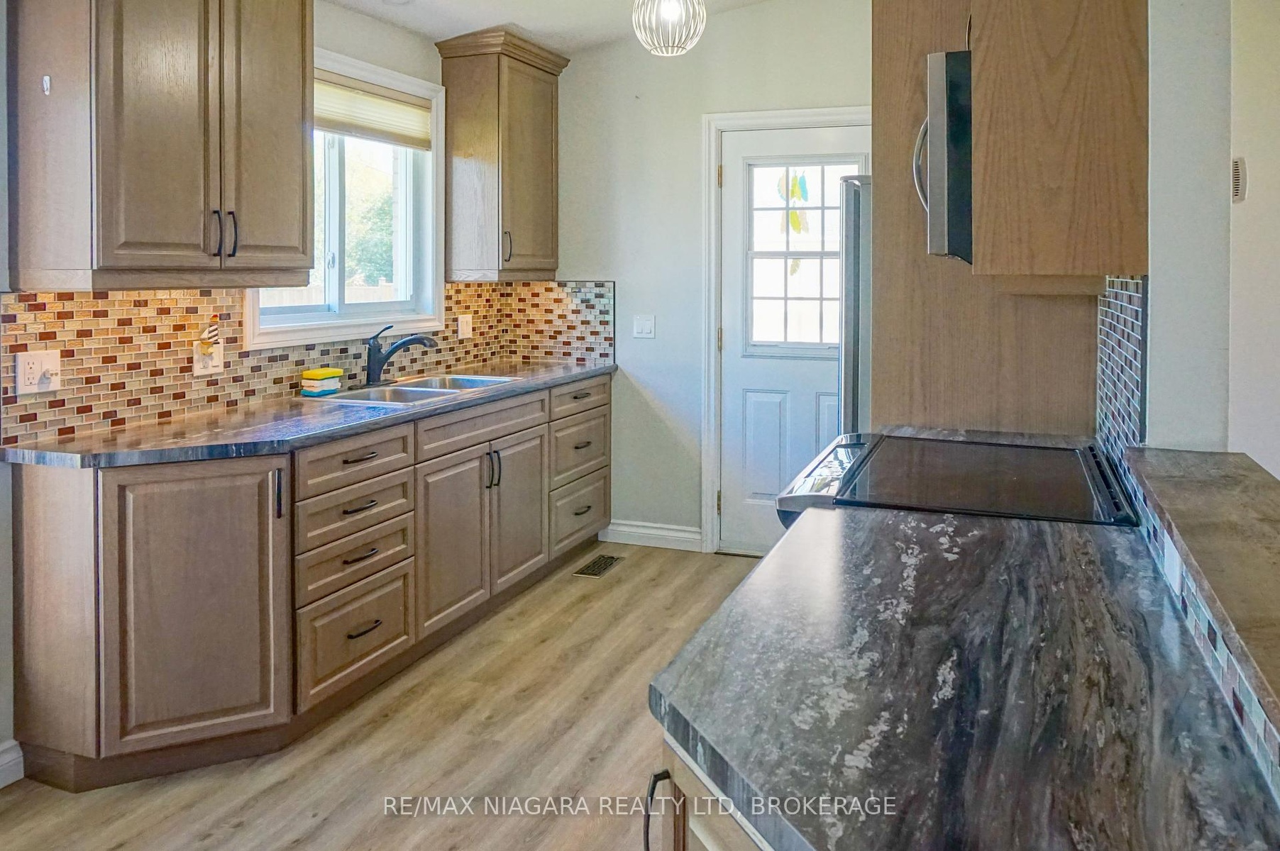 Spacious 4 level side split with garage located on a quiet street in Chippawa. Beautifully remodeled kitchen with walkout to the enclosed patio. Hardwood flooring on the main and upper level. Lower level features a finished rec room with wood stove, laundry/3 pc bath combo, and a separate entrance providing potential for an in law apartment. The 50x190 lot provides an awesome backyard. Immediate/flexible possession available.
