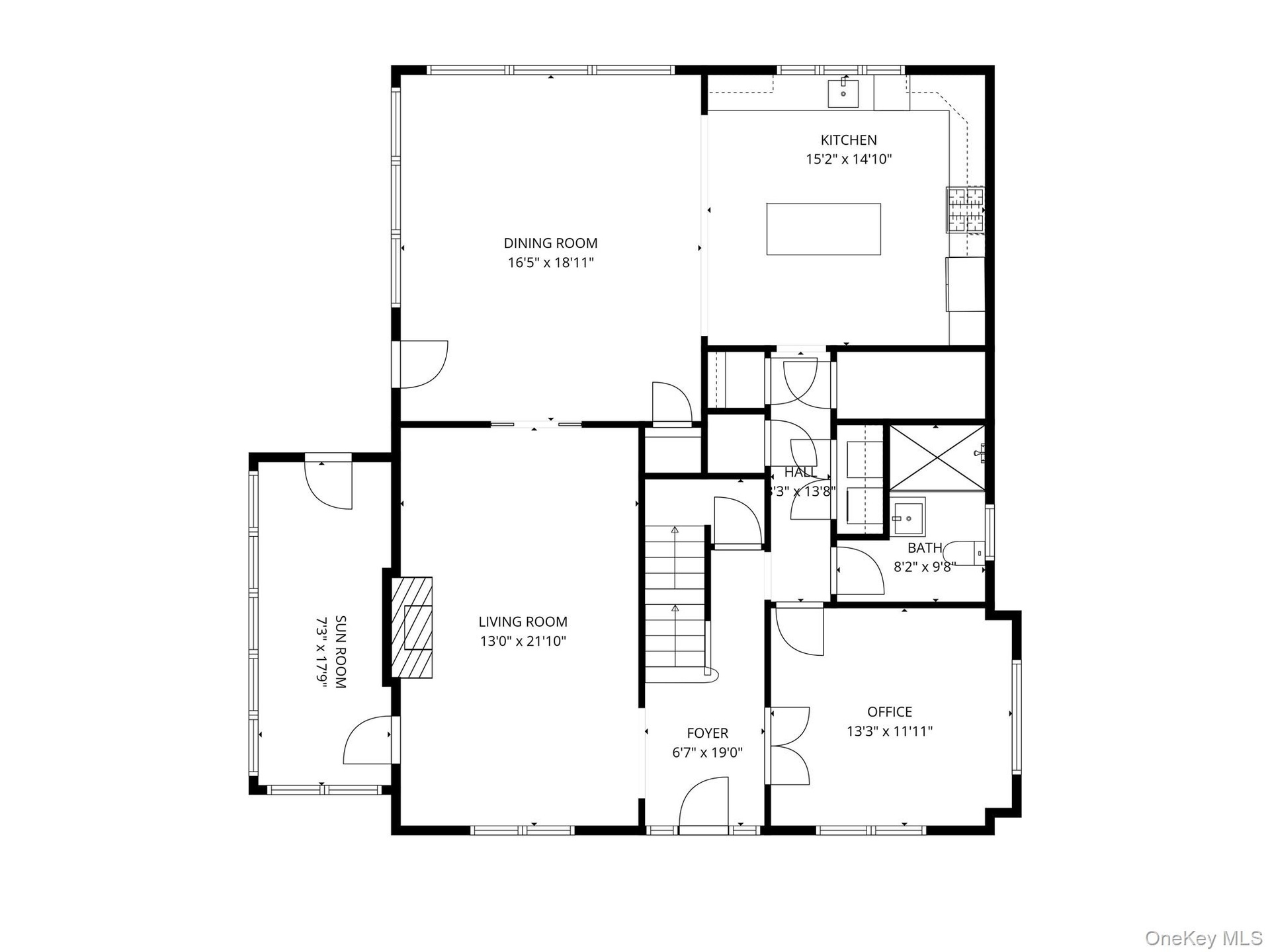 Just off the living room, enjoy a sun-filled sunroom—an ideal spot for morning coffee or quiet relaxation. A private home office, enhanced with rich paneled walls and a stylish door, creates a warm and professional space to work from home.