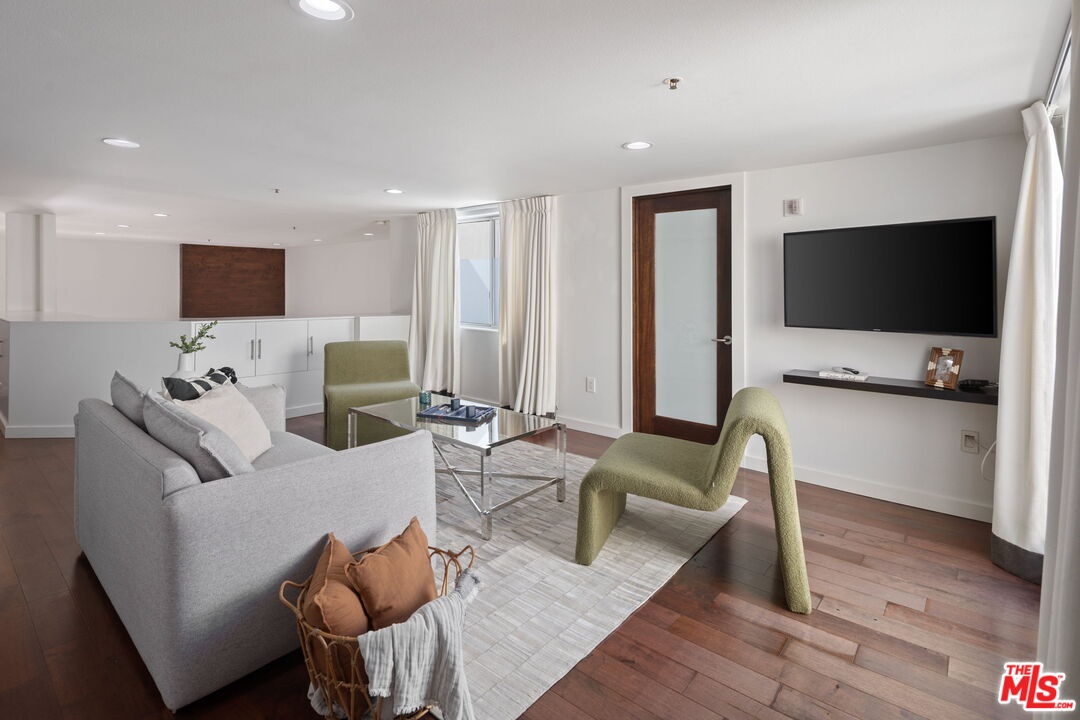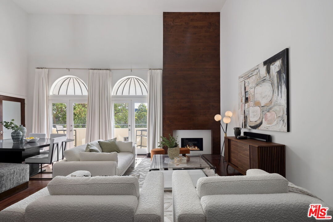 Penthouse with Soaring Ceilings & Exceptional Outdoor Space! Welcome to this Stunning Front Corner 2BR bedroom plus Loft/3rd Bedroom penthouse offering over 2,000 square feet of thoughtfully designed living space, dramatic cathedral ceilings, and beautiful hardwood floors throughout. Bathed in natural light from oversized windows, the expansive open concept living and dining area flows seamlessly to a private patio, perfect for indoor-outdoor entertaining. The kitchen is ideal for hosting or everyday living, while the soaring ceilings add volume and elegance to the space. The versatile loft/third bedroom En-suite doubles as a built-in office area and opens to its own private terrace, providing the ideal work-from-home setup or a peaceful retreat. The primary suite offers generous proportions, ample walk-in closet, and private balcony for a serene atmosphere. Located in a prime Brentwood neighborhood, this penthouse combines luxury, function, and location in one exceptional package. Laundry inside and 2 Car S/S Parking. Low HOA Dues. Close to Restaurants and Grocery.