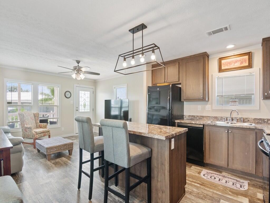 DescriptionThis is the one! Fully furnished 2-bedroom, 2-bath home built in 2020, located in the peaceful 55+ community of Sandhill Shores. Featuring a bright, open floor plan with a modern farmhouse style, this home blends comfort and charm.Monthly land lease is $730.Residents enjoy a welcoming atmosphere with amenities that include a clubhouse, pool, shuffleboard, putting green, billiards, fitness room, and a full calendar of social activities to stay active year-round. Buyer to verify all measurements.