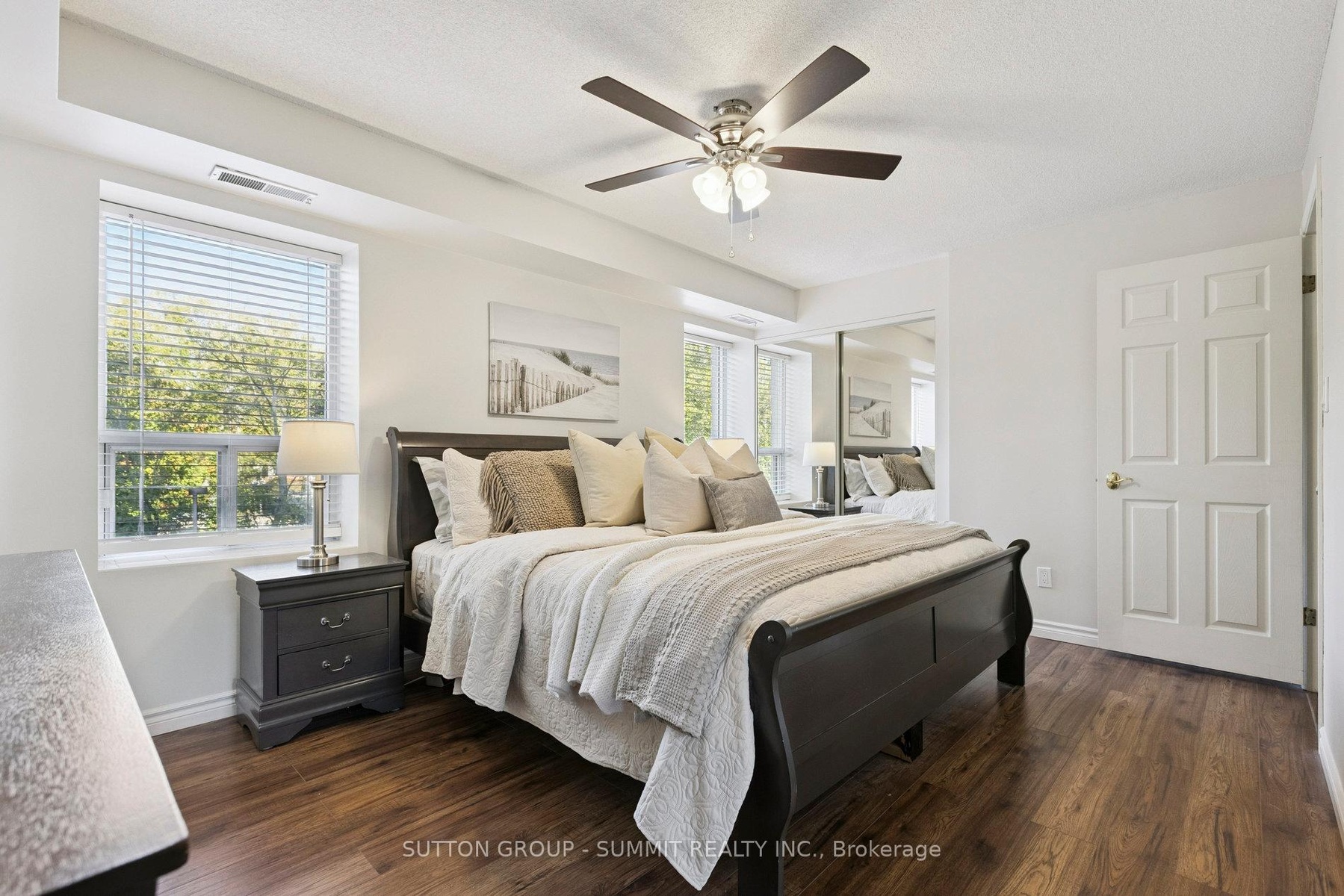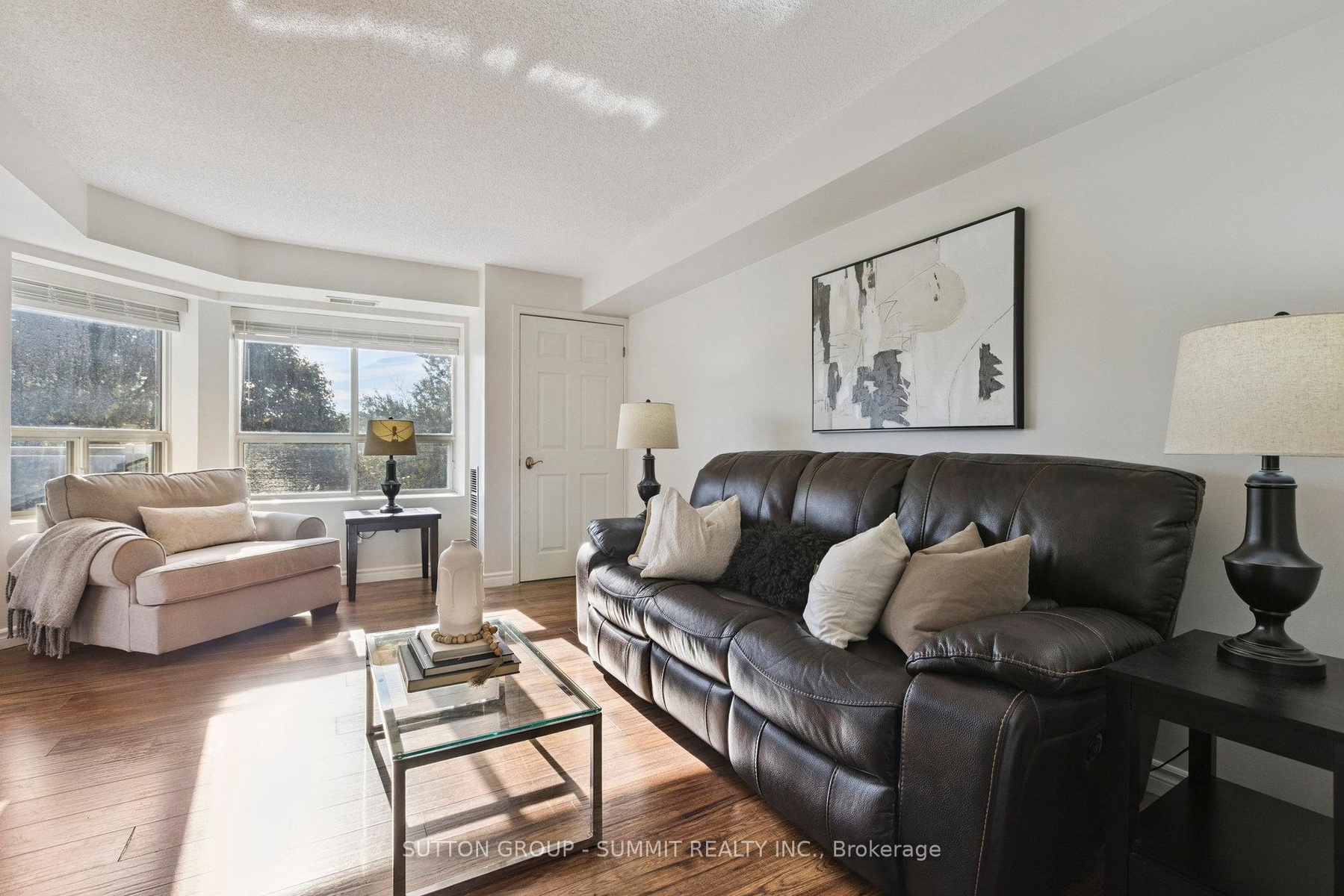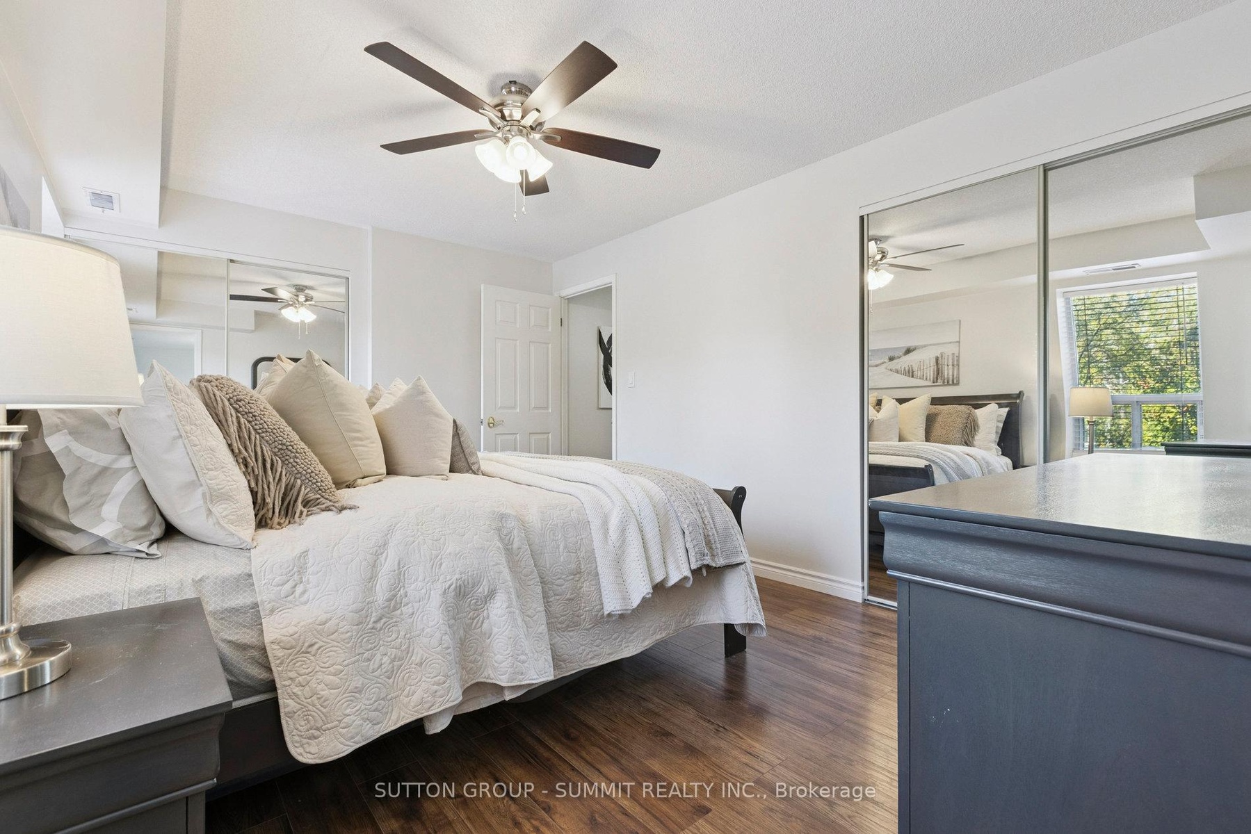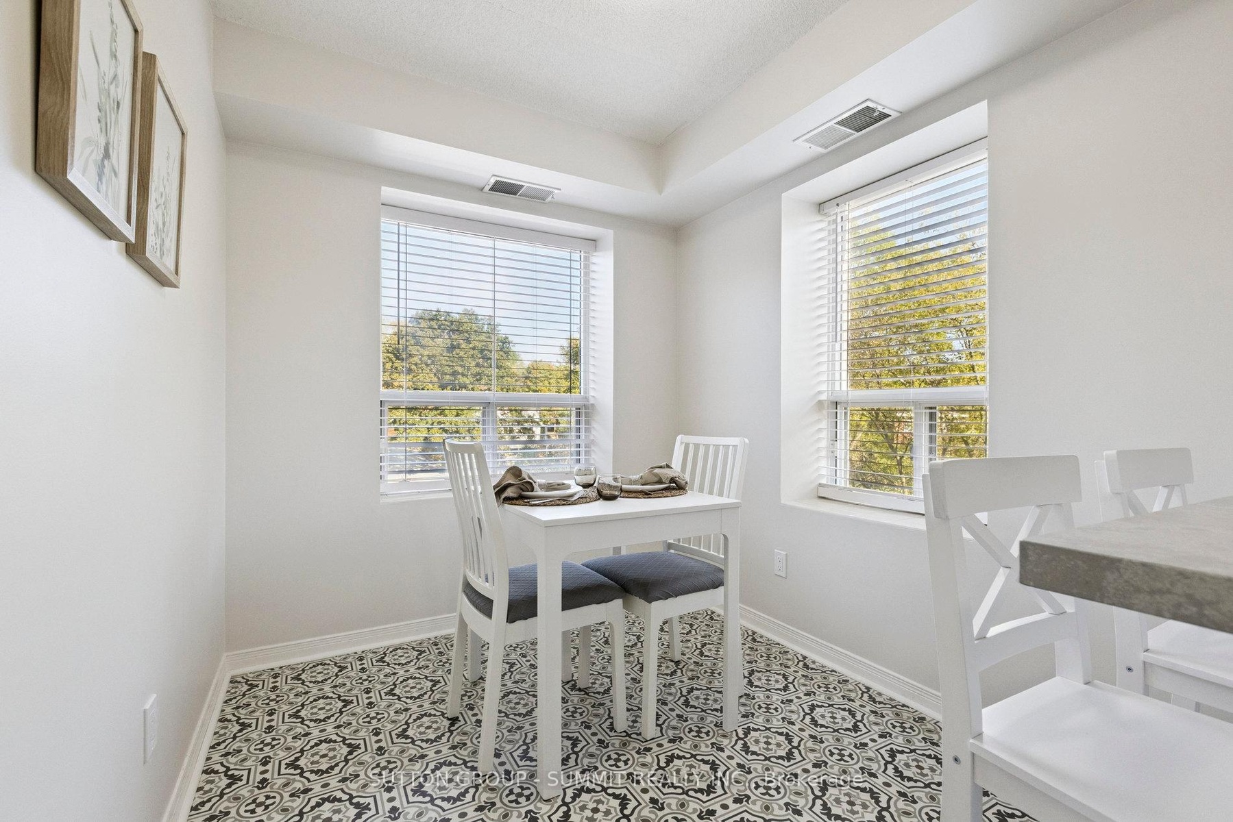 Welcome to this gorgeous renovated corner unit, 2+1 bedroom, 2 bathroom suite at the highly sought-after Parkview Terrace. Offering Over 1,200 sq. ft. of bright boutique-style living, this spacious home is set within one of Guelph's most charming low-rise condominiums. With only four suites per floor, residents enjoy exceptional privacy and a strong sense of community. A welcoming foyer with a large double closet sets the tone for this professionally renovated home. Painted throughout in a soft neutral enhances the home's bright, open, airy flow. The sunlit primary bedroom features 2 large windows, 2 generous closets, a private 4 piece ensuite with a tub/shower, and a large vanity. The second bedroom offers ample space and natural light, with easy access to a newly upgraded second bath, showcasing a modern tiled shower, new vanity plus a pocket door to a storage room. The stunning new kitchen is designed for both form and function, complete with modern cabinetry, stainless steel appliances, breakfast bar, gorgeous quartz counters and seamless quartz backsplash, plus an eat-in dining area. In-suite laundry is conveniently tucked away. The living and dining area offers a perfect space for families or those who love to entertain. The private office/den with pocket doors creates an ideal quiet space or 3rd bedroom, a rare 2+1 find. The abundance of windows flood the home with natural light all day. This corner unit offers 2 beautiful exposures with morning and evening sun and a private balcony with a peaceful, tree surrounding. Additional highlights include a sauna, gym and party room. Ideally located close to Hwy's and minutes from downtown Guelph's vibrant cafes, shops, farmers' market, restaurants, trails, and dog parks, with easy access to the Hanlon Expressway, this home offers an exceptional blend of comfort, space, and convenience.