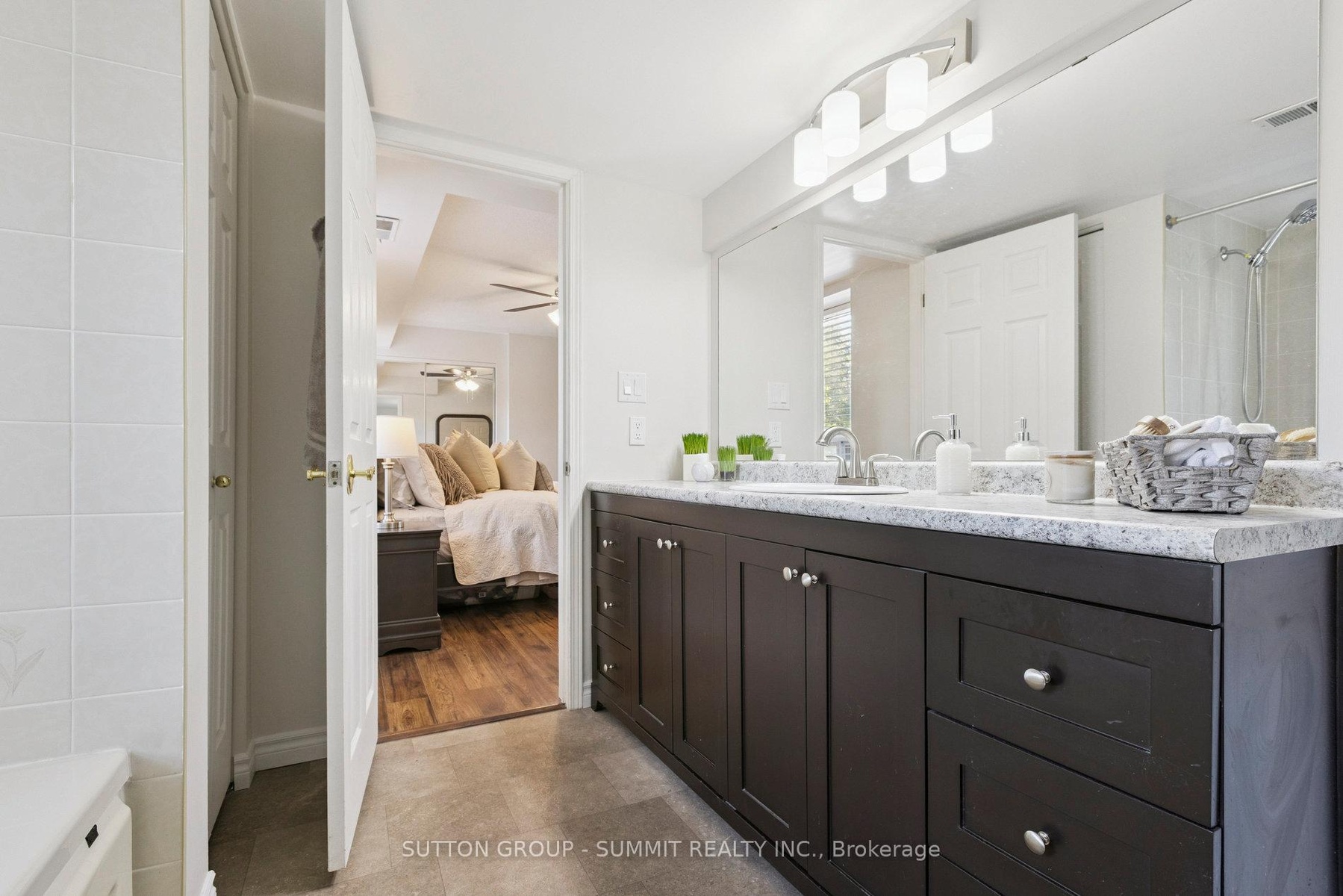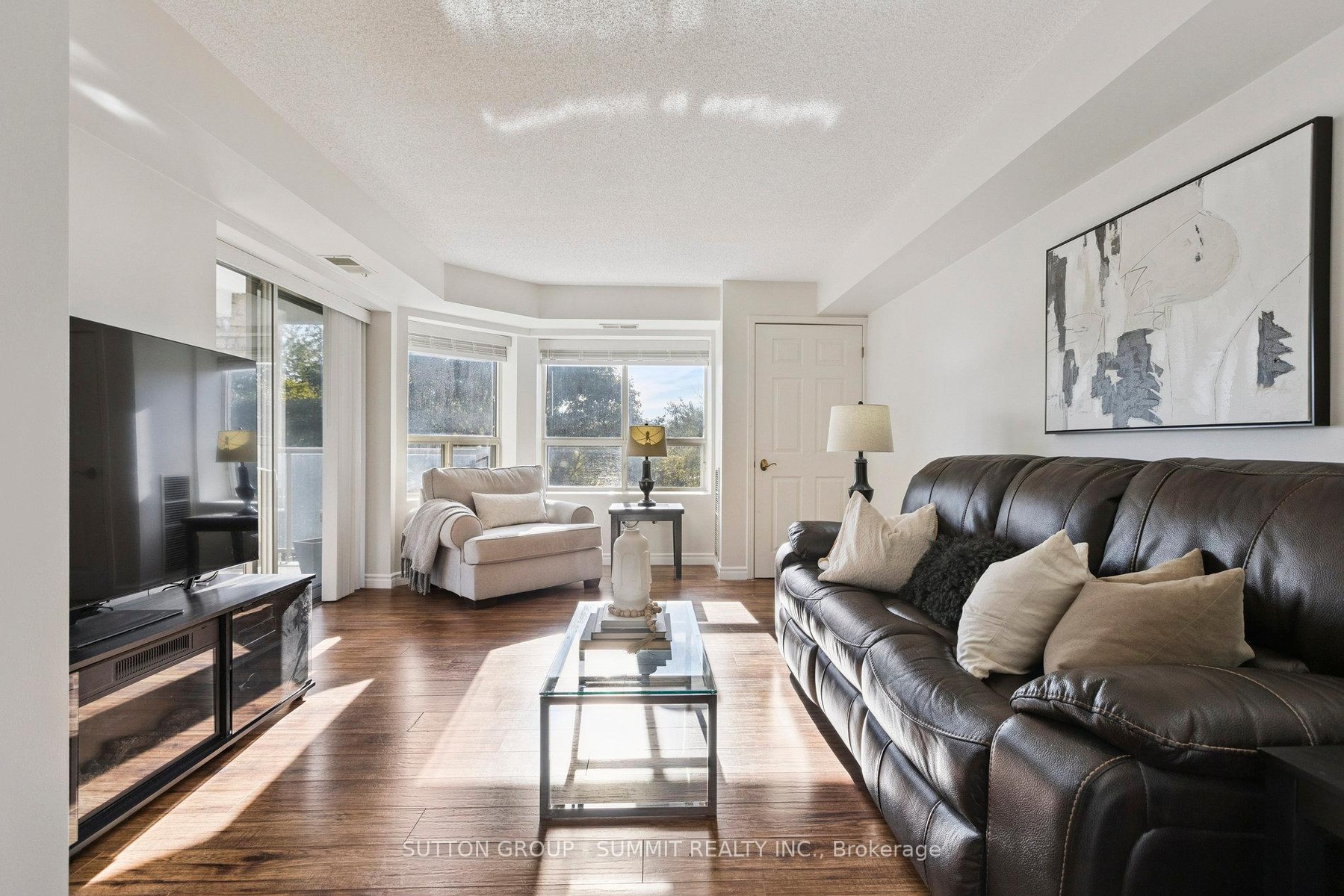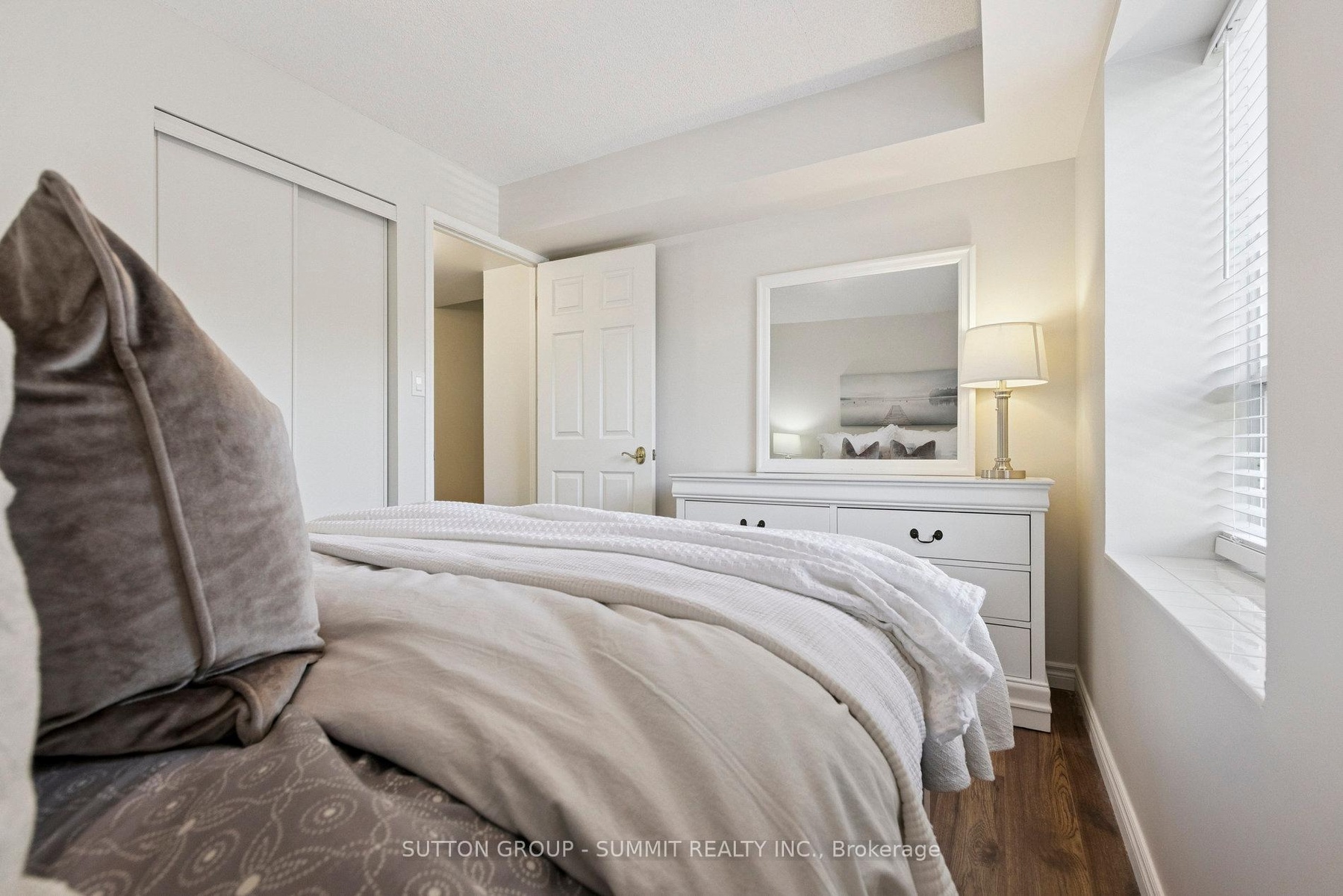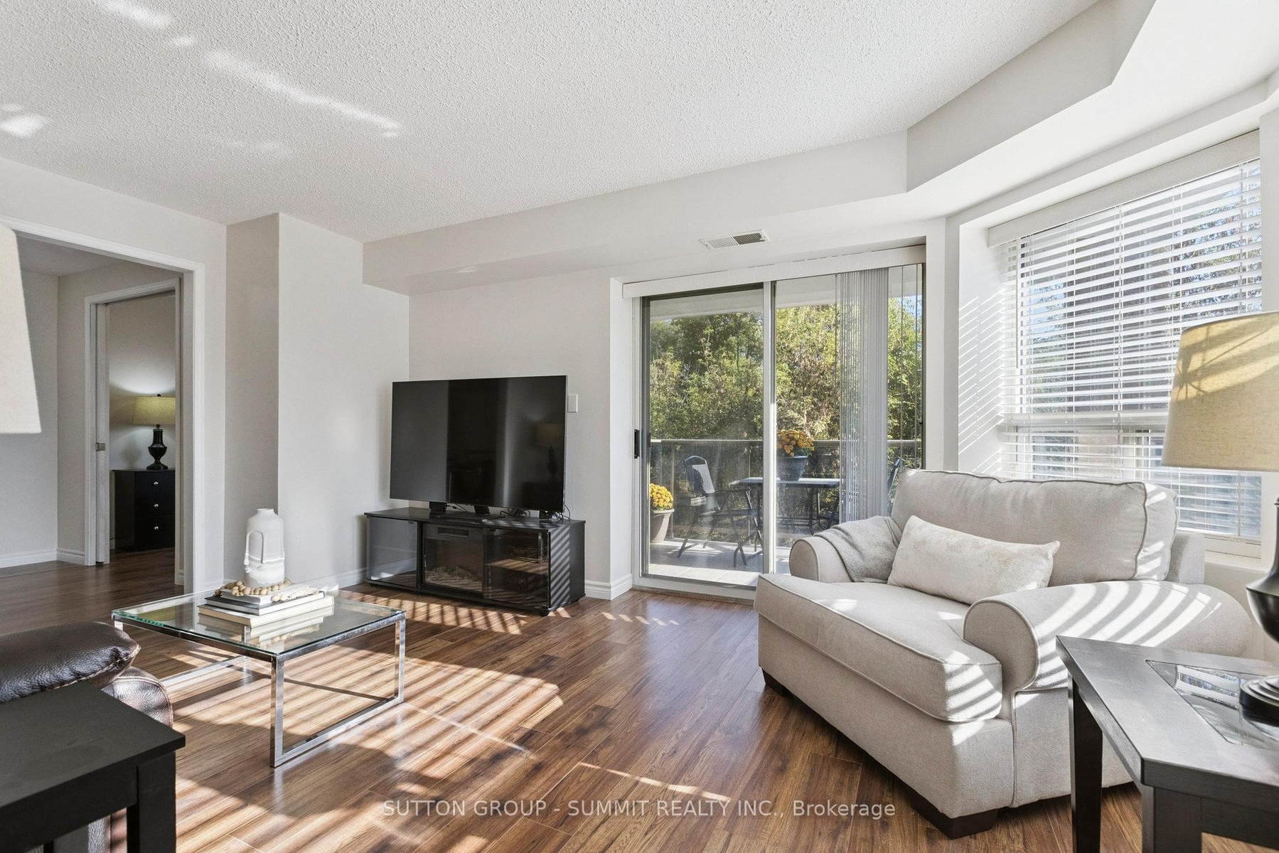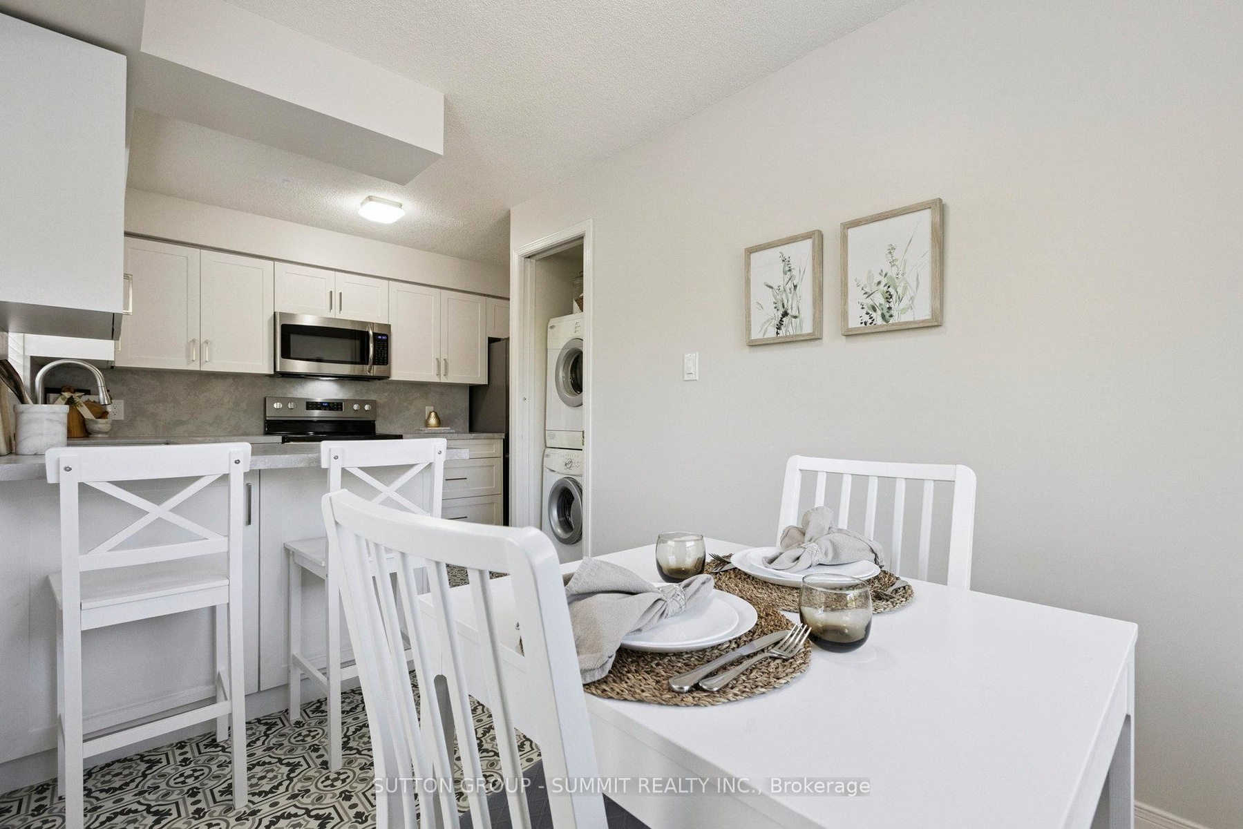 Welcome to this gorgeous renovated corner unit, 2+1 bedroom, 2 bathroom suite at the highly sought-after Parkview Terrace. Offering Over 1,200 sq. ft. of bright boutique-style living, this spacious home is set within one of Guelph's most charming low-rise condominiums. With only four suites per floor, residents enjoy exceptional privacy and a strong sense of community. A welcoming foyer with a large double closet sets the tone for this professionally renovated home. Painted throughout in a soft neutral enhances the home's bright, open, airy flow. The sunlit primary bedroom features 2 large windows, 2 generous closets, a private 4 piece ensuite with a tub/shower, and a large vanity. The second bedroom offers ample space and natural light, with easy access to a newly upgraded second bath, showcasing a modern tiled shower, new vanity plus a pocket door to a storage room. The stunning new kitchen is designed for both form and function, complete with modern cabinetry, stainless steel appliances, breakfast bar, gorgeous quartz counters and seamless quartz backsplash, plus an eat-in dining area. In-suite laundry is conveniently tucked away. The living and dining area offers a perfect space for families or those who love to entertain. The private office/den with pocket doors creates an ideal quiet space or 3rd bedroom, a rare 2+1 find. The abundance of windows flood the home with natural light all day. This corner unit offers 2 beautiful exposures with morning and evening sun and a private balcony with a peaceful, tree surrounding. Additional highlights include a sauna, gym and party room. Ideally located close to Hwy's and minutes from downtown Guelph's vibrant cafes, shops, farmers' market, restaurants, trails, and dog parks, with easy access to the Hanlon Expressway, this home offers an exceptional blend of comfort, space, and convenience.