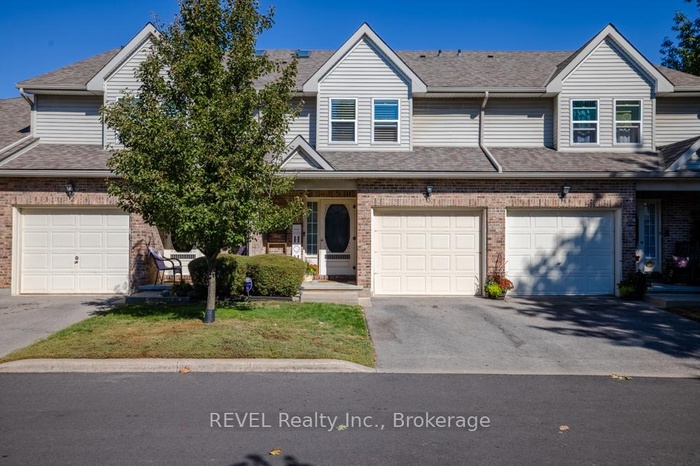 Looking for your next move? Consider this your winning play! Welcome to Pine Meadows, one of Niagara Falls most desirable and well-maintained condo communities. This charming 3-bedroom, 2.5-bath townhouse with attached garage and private driveway offers the perfect blend of comfort, convenience, and low-maintenance living, all in a central location close to shopping, dining, schools, and amenities. The bright and inviting main floor features a spacious living room with a cozy gas fireplace, an eat-in kitchen with garburator, and a separate formal dining area with direct access to a private deck and charming backyard retreat. Upstairs, you'll find three bedrooms, including a generously sized primary bedroom with walk-in closet and ensuite privilege to the 5-piece bathroom. Convenient laundry on the bedroom level makes everyday living a breeze. The finished basement extends your living space with a large family room, complete with a wet bar, a 3-piece bathroom, and wall-to-wall closets for incredible storage. With its prime location, thoughtful layout, and community setting, this home is truly a gem.
