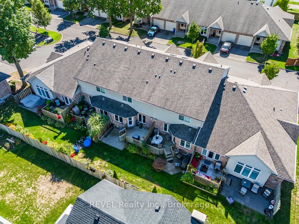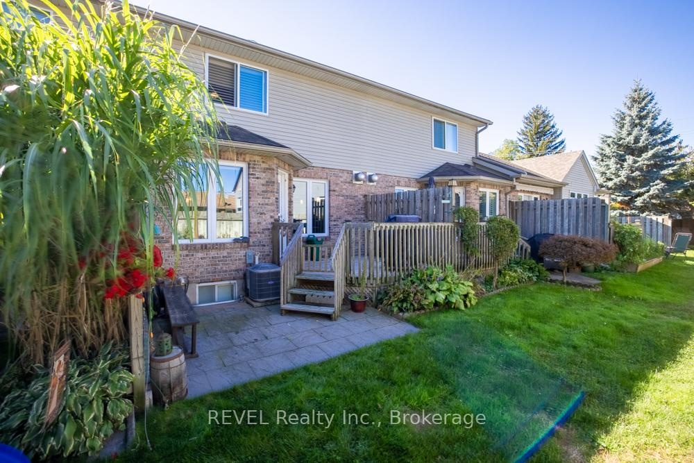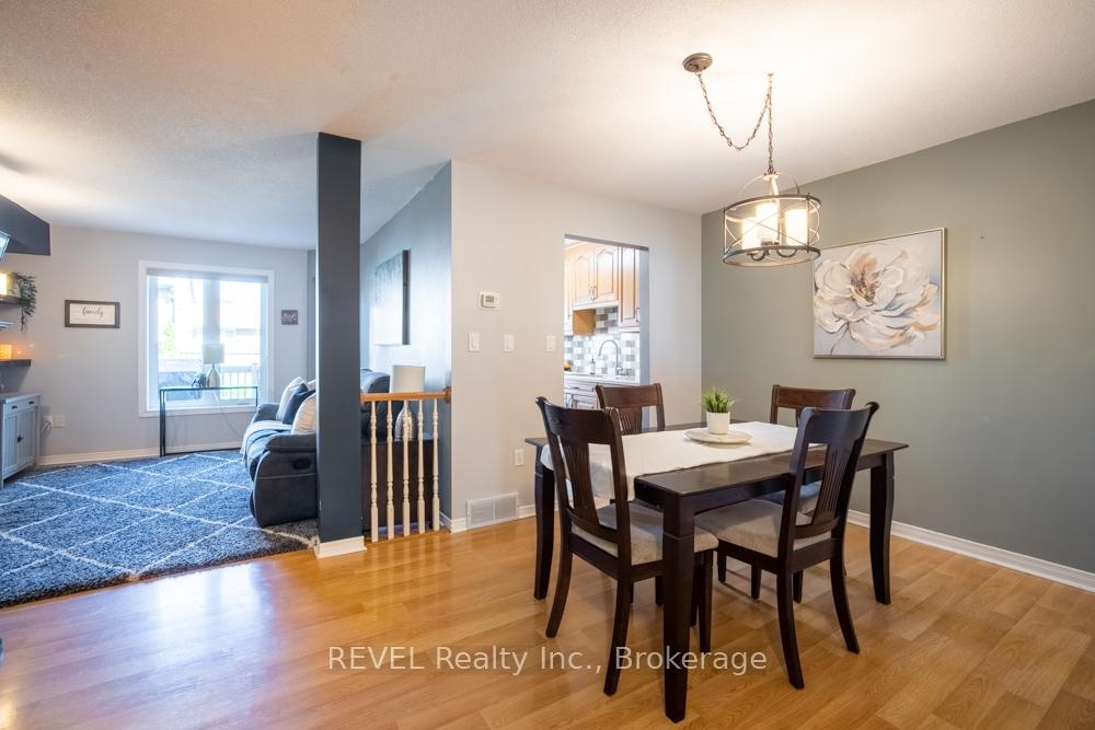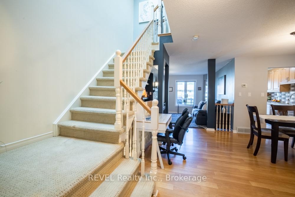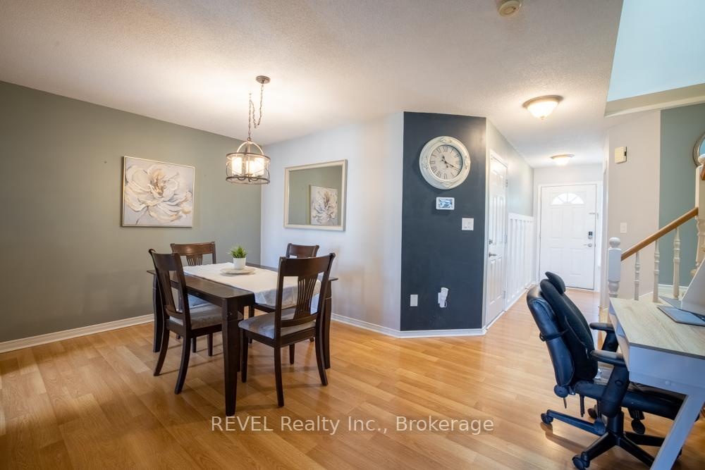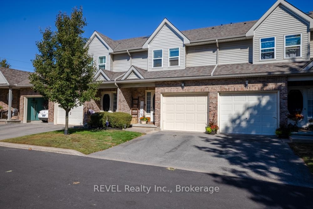 Looking for your next move? Consider this your winning play! Welcome to Pine Meadows, one of Niagara Falls most desirable and well-maintained condo communities. This charming 3-bedroom, 2.5-bath townhouse with attached garage and private driveway offers the perfect blend of comfort, convenience, and low-maintenance living, all in a central location close to shopping, dining, schools, and amenities. The bright and inviting main floor features a spacious living room with a cozy gas fireplace, an eat-in kitchen with garburator, and a separate formal dining area with direct access to a private deck and charming backyard retreat. Upstairs, you'll find three bedrooms, including a generously sized primary bedroom with walk-in closet and ensuite privilege to the 5-piece bathroom. Convenient laundry on the bedroom level makes everyday living a breeze. The finished basement extends your living space with a large family room, complete with a wet bar, a 3-piece bathroom, and wall-to-wall closets for incredible storage. With its prime location, thoughtful layout, and community setting, this home is truly a gem.