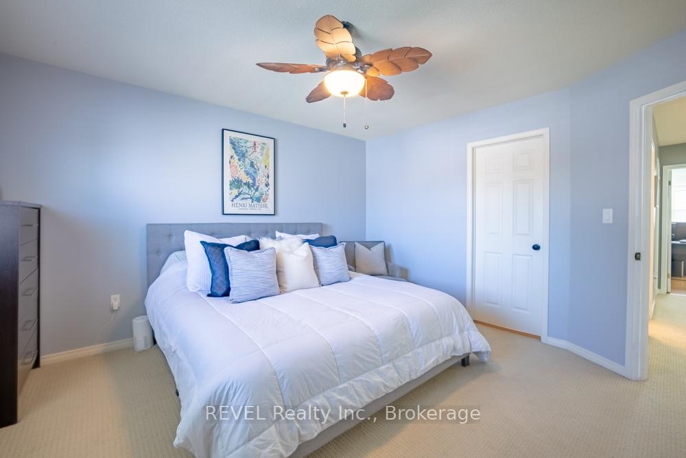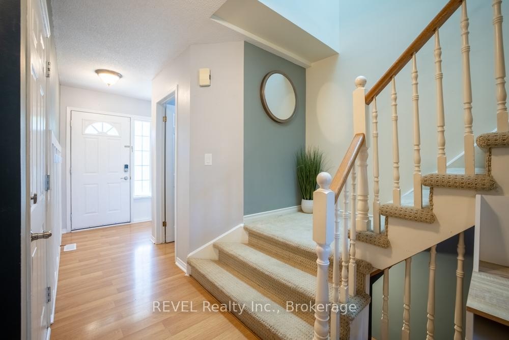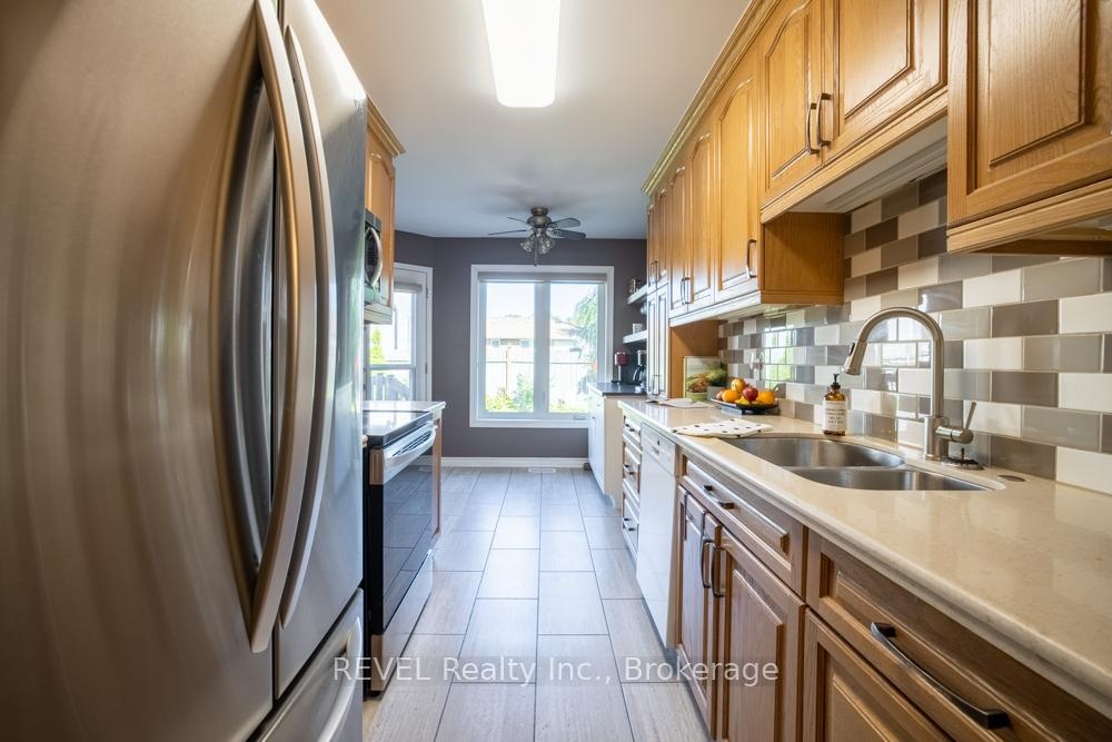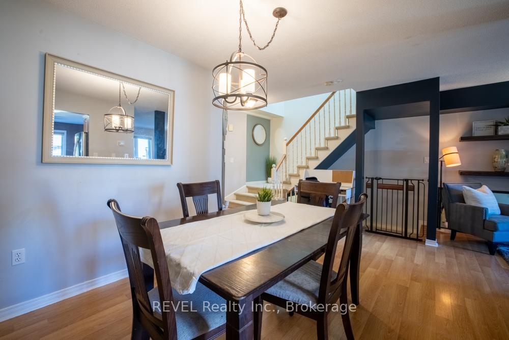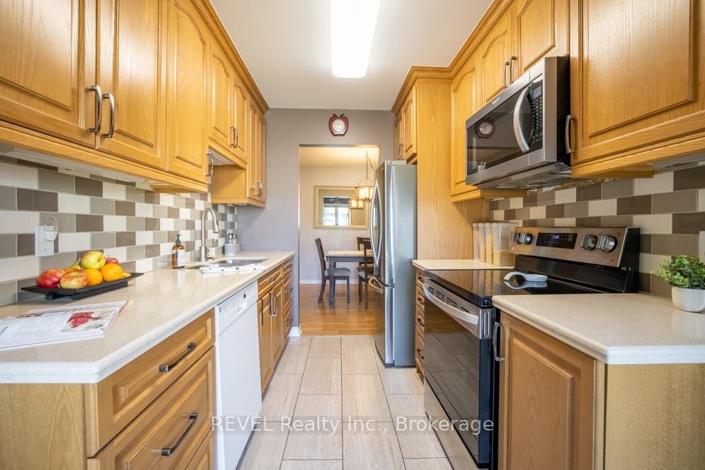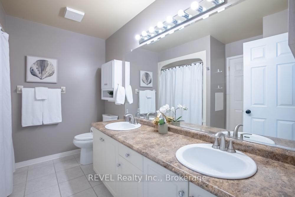 Looking for your next move? Consider this your winning play! Welcome to Pine Meadows, one of Niagara Falls most desirable and well-maintained condo communities. This charming 3-bedroom, 2.5-bath townhouse with attached garage and private driveway offers the perfect blend of comfort, convenience, and low-maintenance living, all in a central location close to shopping, dining, schools, and amenities. The bright and inviting main floor features a spacious living room with a cozy gas fireplace, an eat-in kitchen with garburator, and a separate formal dining area with direct access to a private deck and charming backyard retreat. Upstairs, you'll find three bedrooms, including a generously sized primary bedroom with walk-in closet and ensuite privilege to the 5-piece bathroom. Convenient laundry on the bedroom level makes everyday living a breeze. The finished basement extends your living space with a large family room, complete with a wet bar, a 3-piece bathroom, and wall-to-wall closets for incredible storage. With its prime location, thoughtful layout, and community setting, this home is truly a gem.