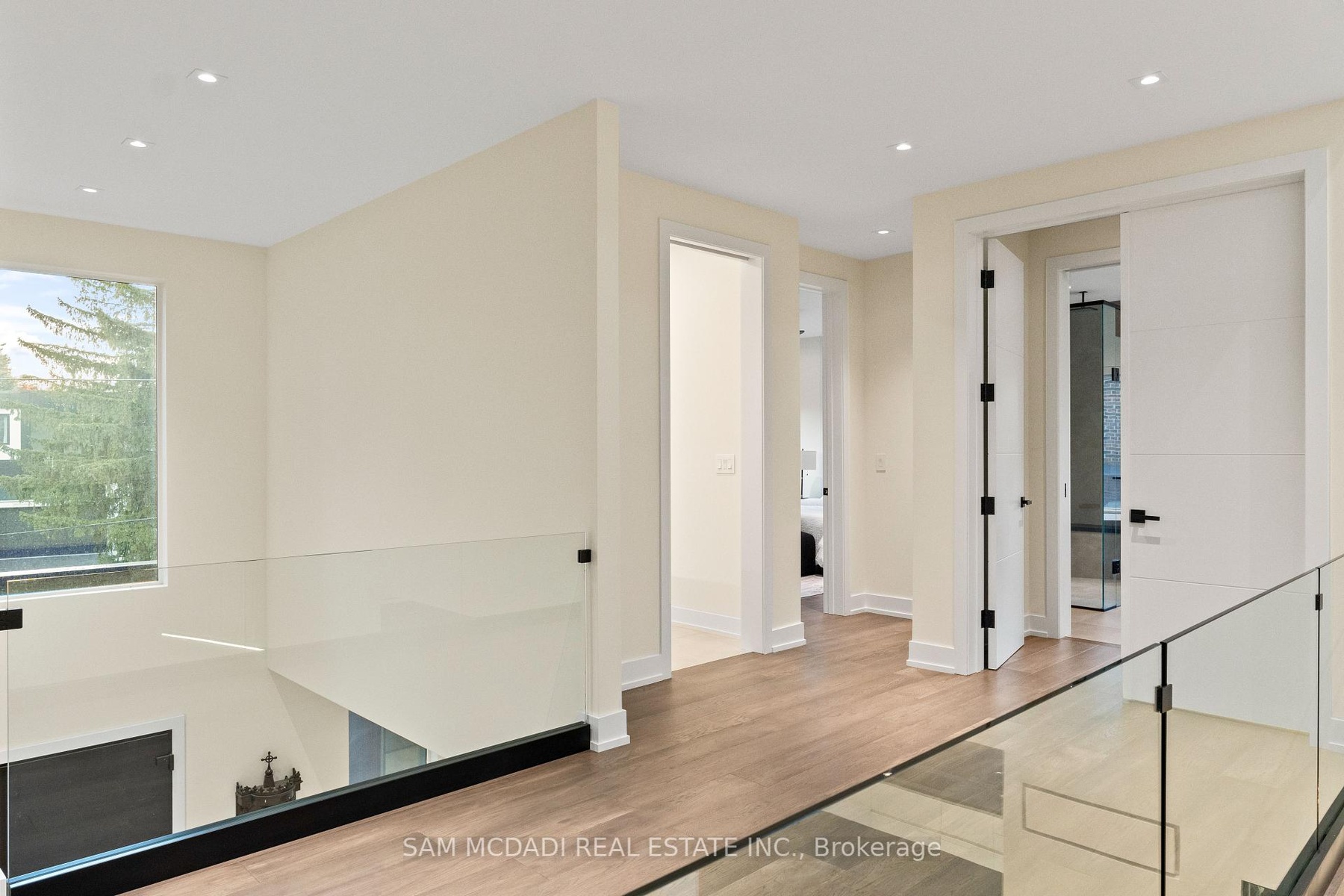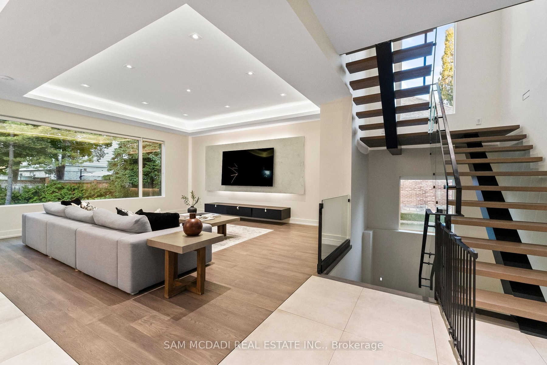 Welcome to 2075 Shawanaga Trail, tucked within the prestigious Sheridan enclave. This elegant residence offers over 6,000 SF of finished living space, thoughtfully designed with 5 bedrooms and 6 bathrooms. A dramatic double-height foyer sets the tone, leading into light-filled interiors where oversized windows showcase the homes architectural elegance. Tray ceilings with recessed and cove lighting create a soft ambient glow, while a two-way gas fireplace anchors the open living and dining areas. A glass-enclosed wine display adds a sculptural statement, perfect for the discerning collector. The chef's kitchen features quartz countertops, integrated appliances, custom cabinetry and walk-in pantry. It flows seamlessly into the main gathering spaces with views of the private backyard. A covered patio invites year-round entertaining, while a main floor office offers quiet workspace. Above, the primary suite is a private retreat with dual walk-in closets and a spa-like ensuite with freestanding tub and glass shower. Three additional bedrooms feature walk-in closets and private or semi-ensuite baths. A second-floor laundry room adds convenience. The finished lower level boasts 9-foot ceilings, a full wet bar, expansive recreation room, guest suite with ensuite, and a flexible room ideal for media or fitness. Outdoors, the professionally landscaped backyard is framed by mature trees, offering privacy, tranquility, and space to customize. Additional highlights include engineered hardwood, built-in Sonos audio, newer roof and windows (2022), and ample parking. Located near Mississauga and Credit Valley Golf Clubs, University of Toronto Mississauga, and highly acclaimed schools. Just minutes to the QEW, 403, Port Credit Village, and scenic waterfront trails.