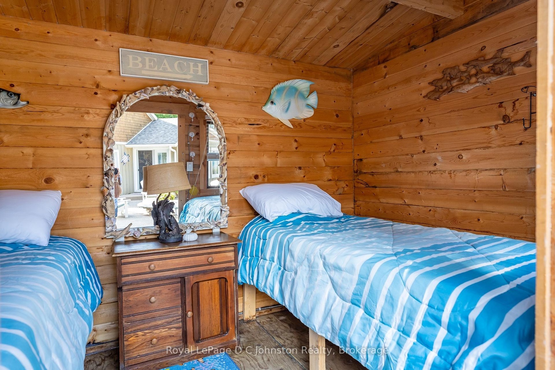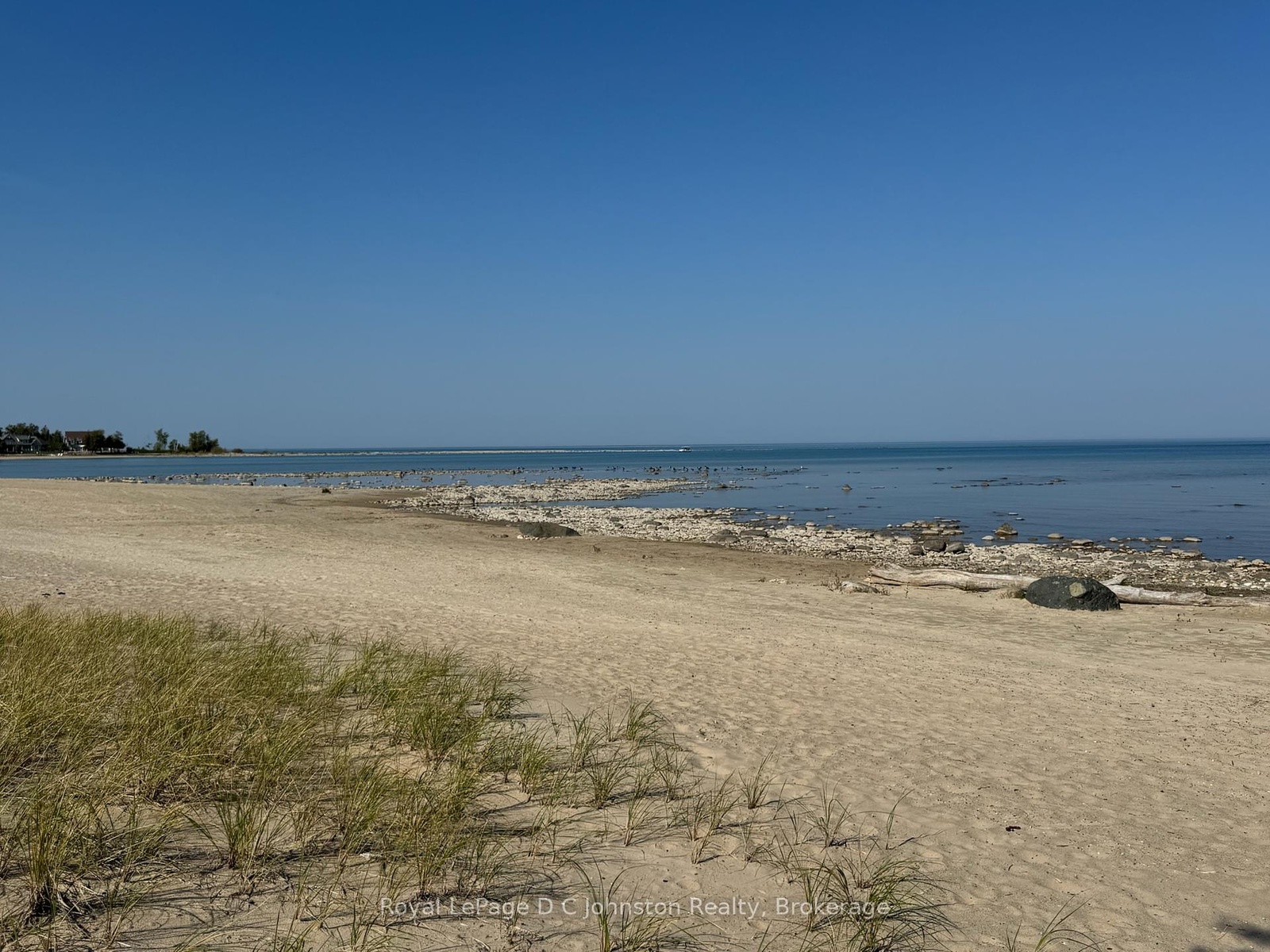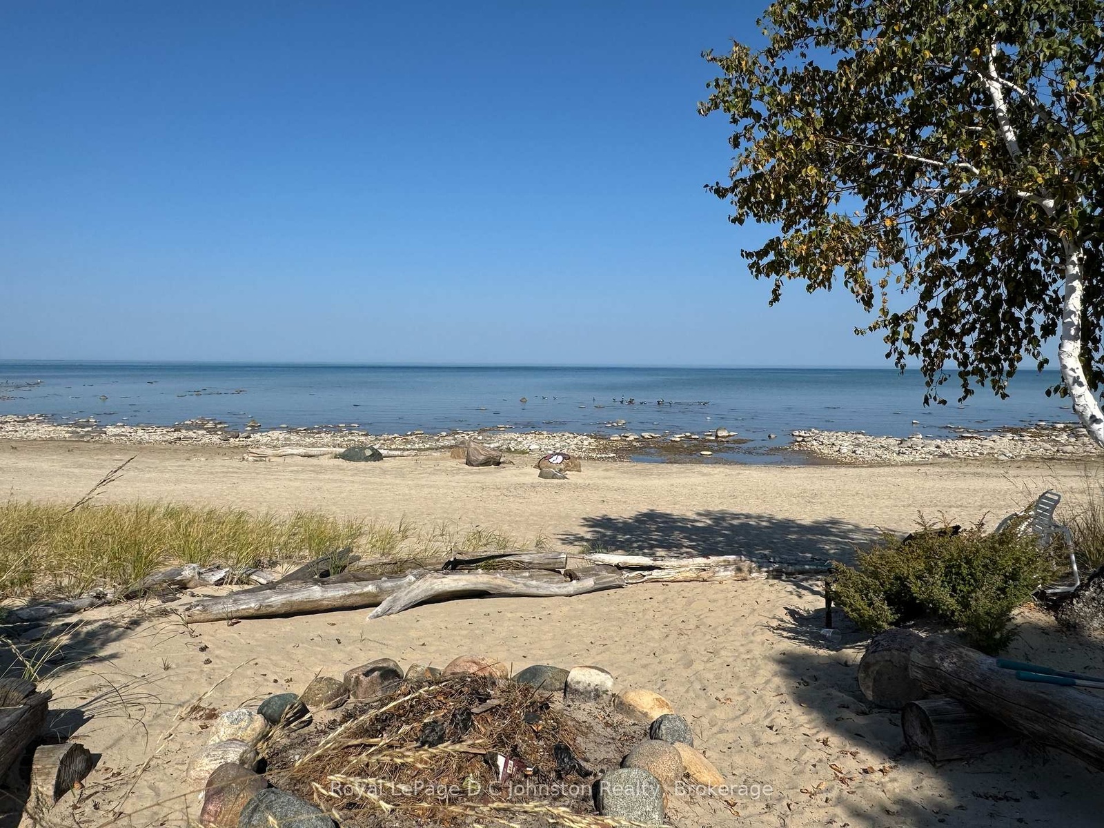 DescriptionDream Beachfront Retreat in Port Elgin. This is an unparalleled opportunity to own a piece of Saugeen Beach Road's coveted shoreline, nestled in the trees along the enclave known locally as Eidt's Grove. This property boasts a generous 111 foot frontage of sandy Lake Huron shoreline, offering spectacular panoramic views and sunsets. The large, private lot is a natural oasis, featuring a charming babbling stream that meanders through the property. The fully renovated 1,800 square foot year-round home or vacation hideaway (fully updated in 2010) is designed for comfort and style. Inside, the home is anchored by a rustic stone fireplace in the main living area, complemented by engineered hickory wood floors and a bright, functional kitchen featuring whitewashed poplar cabinetry, a large island, and stainless steel appliances. With three bedrooms, a large entrance foyer, and a main-floor laundry room, this home is as practical as it is beautiful. Step outside to exceptional outdoor living spaces, including stunning exposed aggregate concrete walkways and patios that lead directly to the white sand beach. The property is complete with an oversized, detached 24 x 30 foot insulated garage/workshop, a woodshed, a 7 x 11 foot bunkie, and a refreshing outdoor shower, making this a truly turn-key lakefront gem.Amenities- Auto Garage Door Remote